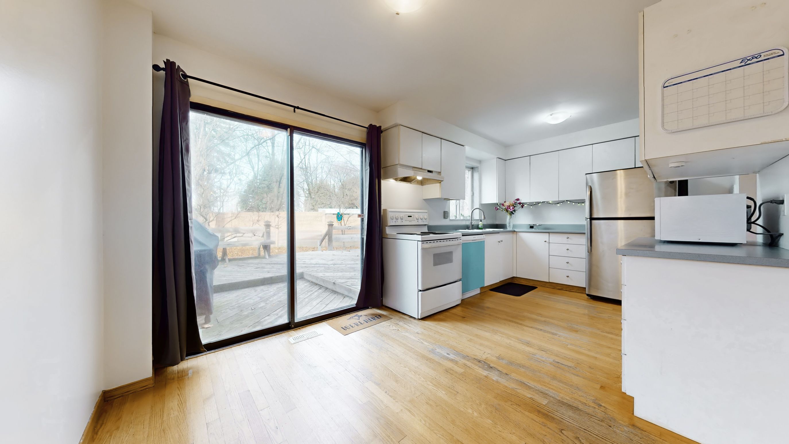 • Three-bedroom house on an oversized pie-shaped lot for extra space.