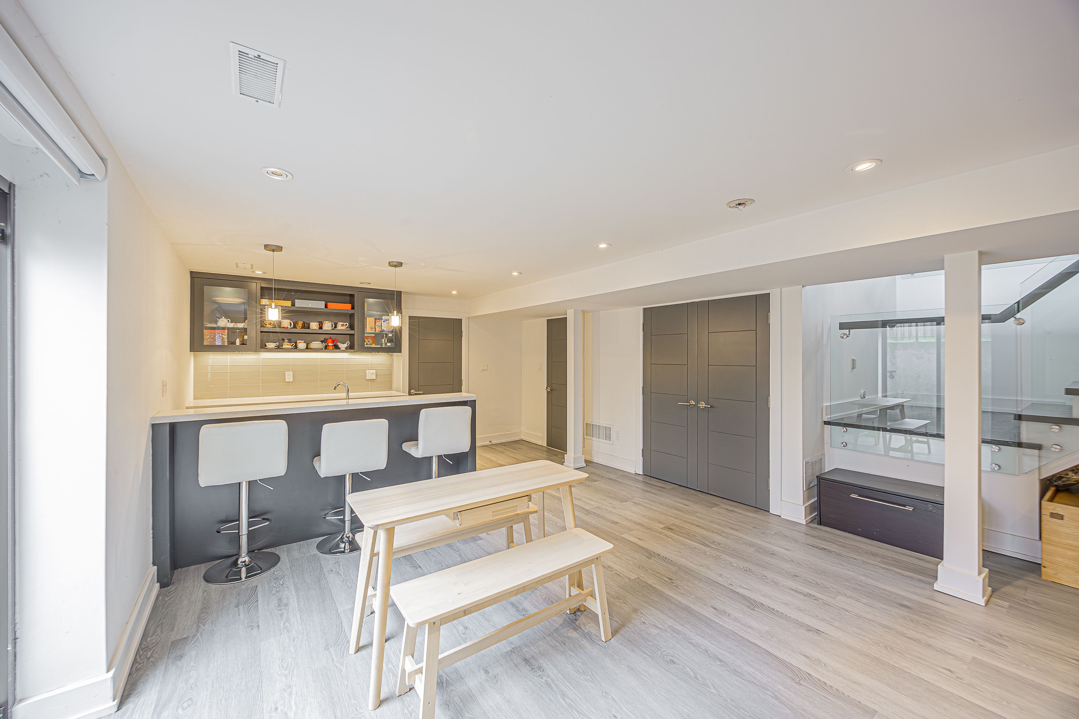 • Finished walk-up basement includes wet bar and additional laundry space.