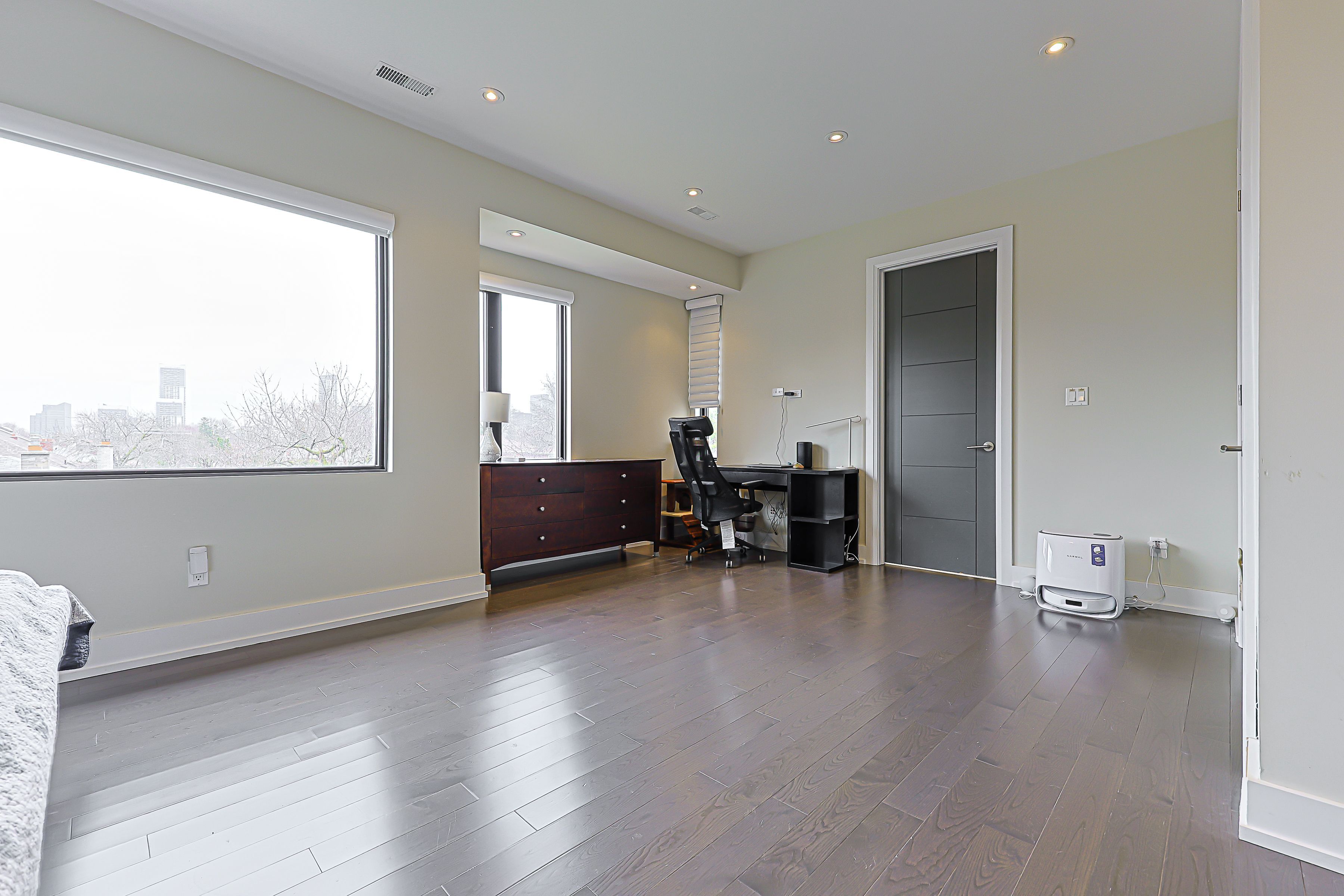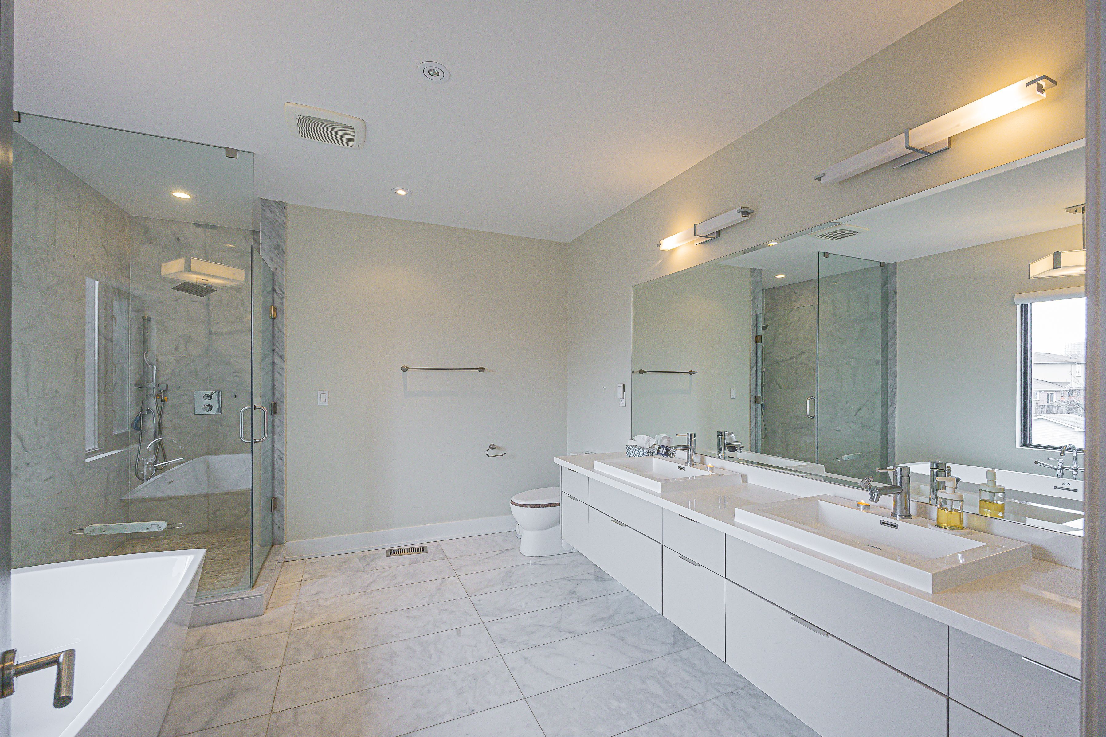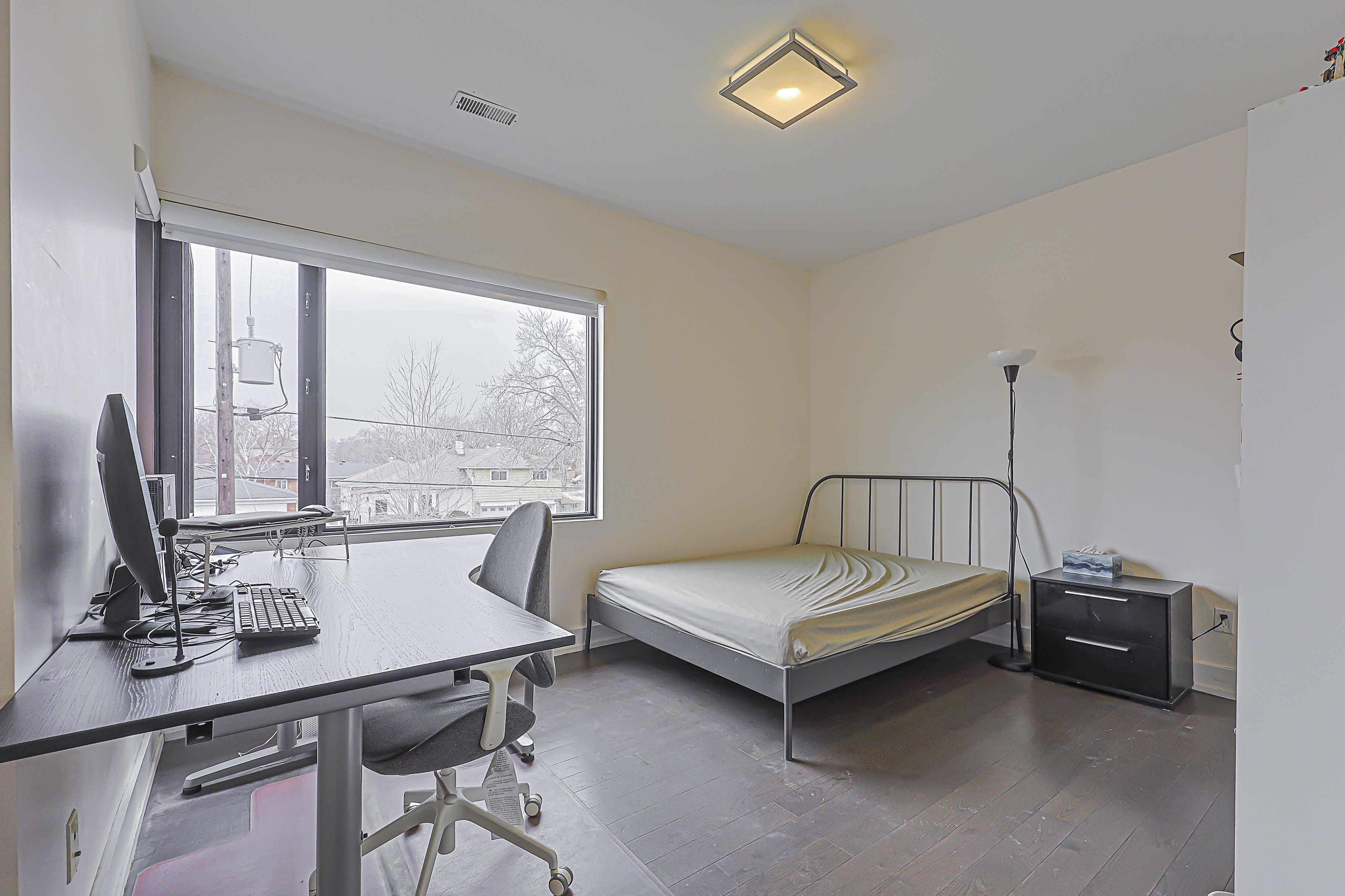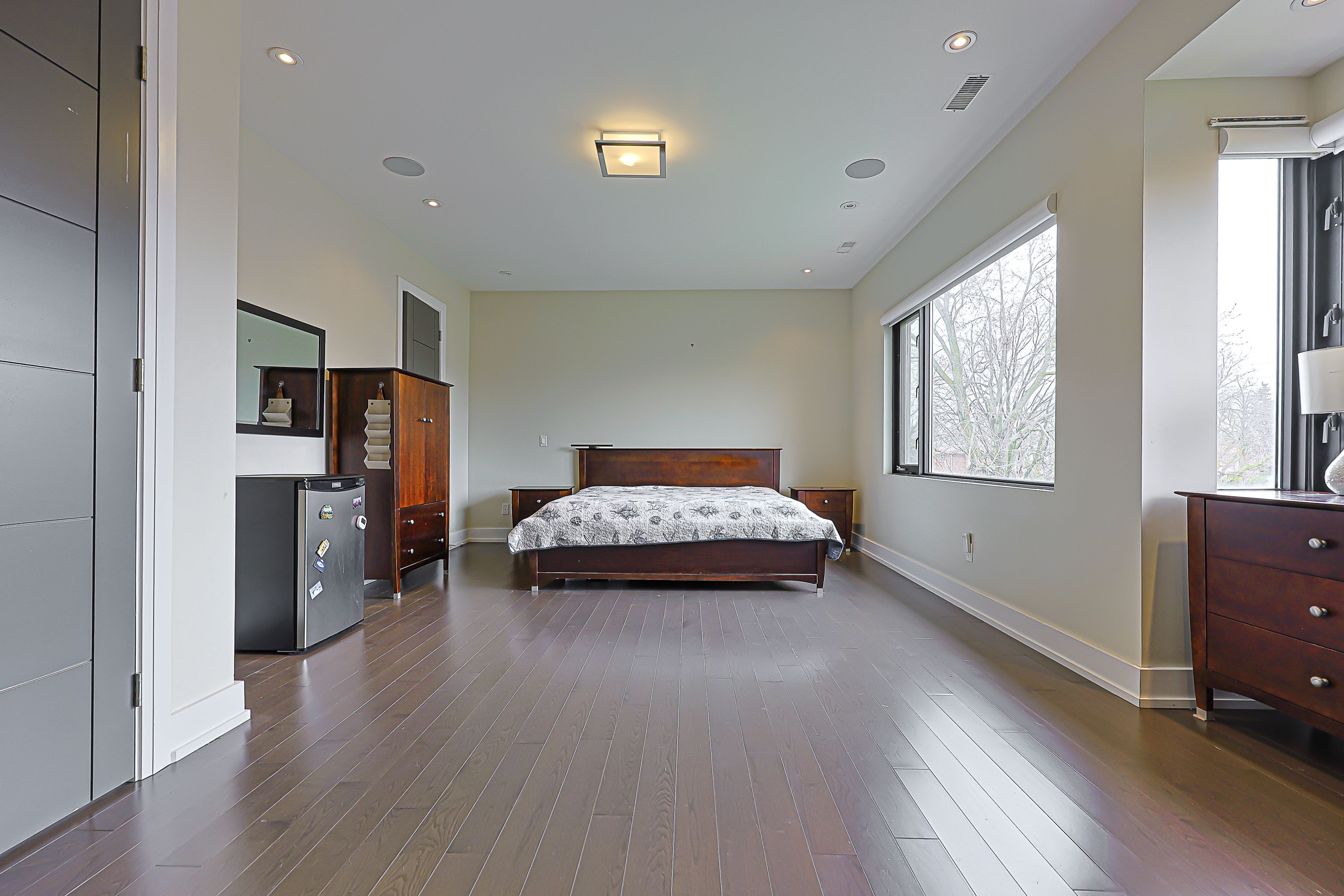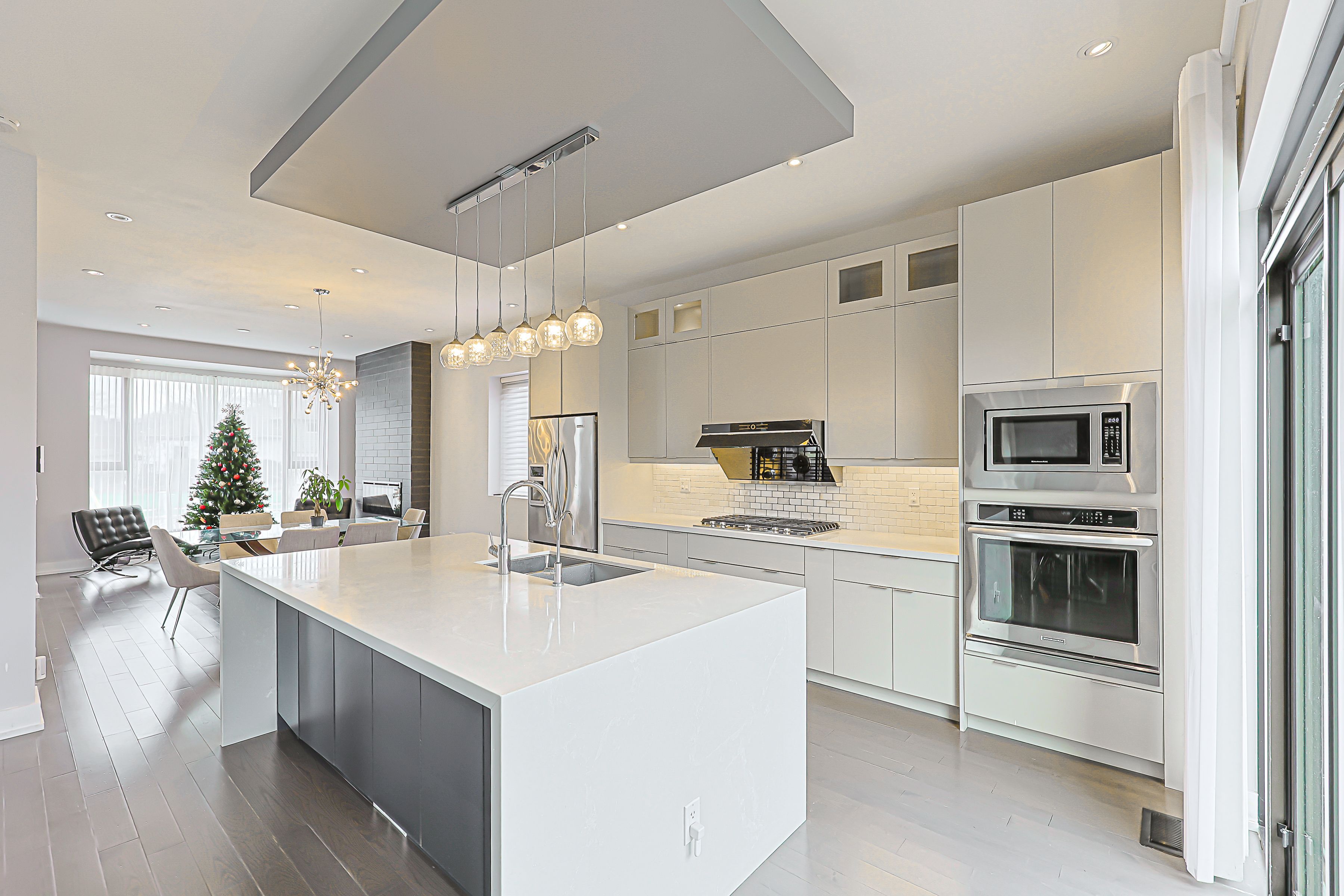 Modern. Elegant. Irreplaceable. This unique custom-built gem in the heart of pleasant view offers unparalleled sophistication. An impressive double-height foyer leads to a sun-drenched open-concept layout featuring 10ft ceilings and floor-to-ceiling aluminum windows. The gourmet chef's kitchen flows seamlessly to an oversized deck-perfect for alfresco dining. Highlights include a striking glass staircase, dual skylights, and premium hunter douglas auto-blinds. Featuring a rare 2nd-floor laundry plus a finished walk-up basement with wet bar and rough-in laundry. Stunning stone & cedar facade with a double garage and stone driveway. Steps to top-rated schools, parks, and easy hwy 404/401 access.