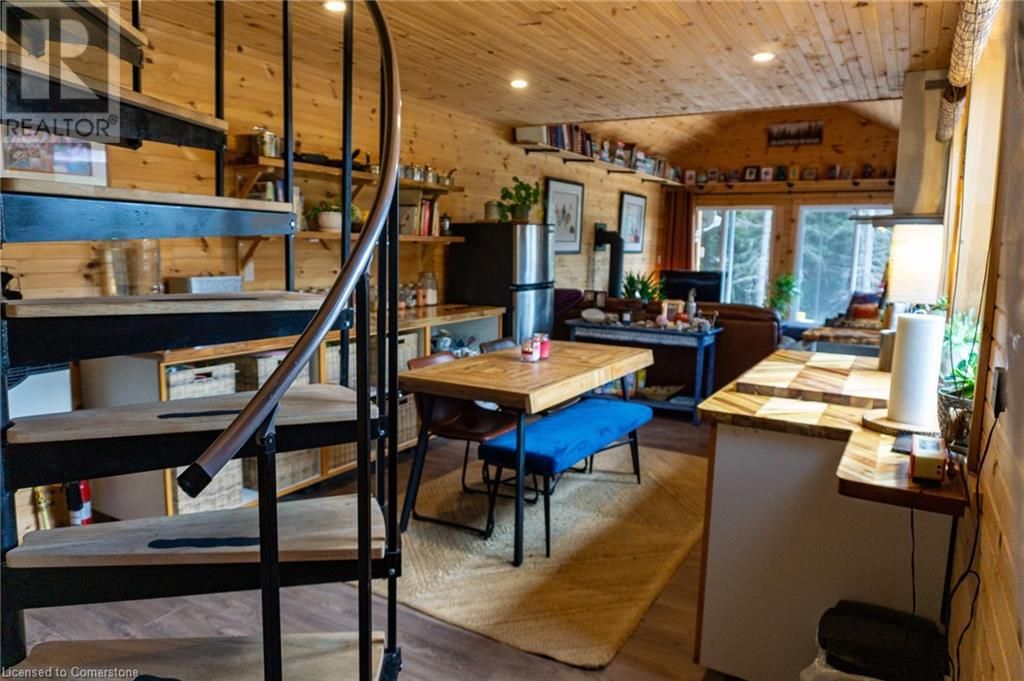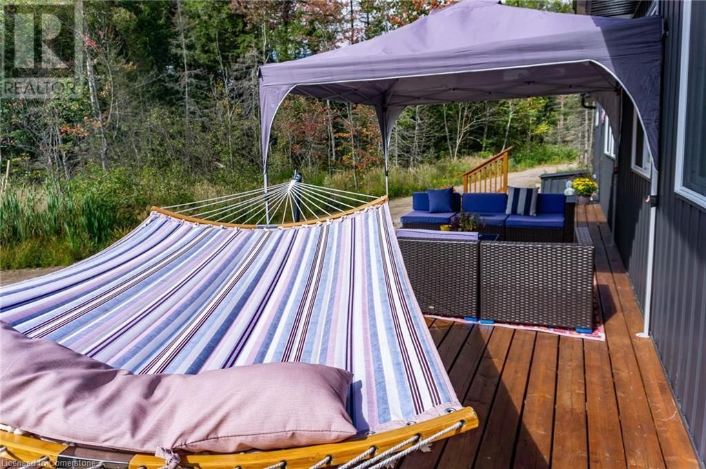 Opportunity and tranquility awaits! Swap city life for less strife! Turnkey home awaits you! Welcome to this beautiful piece of paradise. First year of fees compliments of the seller. With starilink available for the perfect work at home opportunity. Are you ready to leave the rat race of the city? This lovely spacious not so tiny home is nicely set on a quiet lot in an off grid community only 15 minutes from south river. This fully turnkey property is located in the unorganized township of lount offering plenty of recreational land and privacy. Set on an acre of mixed forest that provides privacy and room to explore nature at its finest. The large deck overlooking a pond sets the scene for enjoyment of the wildlife all furniture included with a few small exceptions. This lovely home offers 12 foot cathedral ceilings, 2 water cisterns, back up generator, propane stove, propane fireplace and a wall furnace to keep you warm on the cold winter nights. Lots of outdoor storage available in your own beautiful shed. Land lease $375. 00 + hst monthly + $250 annual property taxes making this a super affordable oasis. Property fees include: snow plowing, garbage pick up at the designated spot located on the site, gray waste removal, road maintenance. This home has upgraded insulation, and upgraded finishings, as well as a double water filtration system. All gas appliances have been serviced on a regular basis. This perfect worry free, warm inviting home awaits you. Whether you are looking for a cottage or a primary home, don't miss this opportunity! This is a lovely community feel that offers the best of both worlds, privacy, beauty, and open space. Second lounge upstairs can easily be turned into a second bedroom for out of town guests.