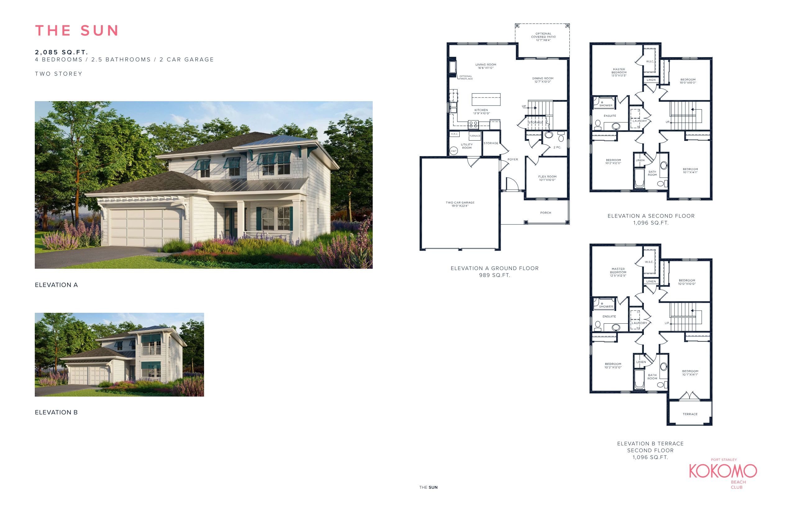 The sun model is a to be built, 2,085 square foot two storey home which includes 4 bedrooms, 2. 5 baths and laundry on the second level. The main floor comes standard with 9' ceilings, luxury vinyl plank flooring throughout the living, dining and kitchen. The kitchen comes standard with quartz counters. Plus there is a main floor office space. Colours and finishes to be chosen with the builders interior decorator. Kokomo beach club includes a large pool, fitness centre, and an owner's lounge. The community also offers pickleball courts, playground, and more. If you are looking for life away from the city, beach town living is the perfect place to take up permanent residence. Note: photos are from a previously built home which is the same model, planed for this lot.