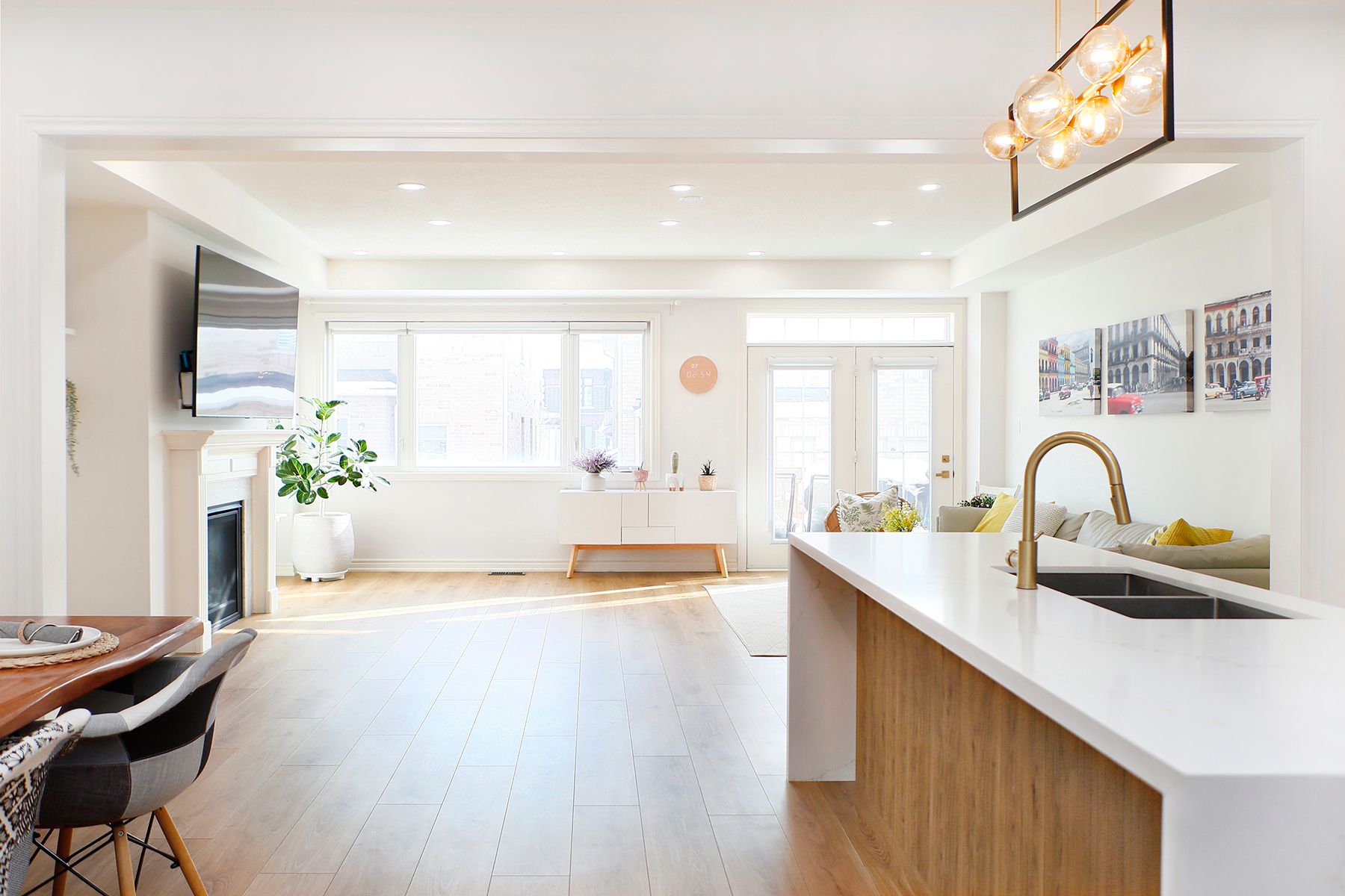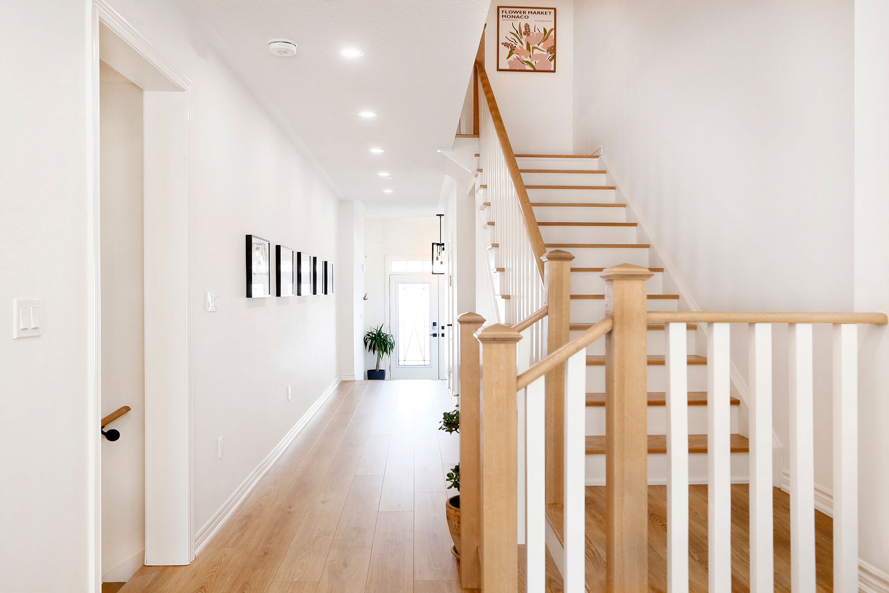 Bright and sun-filled, this stunning south-facing home showcases a timeless natural wood and white colour palette throughout. Offering approximately 2,200 sq. Ft. Of thoughtfully designed open-concept living space, the functional 4-bedroom layout is enhanced by over $100,000 in premium upgrades. 9-ft ceilings enhance the airy feel, complemented by high-quality waterproof laminate flooring on the main floor and second-floor hallway. Elegant natural wood staircase with white pickets. Gourmet kitchen with quartz countertops and an oversized waterfall island. All three bathrooms offer quartz counters and upgraded tile finishes. Pot lights and designer fixtures throughout. Upgraded double glass entry doors with smart keyless lock, ev charger installed, and full driveway access with no sidewalk interruption. Ideally located with convenient access to highways 407 and 404, and just minutes to the go station, this exceptional home offers both luxury and convenience.