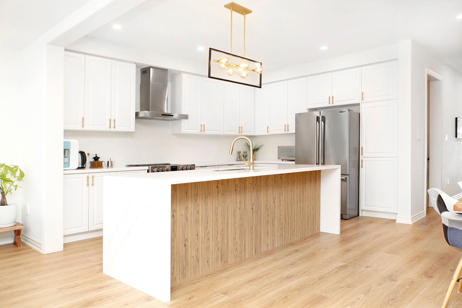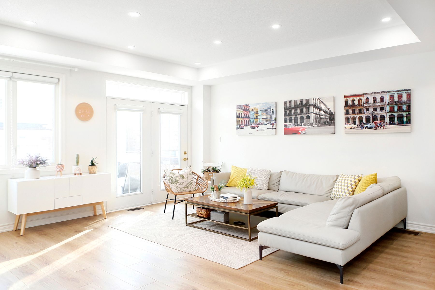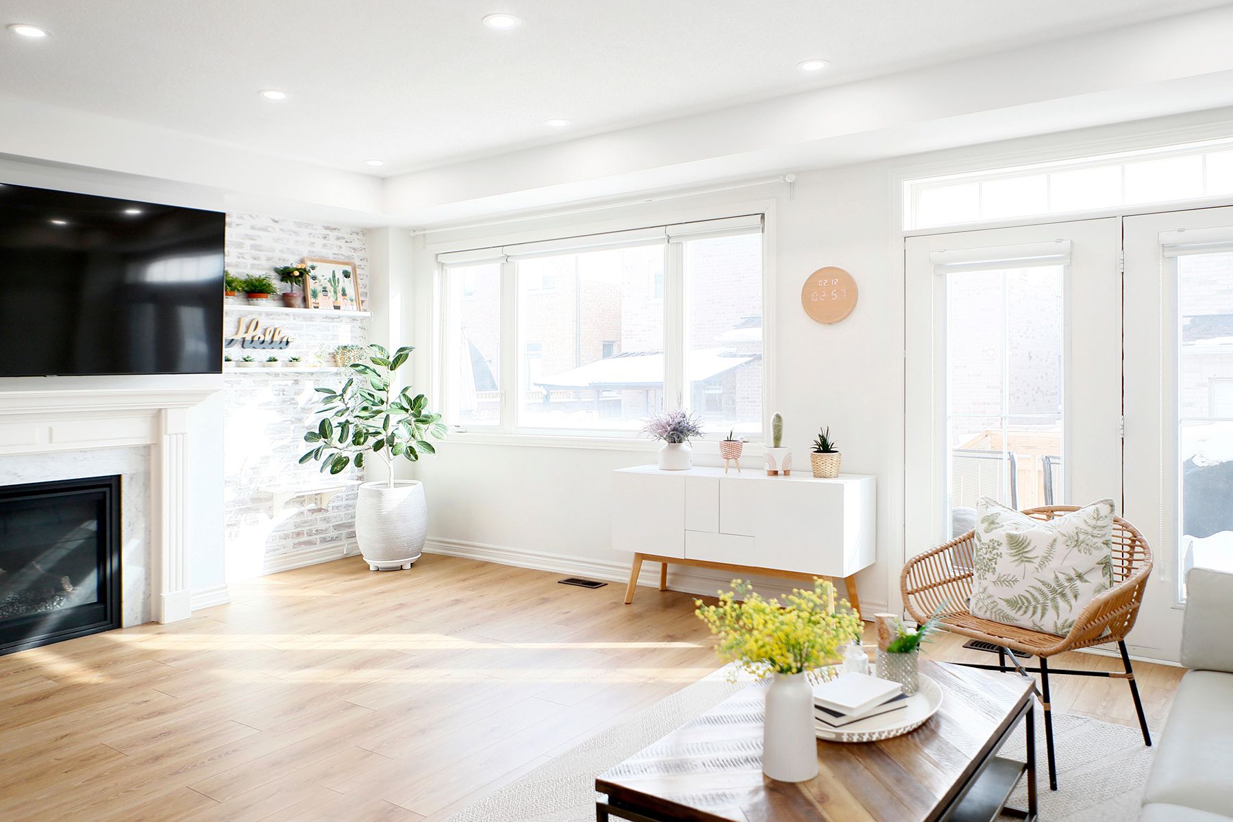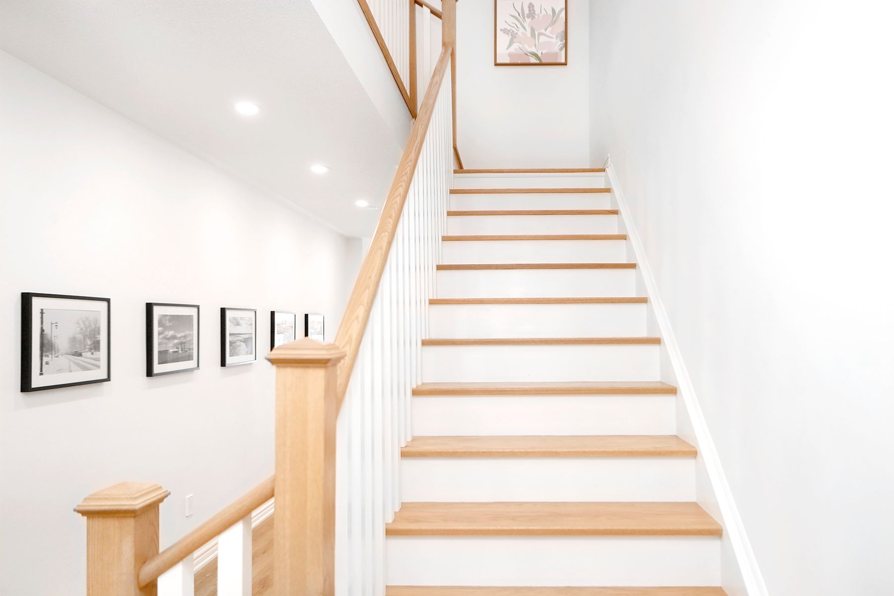 • Bright south-facing 2-storey townhome with a natural wood and white color scheme.