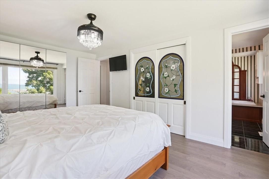 Here's your chance for a beautifully renovated 3 bedroom, 2. 5 bath, double car garage home, overlooking lake ontario and port dalhousie marina. You'll love the great room with cathedral ceilings, pot lights, and quality hardwood flooring, gorgeous kitchen with crisp white cabinetry, butcher block counters, and cerulean blue vistas through oversized kitchen windows. The sunken family room features built-in cabinetry, a gas fireplace and a walk out to an updated two tiered deck where you can watch the boats sail by and catch an awe inspiring sunset. The primary bedroom is an oasis with an abundance of closet space and a gorgeous water view. There is ensuite privileges to a bathroom that could be divided in two, plus two more large bedrooms with double closets. The lower level will make an ideal teen retreat or in-law/guest suite, with a kitchen area, a large luxurious new bathroom, a rec room or bedroom with high ceilings, a large window, and a large furnace/storage room. Other features include inside entry to the double car garage, sprinkler system, perennial gardens, wrought iron fencing and access to walking trails. Minutes to port dalhousie heritage district, sunset beach and the everyone's favorite carousel. It's not just a home, it's a lifestyle.