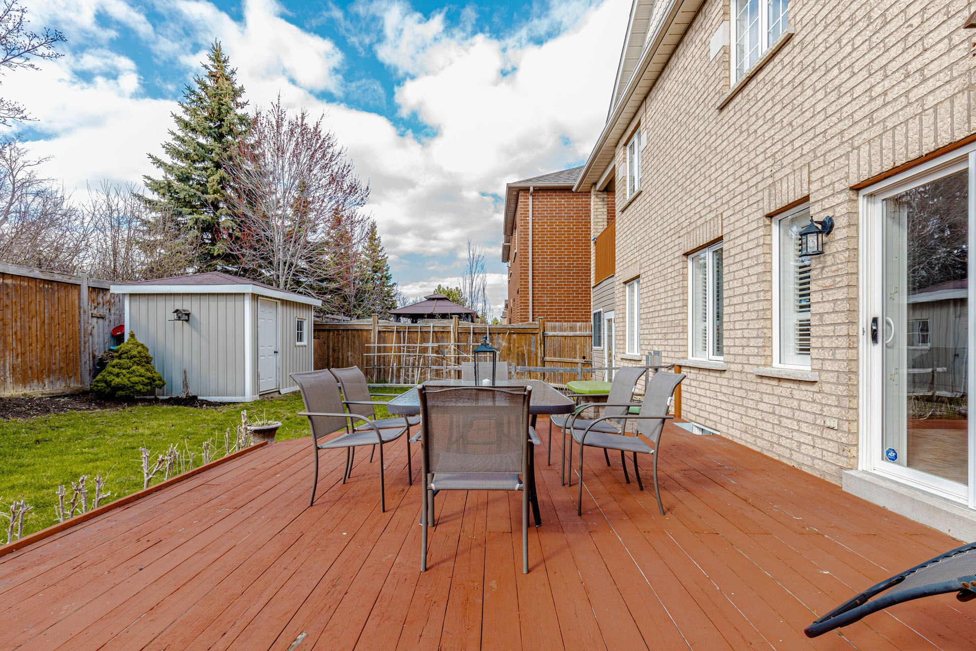 • Private, fully fenced backyard with deck and shed for outdoor enjoyment.