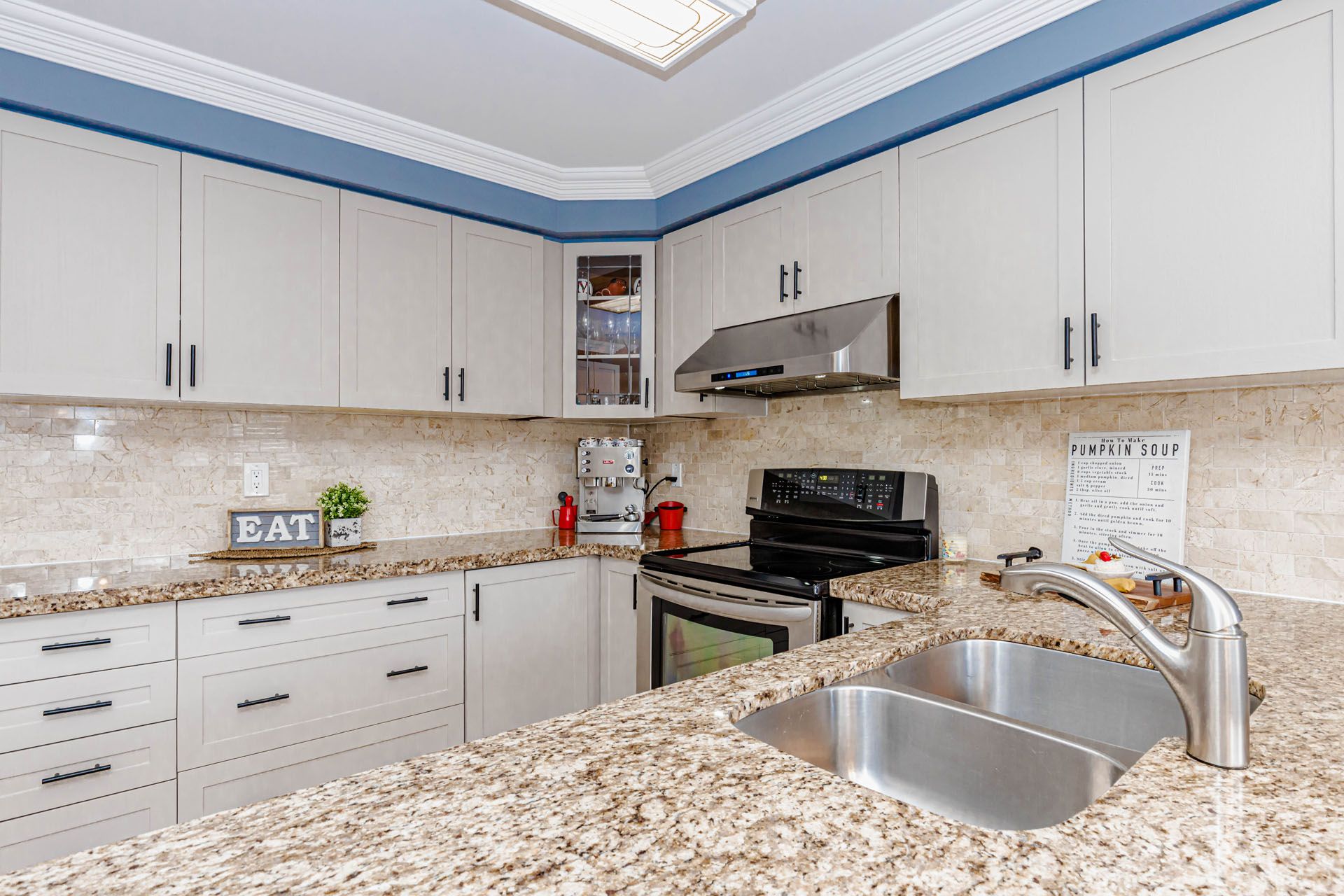 • Modern kitchen with stainless steel appliances and quartz countertops.
