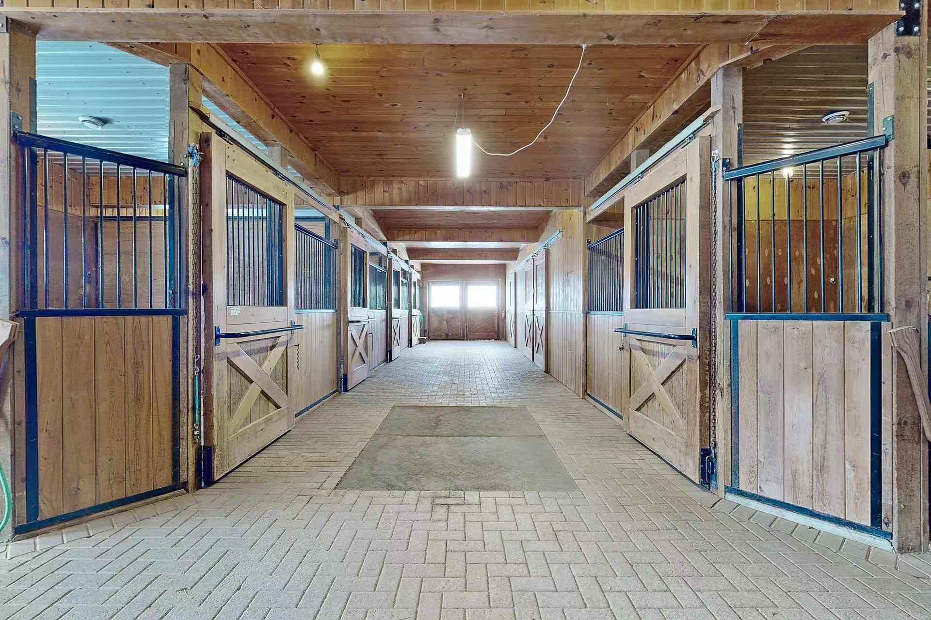 Only 10 minutes from the 407, this property offers the best of both worlds with a rural lifestyle and access to toronto in under an hour, situated behind a towering 8' hedge s roadside gates is an equestrian layout ideal for both a private or boarding facility. Impressive main dutch master's barn with arena includes german fiber footing. Second barn withadditional8 stalls garage& spacious finished loft. Outdoor ring with drainage, several paddocks.