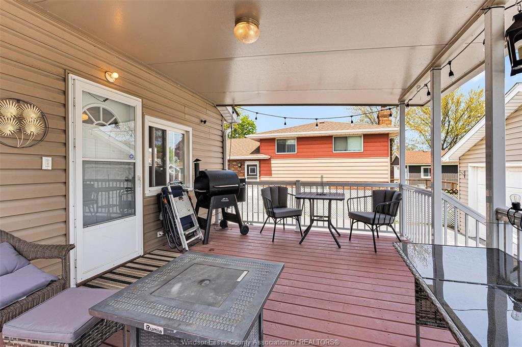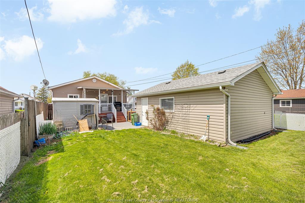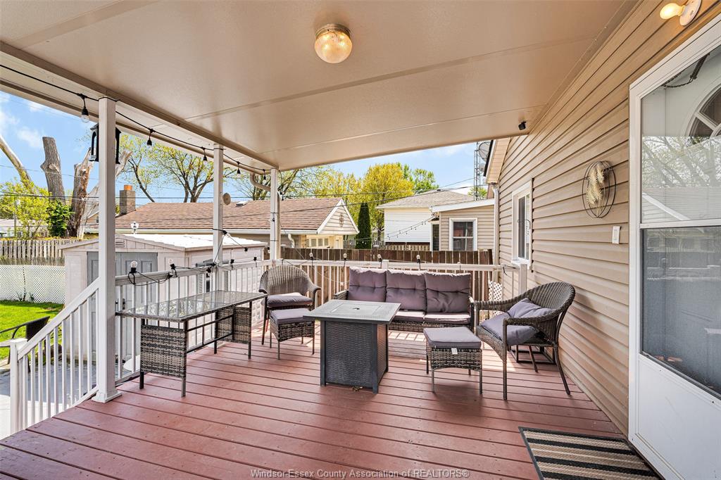 • Covered patio overlooking a fenced yard, perfect for relaxation and entertainment.