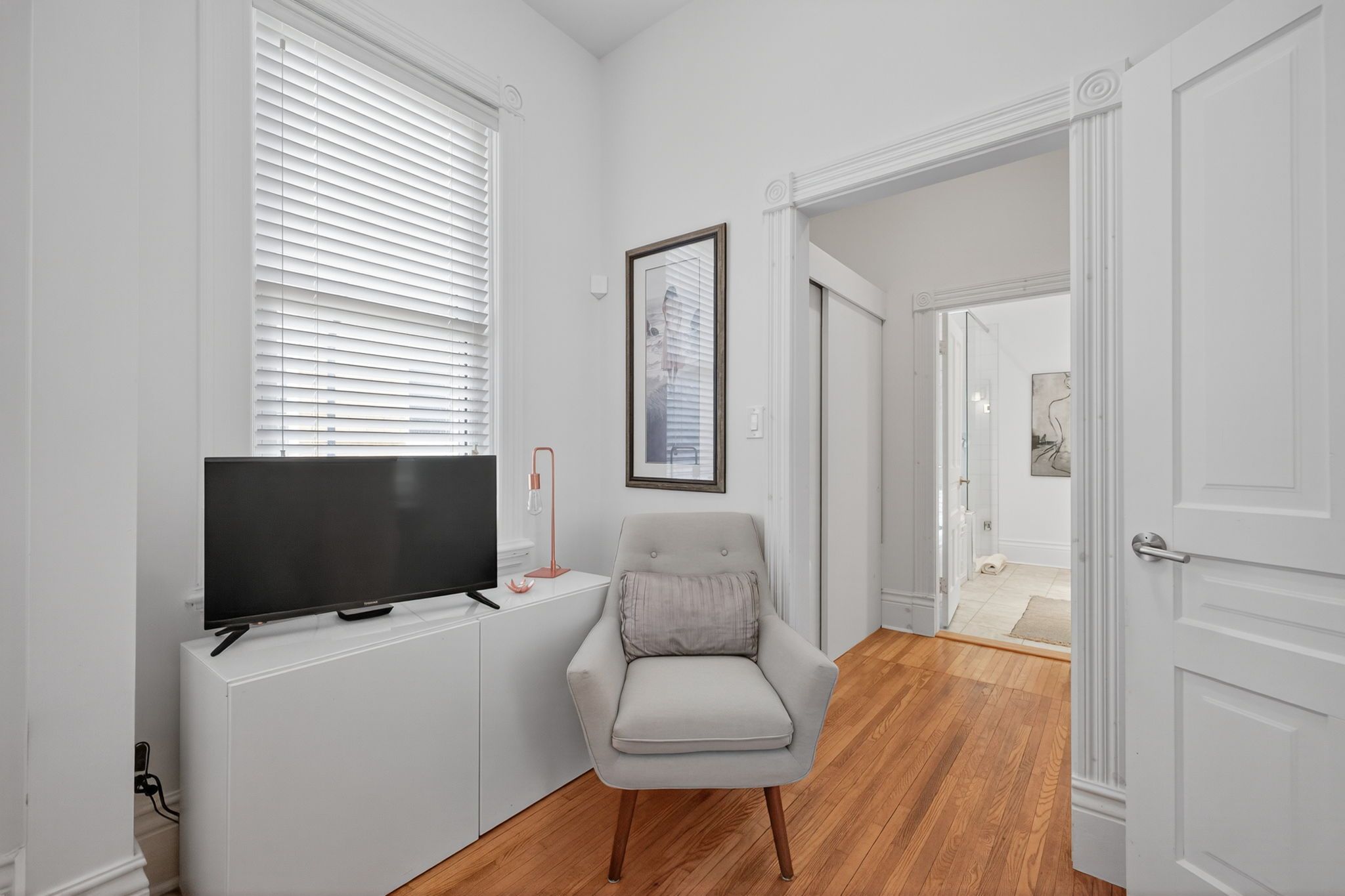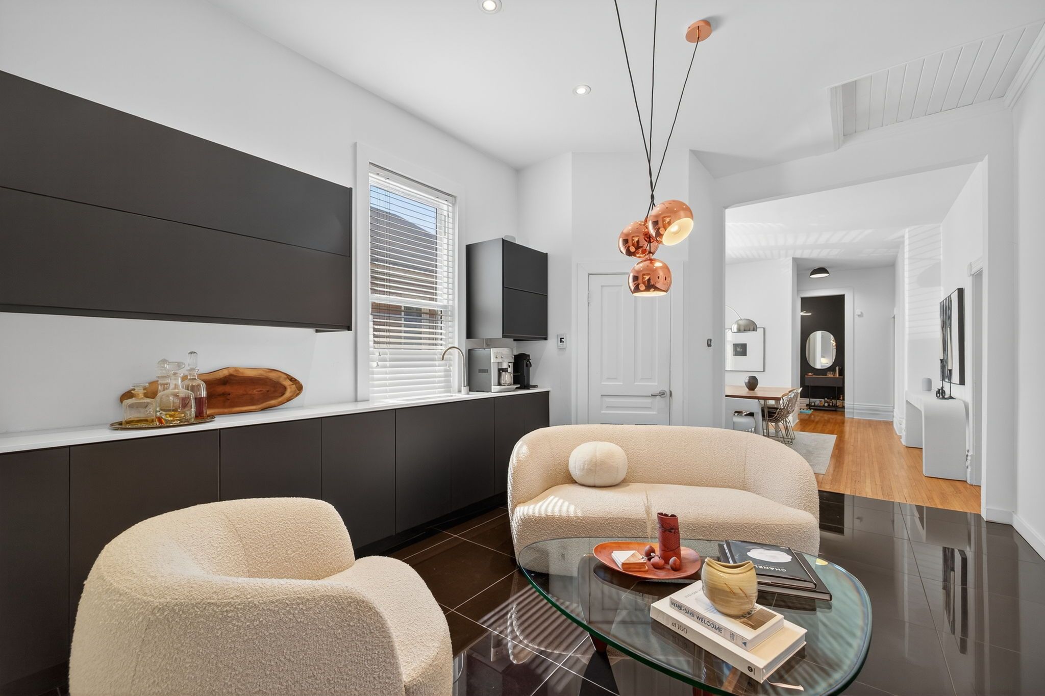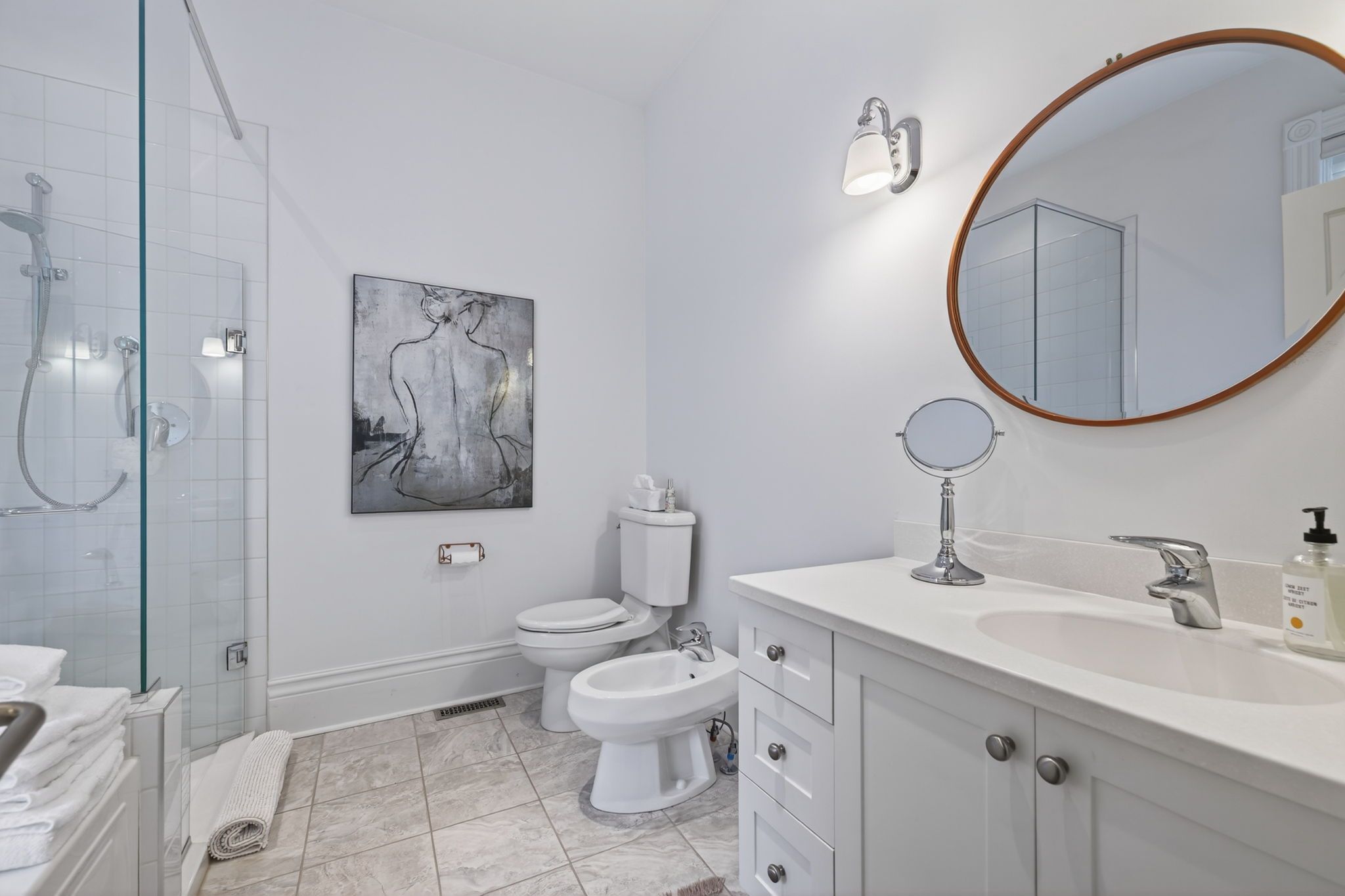 • Impressive primary suite on the upper level with ensuite bath.