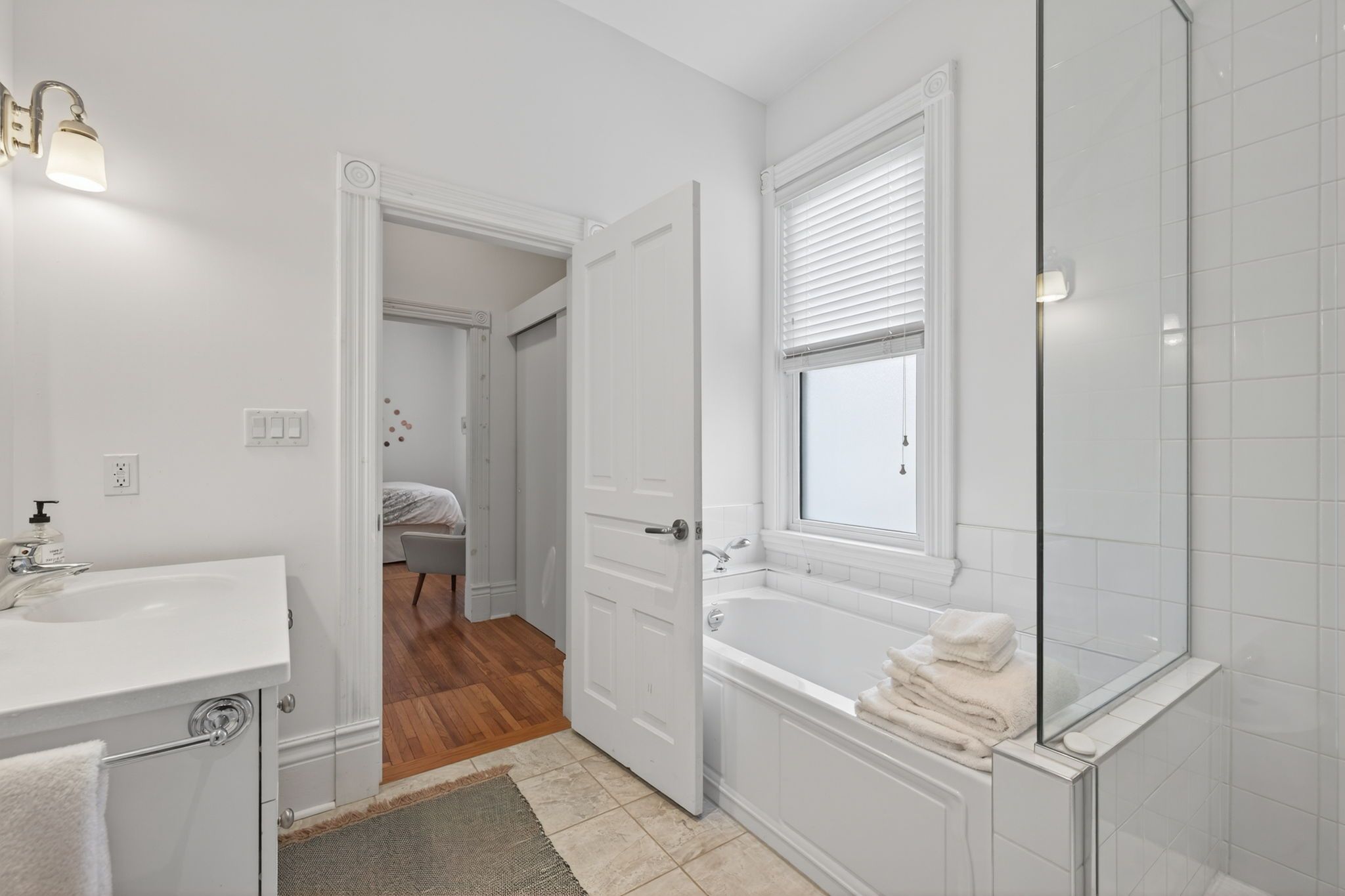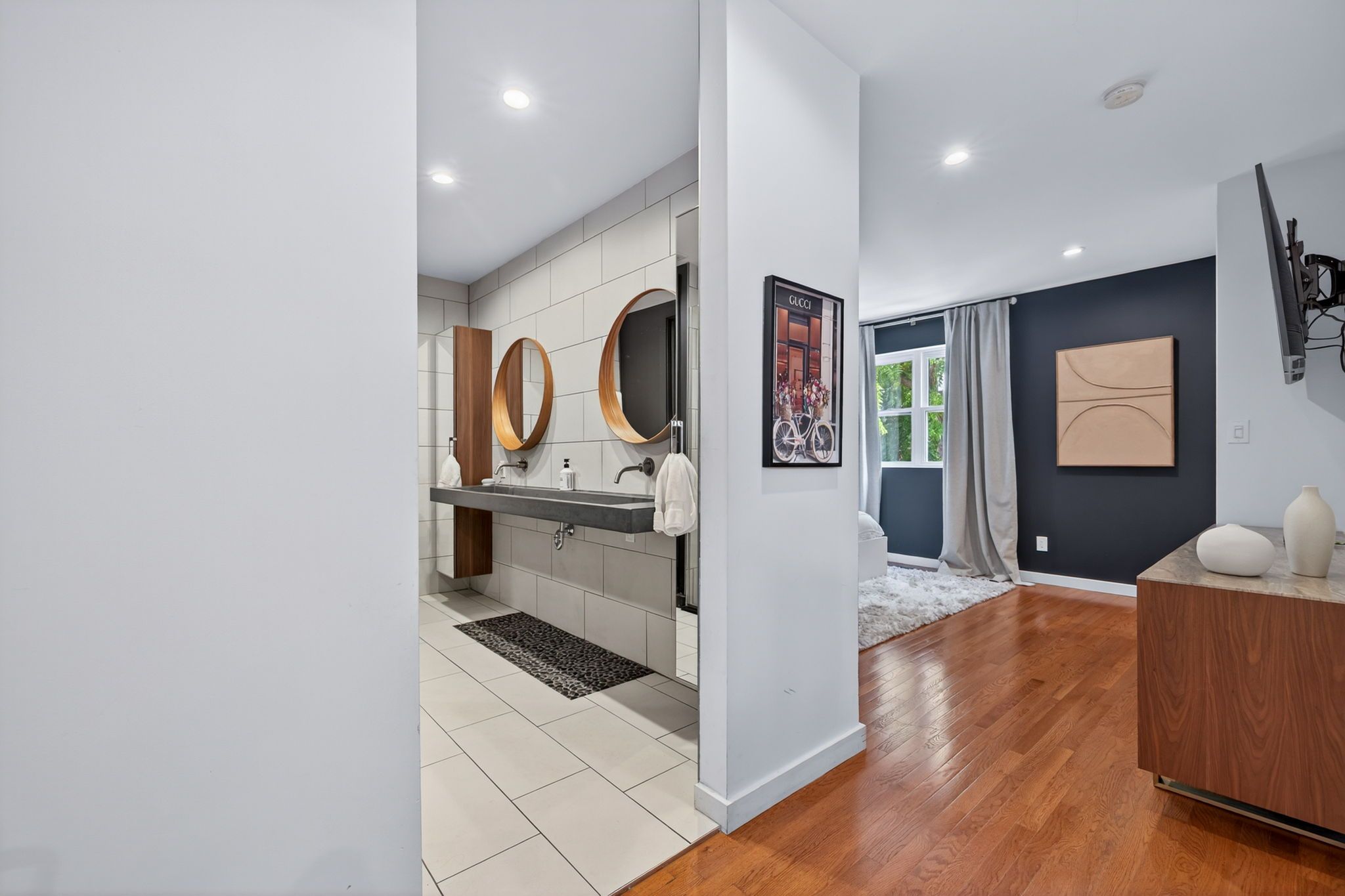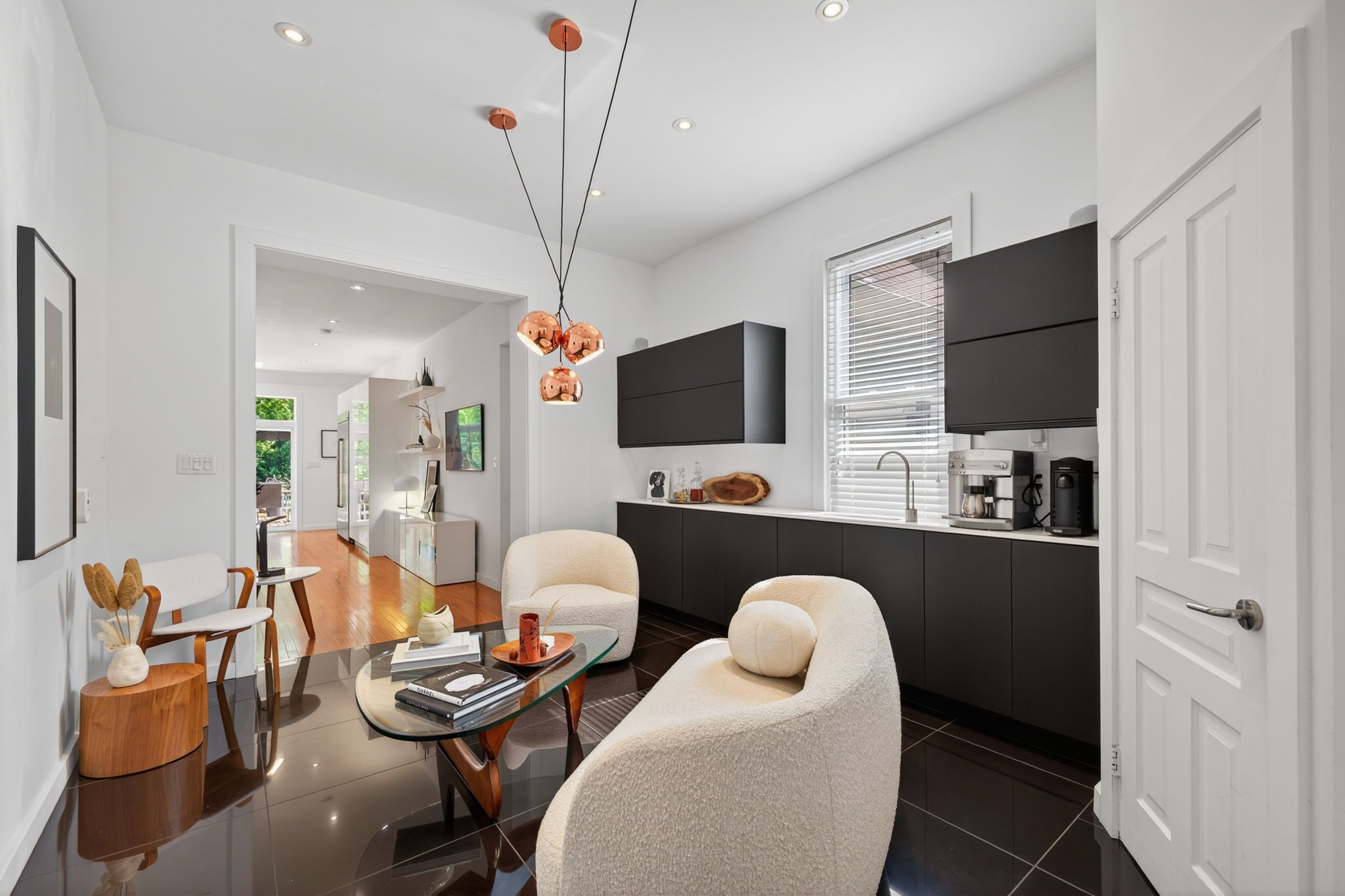 • Impressive primary suite on the upper level with ensuite bath.