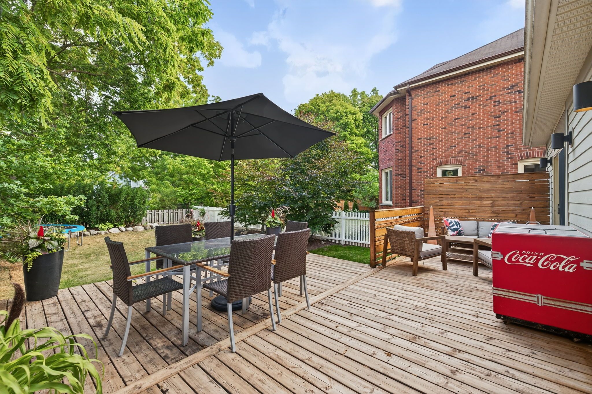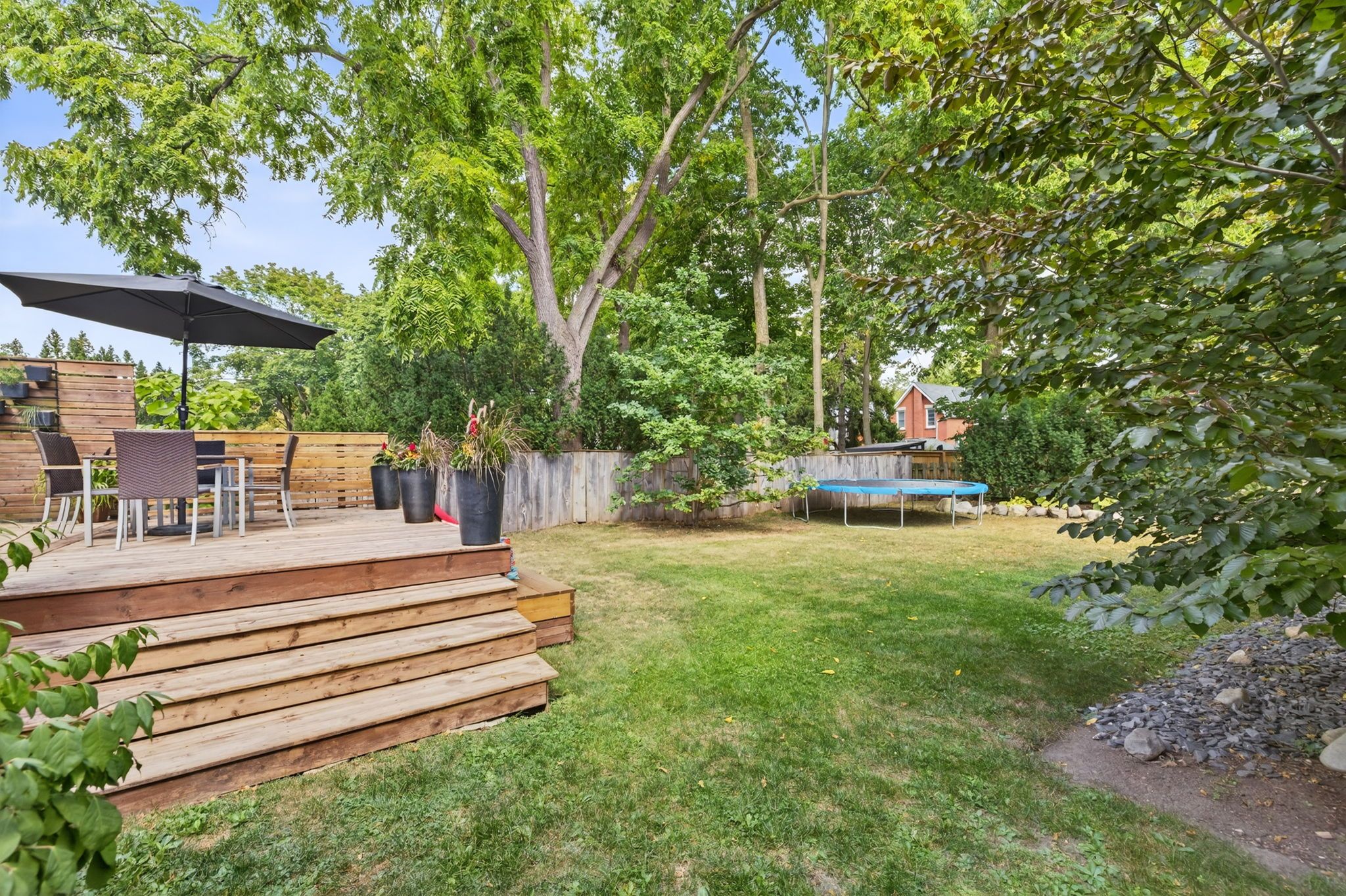 • Spacious backyard features a deck, perfect for outdoor activities.