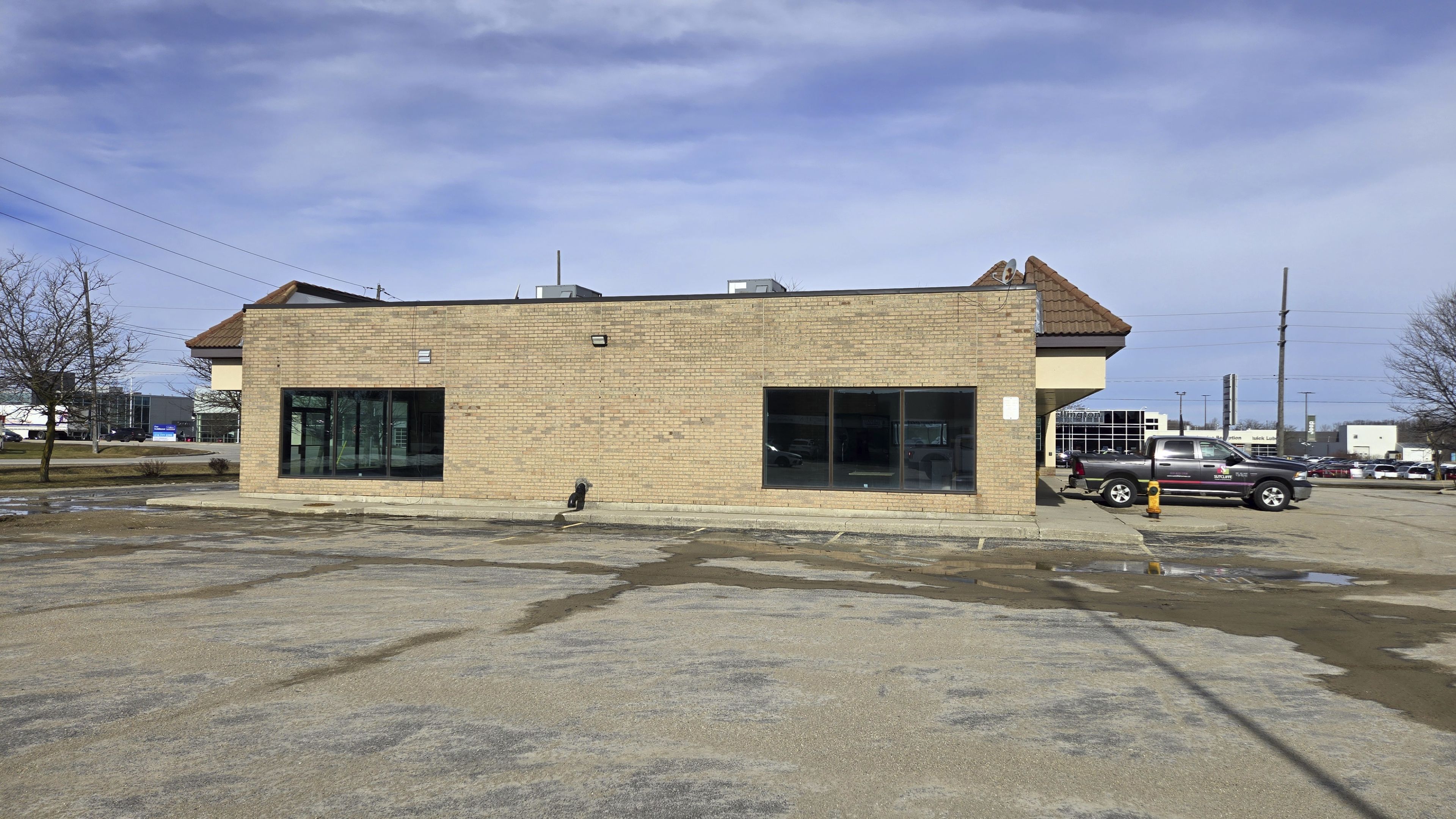 5,092 sf pad space available in high-traffic location. Currently finished with soundproof offices and open area. Former restaurant building features drive-through possibility. Strategically located along woodlawn rd w near the guelph auto mall, providing easy access to guelph and waterloo region markets. Complementary uses include: community centre, financial establishment, drive-through, office, restaurant among others.