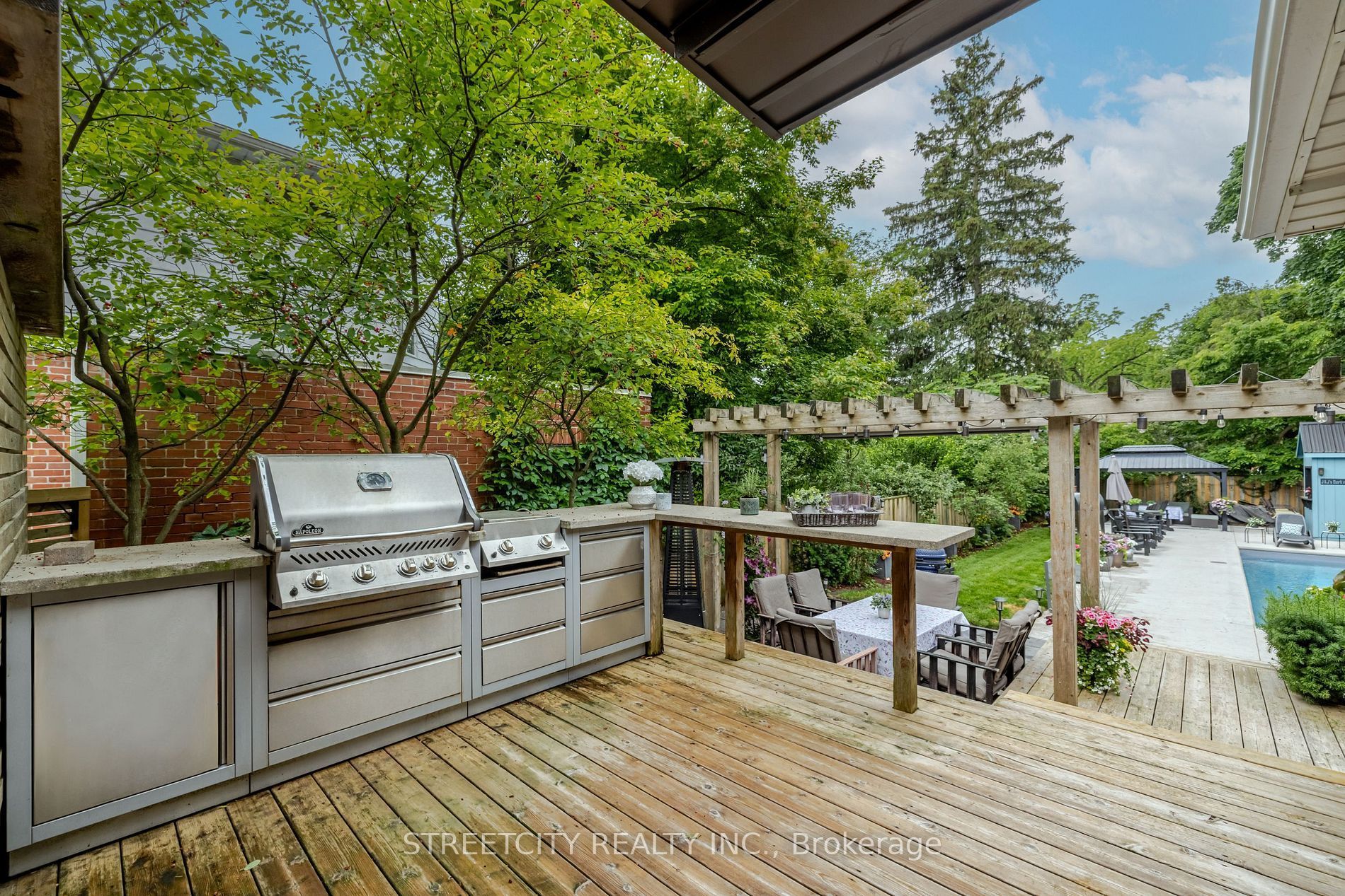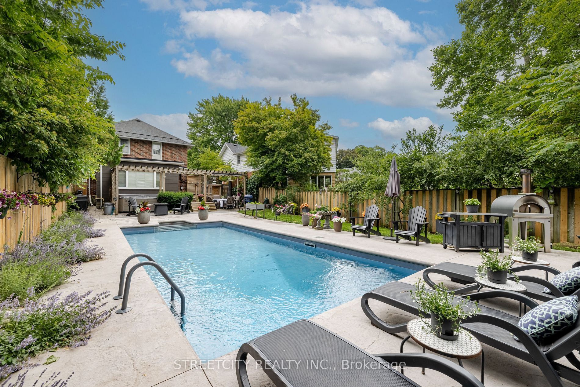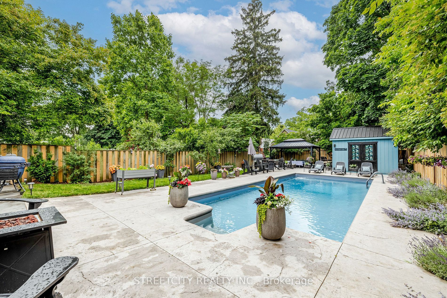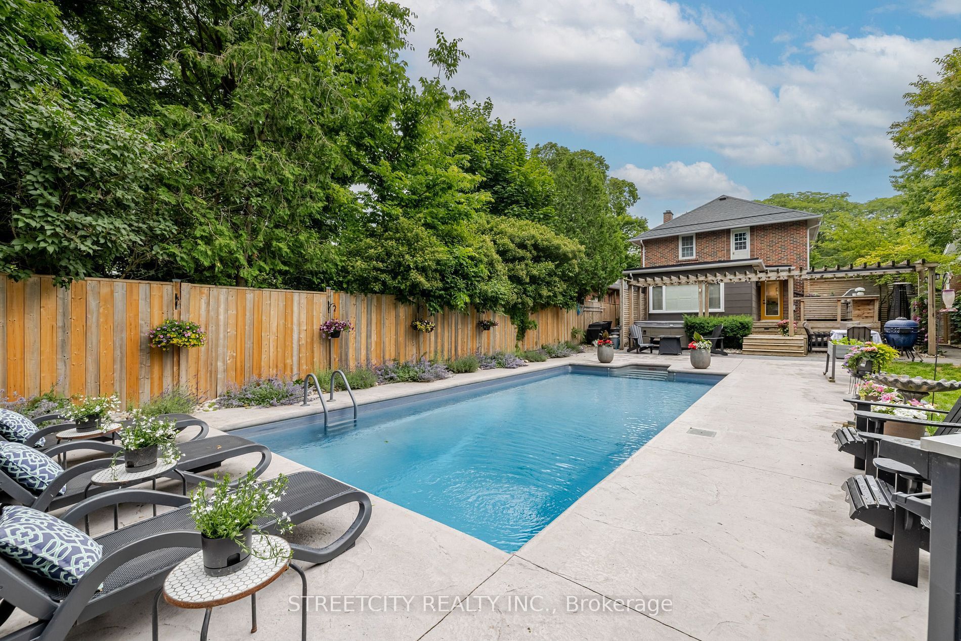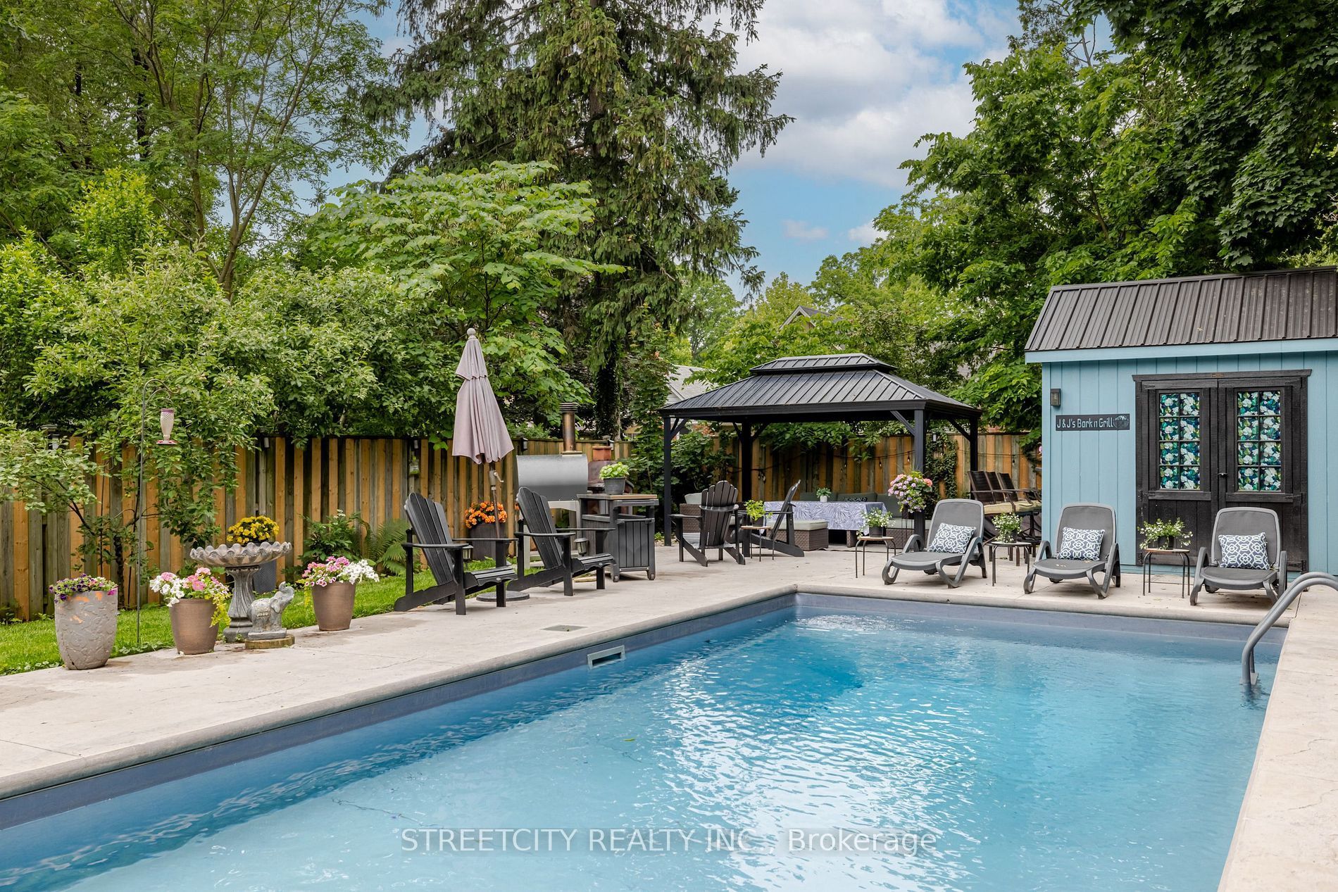 Standing proudly on one of old north london's most desirable streets, 931 waterloo street offers a rare opportunity to live in one of the city's most established and sought-after neighbourhoods. Known for its tree-lined avenues, historic charm, and strong sense of community, old north places you just minutes from downtown london, western university, st. Joseph's hospital, excellent schools, local cafés, parks, and everyday amenities, making it an ideal setting for both families and professionals who value walkability and convenience alongside character. This storybook-style home reflects the timeless architectural beauty the area is known for, featuring steep gables, intricate brickwork, and a charming curved portico that highlights its early 20th-century heritage. Inside, original woodwork, vintage doors, detailed millwork, leaded glass windows, and rich hardwood floors create a warm and inviting atmosphere. The living room centres around a striking stone fireplace, while the formal dining room showcases coved ceilings and an original 1930s chandelier. A bright additional family room provides flexible living space, and the updated kitchen introduces modern comfort with white cabinetry, quartz countertops, open shelving, brass accents, and direct access to outdoor entertaining areas. Upstairs offers four bedrooms and a full bath, including a spacious primary bedroom. The finished lower level adds further versatility with a three-piece bathroom and bonus space suited for a playroom, gym, or home office. The backyard is a private retreat designed for both relaxation and entertaining, highlighted by a saltwater in-ground pool, stamped concrete patio, pergola, custom pool house bar, and mature gardens that create a peaceful outdoor escape. All set within one of london's most prestigious historic neighbourhoods, where character homes, mature landscapes, and close proximity to the city's best amenities make old north a consistently coveted place to call home.
