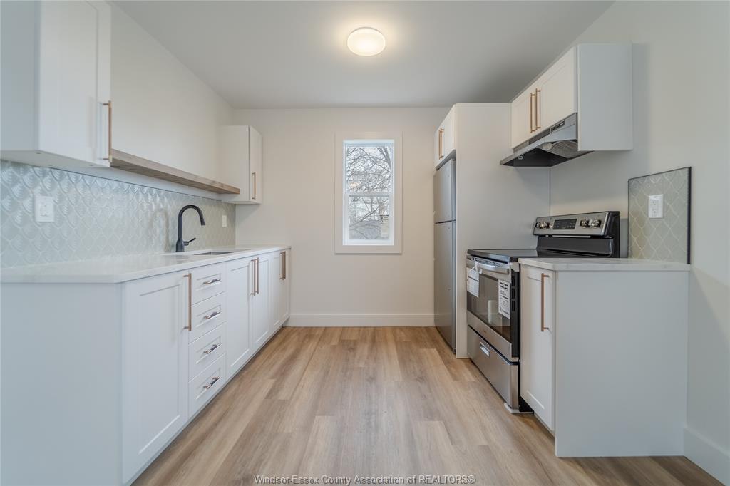 Welcome to 932 oak, upper unit, a brand new fully renovated 3 bedroom, 1 bathroom unit offering modern finishes and bright, comfortable living throughout. This unit features open concept living and dining area filled with natural light. The kitchen has been beautifully updated with brand new white cabinetry, modern countertops, rose gold fixtures, and a stylish tiled backsplash. A dedicated in-suite laundry area with a stackable washer and dryer provides added convenience along with extra storage space. The bathroom has also been fully updated. The unit is equipped with electric baseboard heaters for additional warmth and a mini-split system in the living room for efficient heating and cooling. The backyard is shared and fenced. This unit is pet friendly. Tenants are responsible for hydro and water. One-year minimum lease. First and last months' rent and a full application are required.