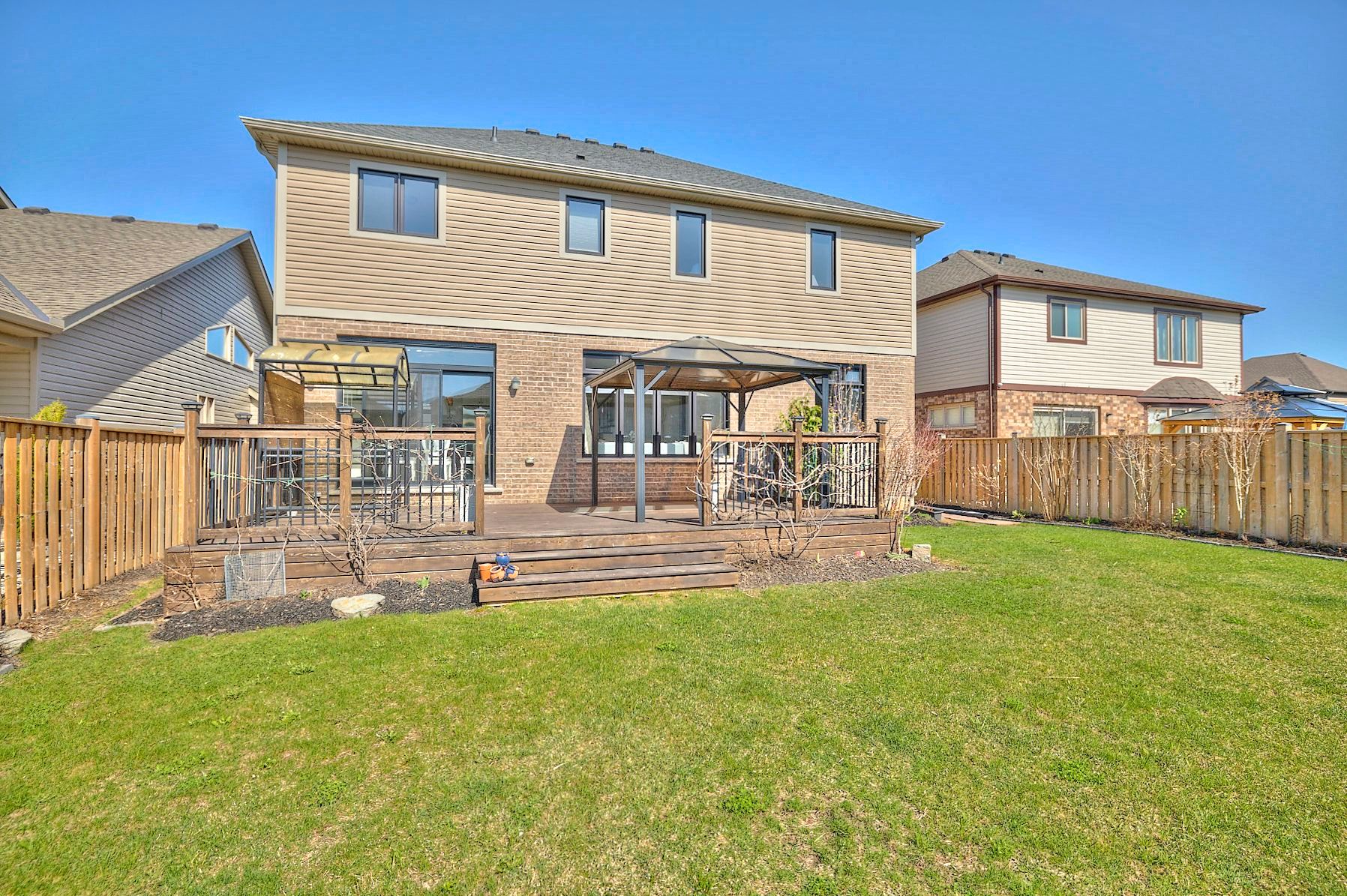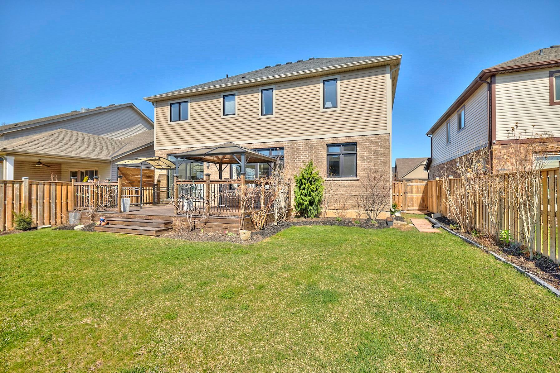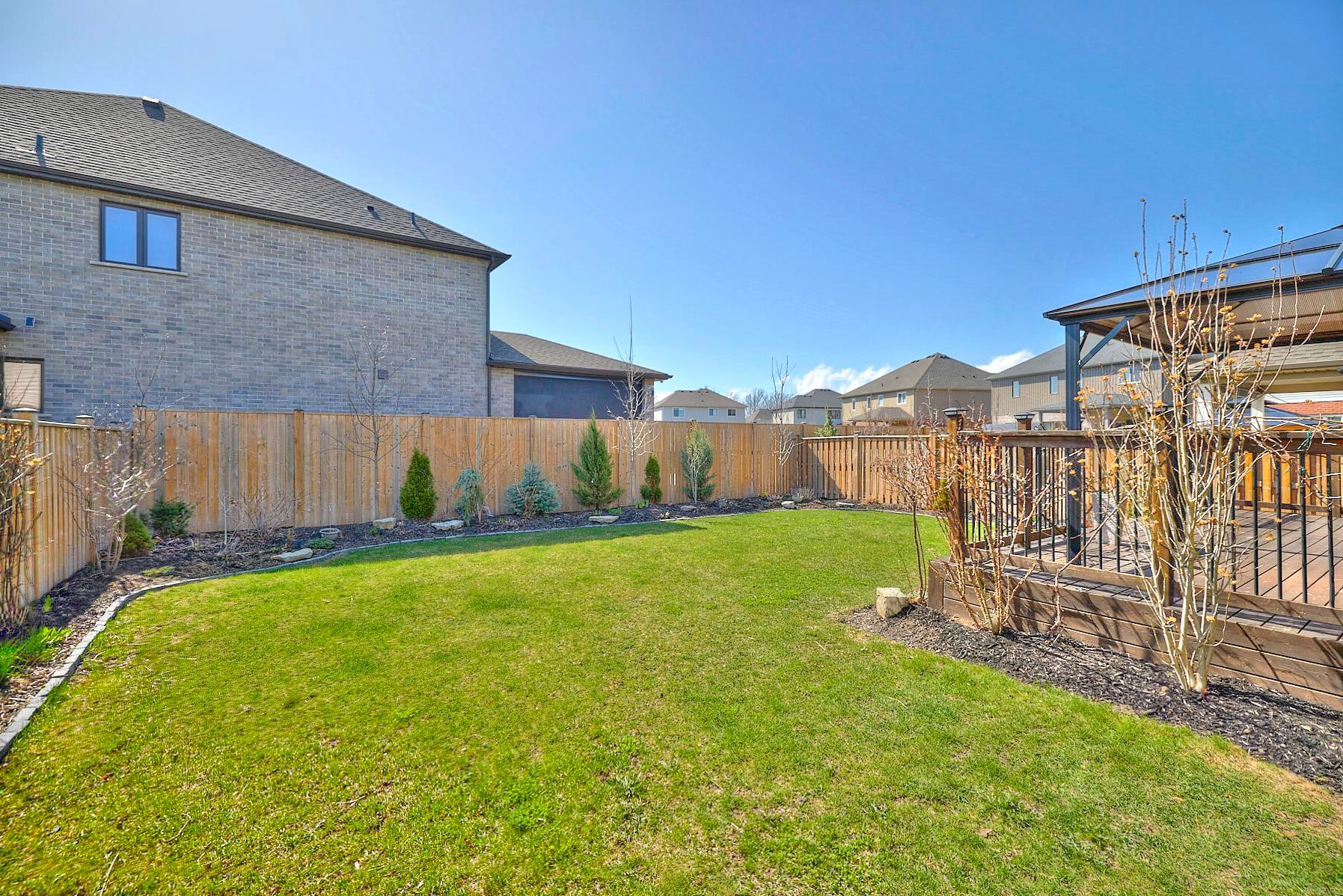 • Professionally landscaped yard with a deck, pergola, and BBQ area.