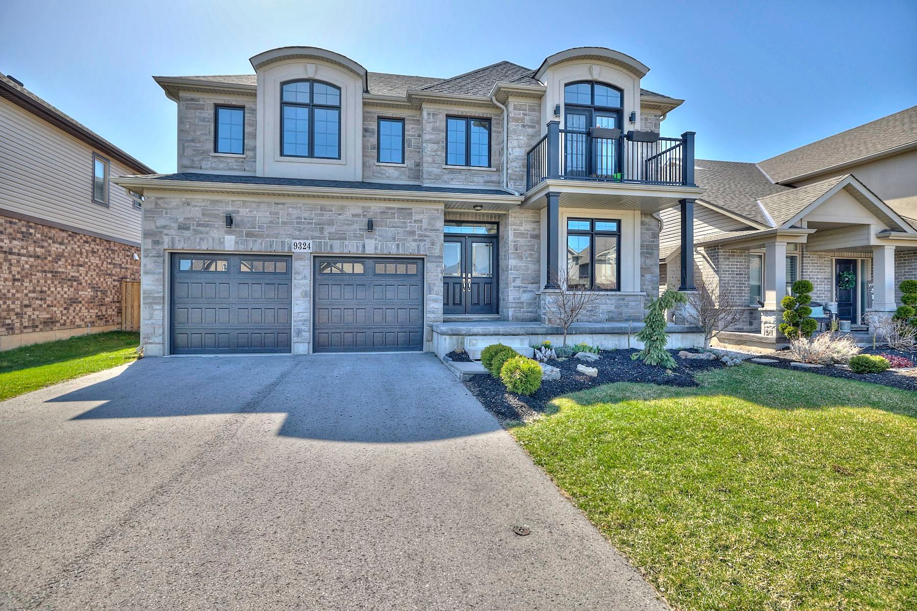 One of the finest homes built in this subdivision! Welcome to 9324 madison crescent, a beautifully maintained 2-storey detached home offering approximately 2,847 sq ft of elegant living space above grade in the highly sought-after fernwood estates community in niagara falls. This impressive family home showcases exceptional quality and thoughtful upgrades throughout, including a stone exterior, pot lights all around, 9-foot ceilings on the main floor, engineered hardwood flooring, stone countertops in the kitchen and bathrooms, and a custom-built kitchen featuring high-end appliances, an 8-burner gas stove, a professional range hood, and two garburators. Designed for both everyday comfort and entertaining, the home offers abundant natural light through the large living room windows and kitchen patio door, along with a spacious pantry and butler's area. The main floor office can easily be used as a bedroom, making it ideal for elderly family members or multi-generational living, and is complemented by a convenient powder room and direct garage access. Upstairs features 4 spacious bedrooms and 3 full bathrooms, along with a large family loft. Two of the bedrooms include private ensuite bathrooms, including a second primary-style suite with access to a private balcony, while the additional full bathroom serves the remaining bedrooms. The basement offers large windows, providing excellent potential for bright additional living space. Outside, the professionally landscaped yard includes over $10,000 in plants, a newer deck with pergola and bbq area, and a double car garage. This is a rare opportunity to own a truly exceptional home, perfect for a large or growing family, in one of niagara falls' most desirable neighbourhoods. Book your showing today!