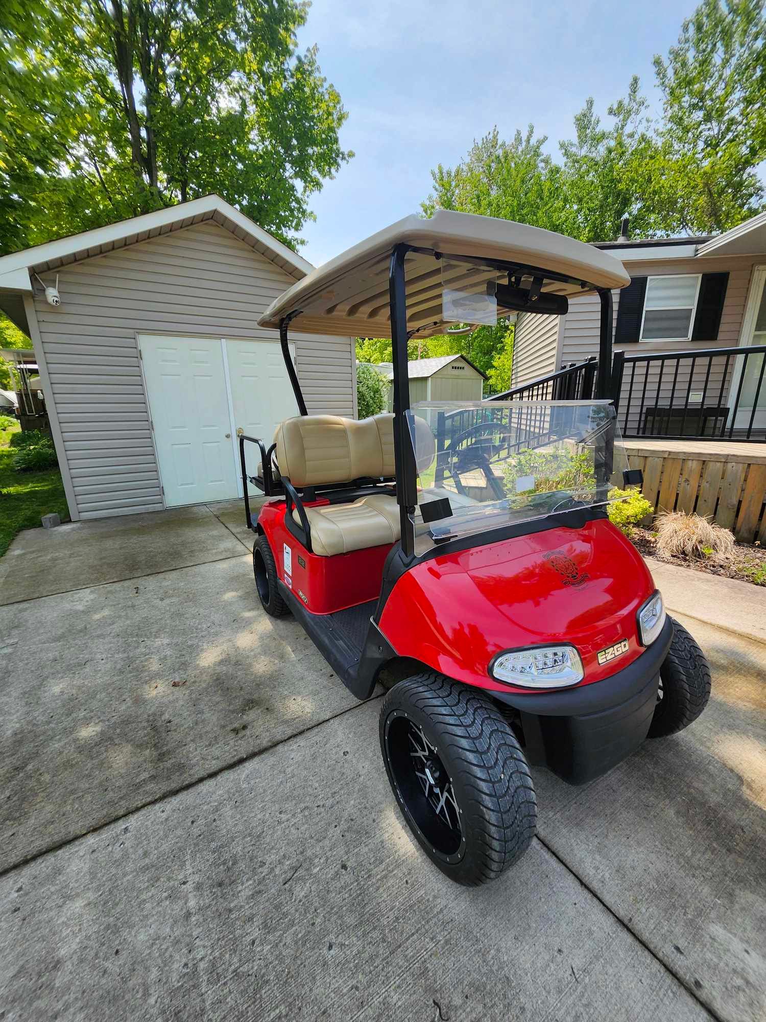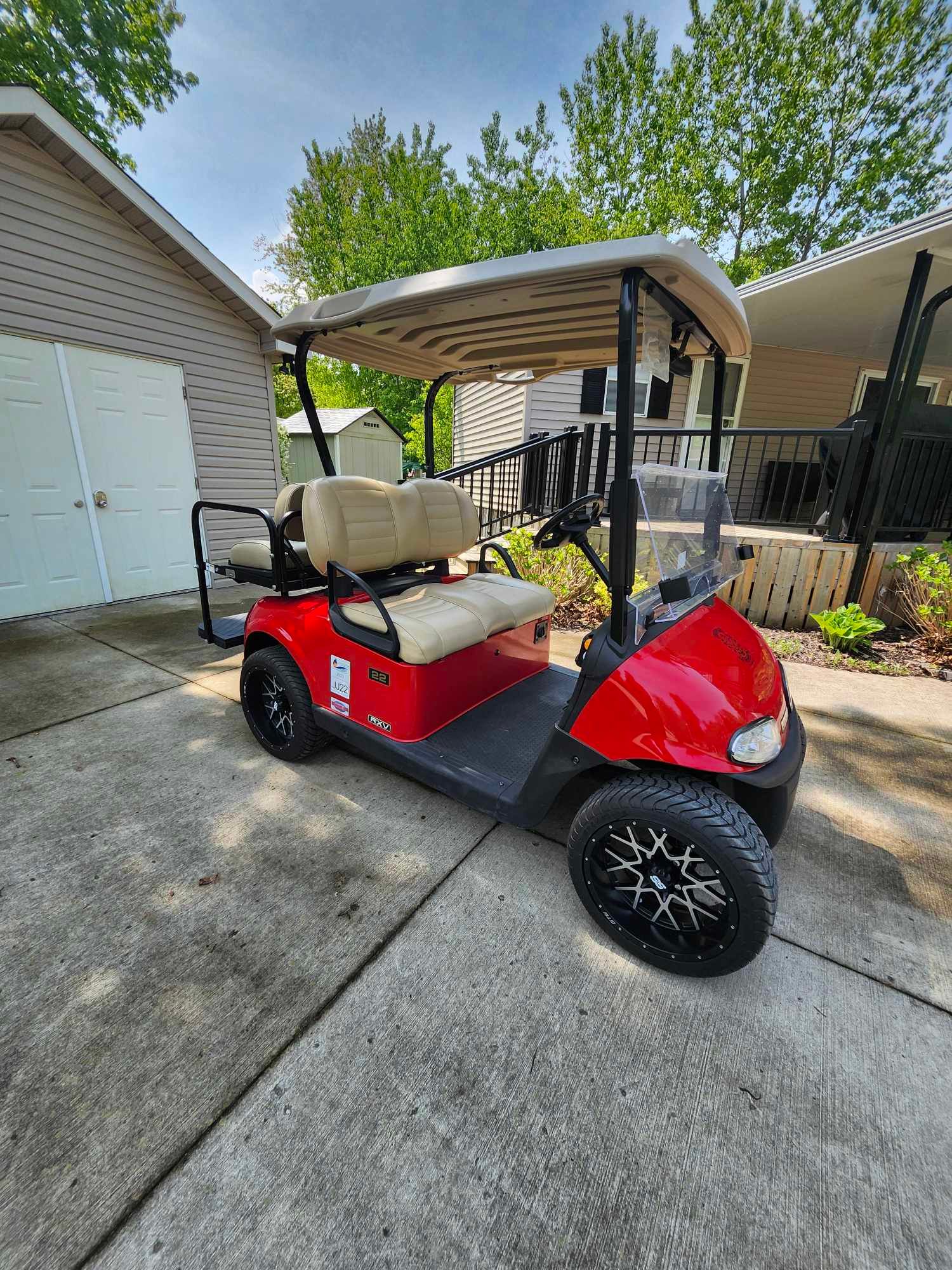 Check out this 6 month premium plus seasonal site at our ponderosa cottage & rv resort. Included- 2019 ezgo rxv 48v golf cart with premium seats, 14x7 vortex wheels and mamba tires, led light kit, rear flip frame with seat, retractable seat belts for rear passengers, and golf bag attachment!! Sleeps 10! This is the perfect getaway for anyone who likes to enjoy all that summer has to offer. Situated on a quiet cul-de-sac, this premium plus site has a front lawn with firepit area, and a spacious rear yard. The paved driveway allows 2 vehicles easily, and the shed has plenty of storage, and room for the golf cart to be stored out of the elements. The deck with hard awning features a screened in area to lounge in any kind of weather. Inside you'll find an open concept kitchen, living room with pull out sofa bed and an eating area. There is a spacious primary bedroom, the second bedroom offers 2 bunk beds (one with double on the lower bunk, and a roomy third bedroom. You won't run out of hot water as there is a full size tankless water heater!! Our ponderosa is just minutes from ipperwash beach, one of the nicest sand beaches around, perfect for families. The park has something for everyone including an exclusive 9 hole golf course (included in the seasonal fees), horse shoes, children's programing, basketball court, bouncy pillow, sand volleyball courts, 2 pools and a water slide, chip wagon, playgrounds, splash pad, mini putt and there is scheduled evening entertainment with live performances. It really is one of the premier parks along lake huron. Included: golf cart, tankless water heater, indoor furniture, gas stove, refrigerator, window coverings, storage shed.