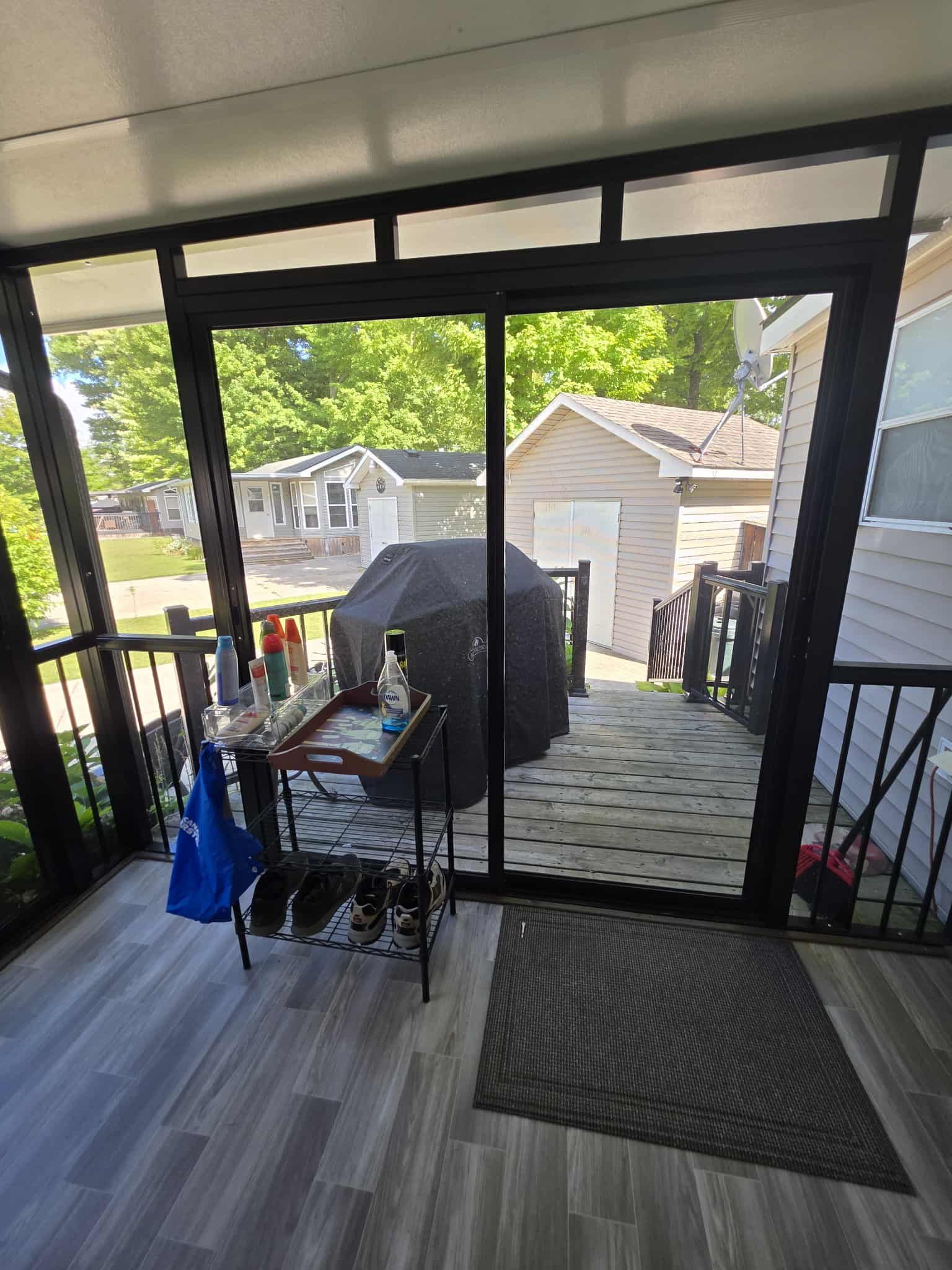 • Spacious deck with screened area for relaxing in any weather.