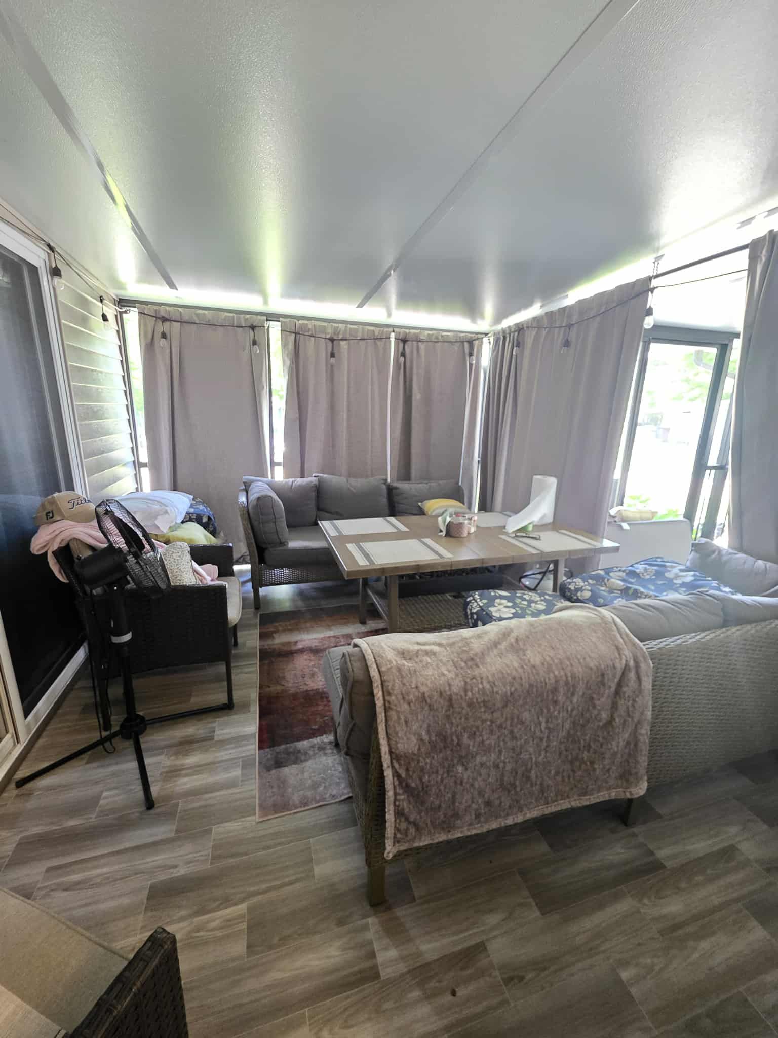 • Includes a golf cart and a tankless water heater for convenience.