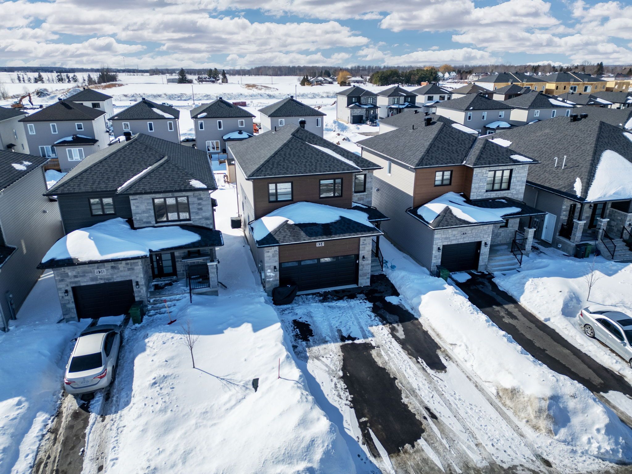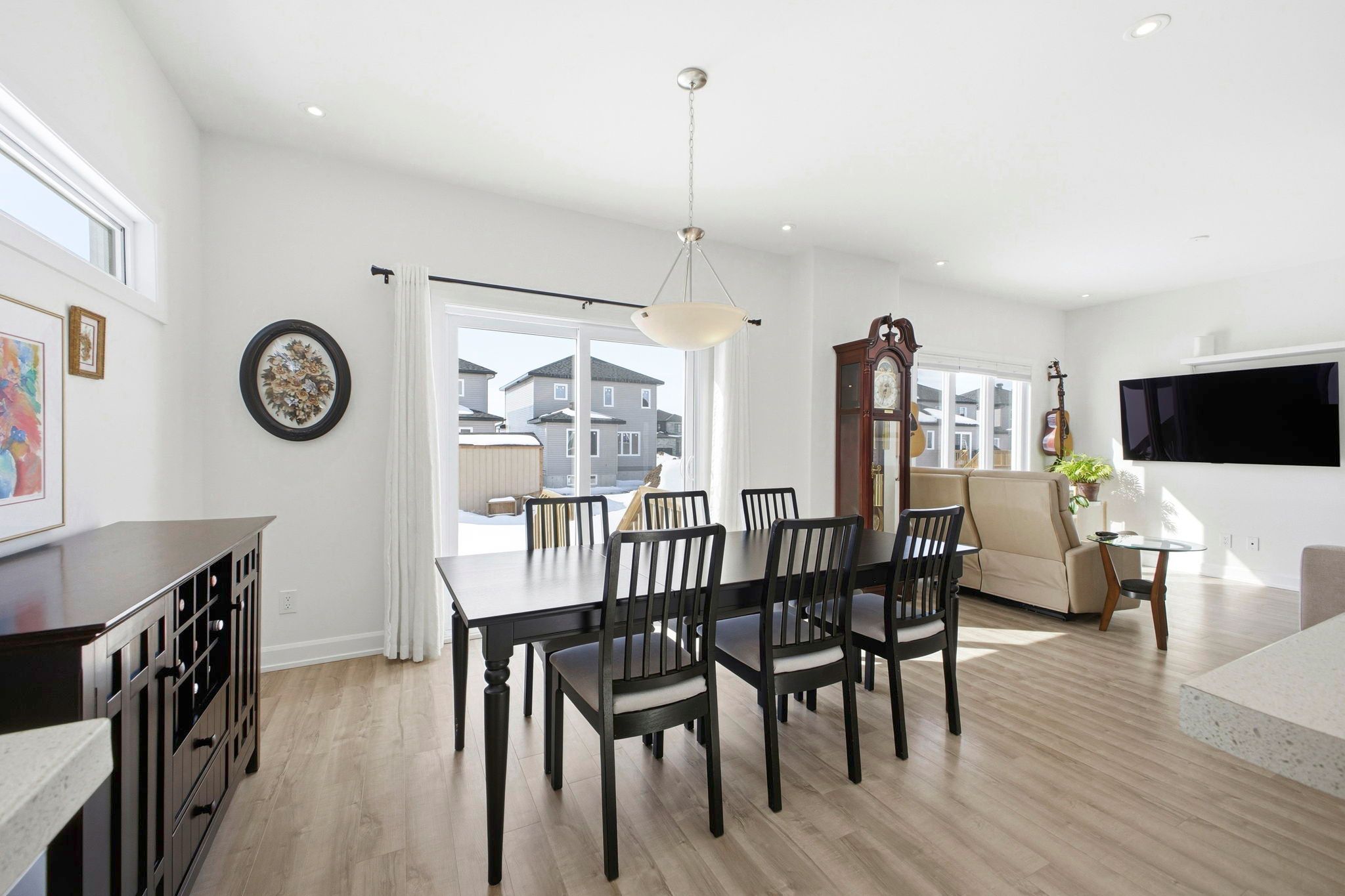 Welcome to this beautifully upgraded 2023 melanie construction home, ideally located in the growing community of embrun. Designed with modern living in mind, this home offers value with thoughtful finishes and move-in-ready appeal. Step inside to discover the spacious tiled entrance that flows through to the garage entrance. The durable and stylish vinyl plank flooring throughout the living space provides a seamless and low-maintenance flow across the main living areas. The open-concept layout is filled with natural light, benefitting from added windows and enhanced by numerous upgrades, making the space both functional and inviting. The stunning kitchen is the heart of the home, featuring upgraded cabinetry, sleek countertops, modern fixtures, high end appliances and a layout perfect for both everyday living and entertaining. Whether you're hosting guests or enjoying a quiet evening at home, this space delivers on style and practicality. The home continues to impress with 3 well-proportioned bedrooms, beautiful neutral finishes, and a cohesive modern design throughout. The primary ensuite was enlarged & upgraded to include both a soaker tub & standup shower, as well as double sinks and a wide vanity. This bedroom also benefits from a large walk in closet. Also to be found on the second level is a convenient laundry room. The basement is very well laid out to potentially accommodate a rec room, bedroom and bathroom, depending on your preferences & needs. | rv/ev plug, hot & cold water in garage as well as nat gas heater | built in 2023, this property offers the benefits of newer construction while remaining affordable for a detached home, making it an ideal option. Located minutes from schools, parks, shopping, and essential amenities, this home combines quality craftsmanship, modern upgrades, and great value in one of embrun's most desirable communities. A fantastic opportunity to own a recently built home without the new-build price tag or months of waiting.