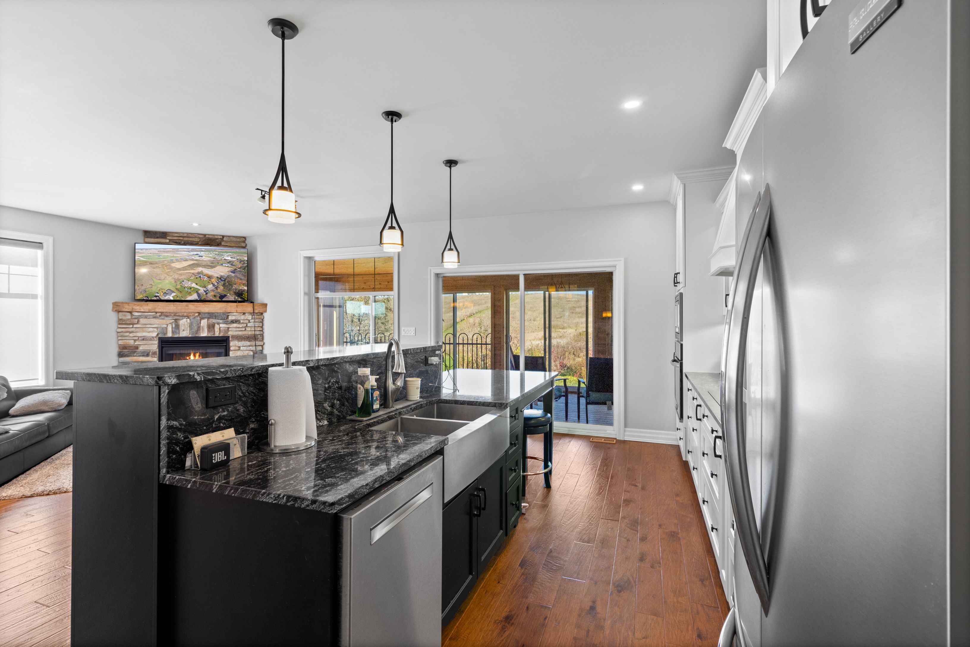 Enjoy stunning sun sets from the west facing deck of this custom built 4 br home over looking walkerton. From first entry through the beautiful foyer you can feel the quality & workmanship of this beautiful home. The private den/office is directly off the foyer & as you move ahead you enter the open concept main living area, that is flooded with natural light to accent the custom kitchen with granite counter tops, s. S. Appliances, raised bar & walk-in pantry. Both the den & kitchen have beautiful gas fireplaces & the main area leads out to the deck with awnings or the north facing porch. The floor plan is accented with main floor m. B. & 3 bedrooms & large rec. Room down stairs. Access to garage from all levels. The 22x22 2-car garage also has an extra work area. See it to truly appreciate all the extra features this home has to offer.