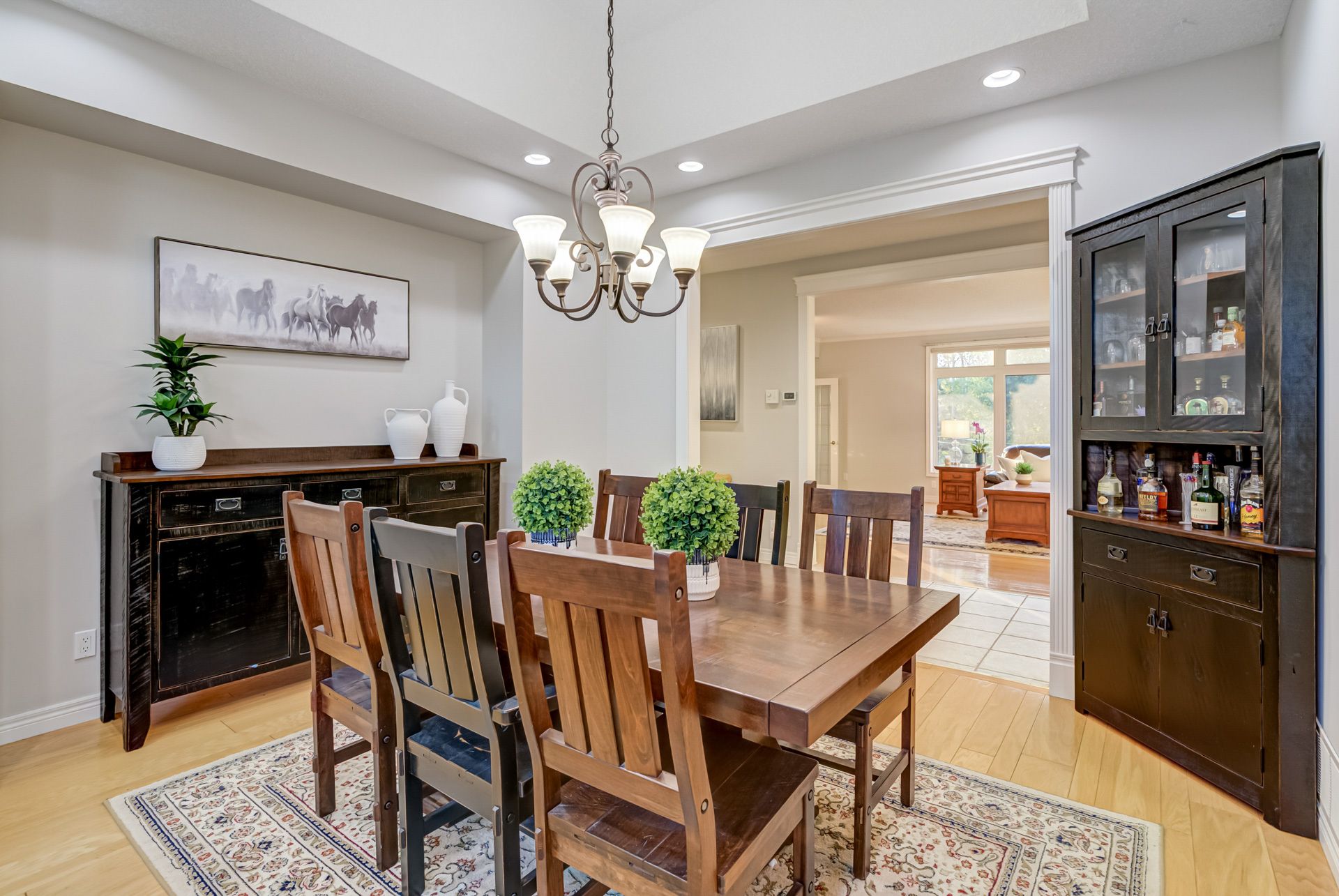 • Grand foyer and formal dining with vaulted ceilings and natural light.