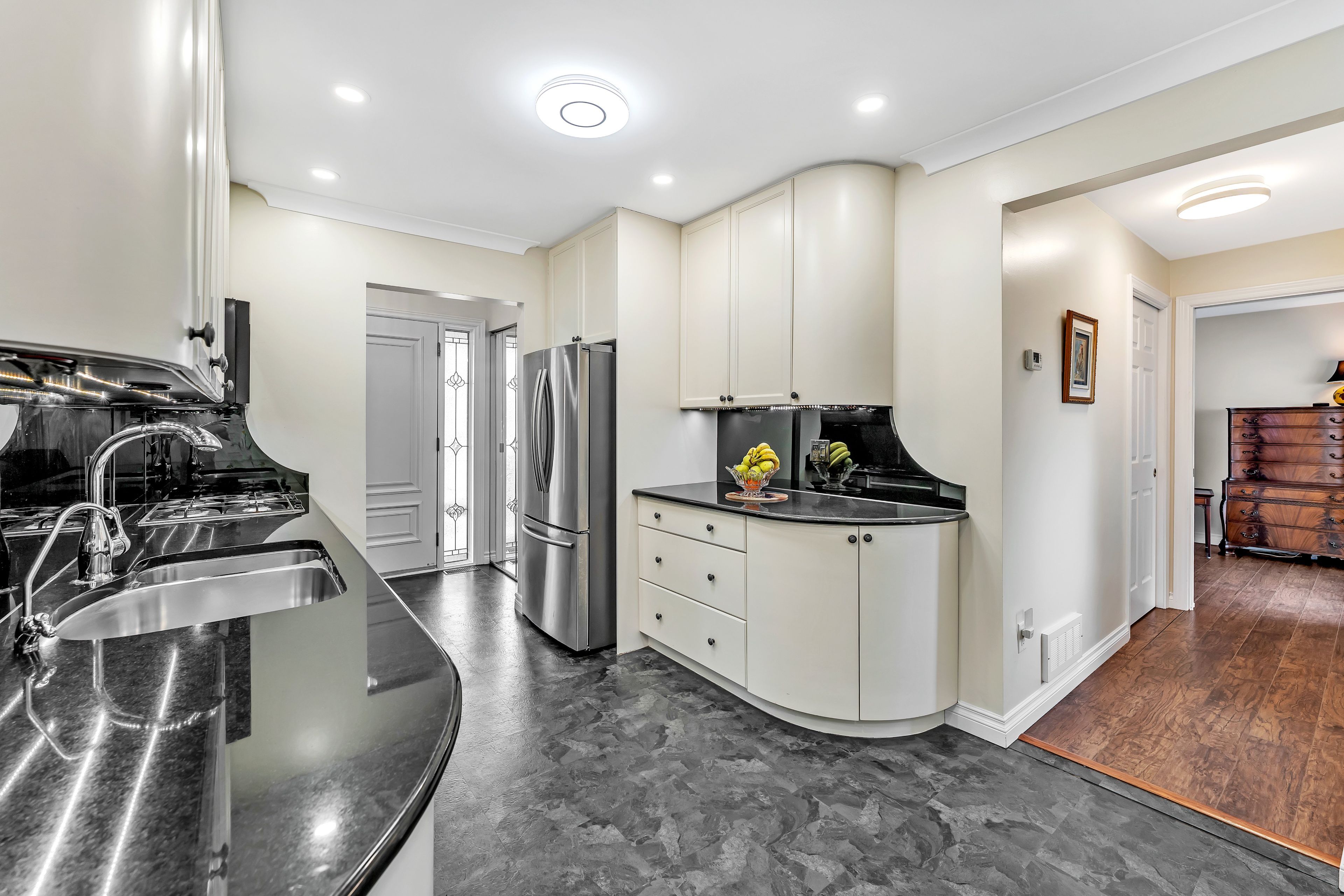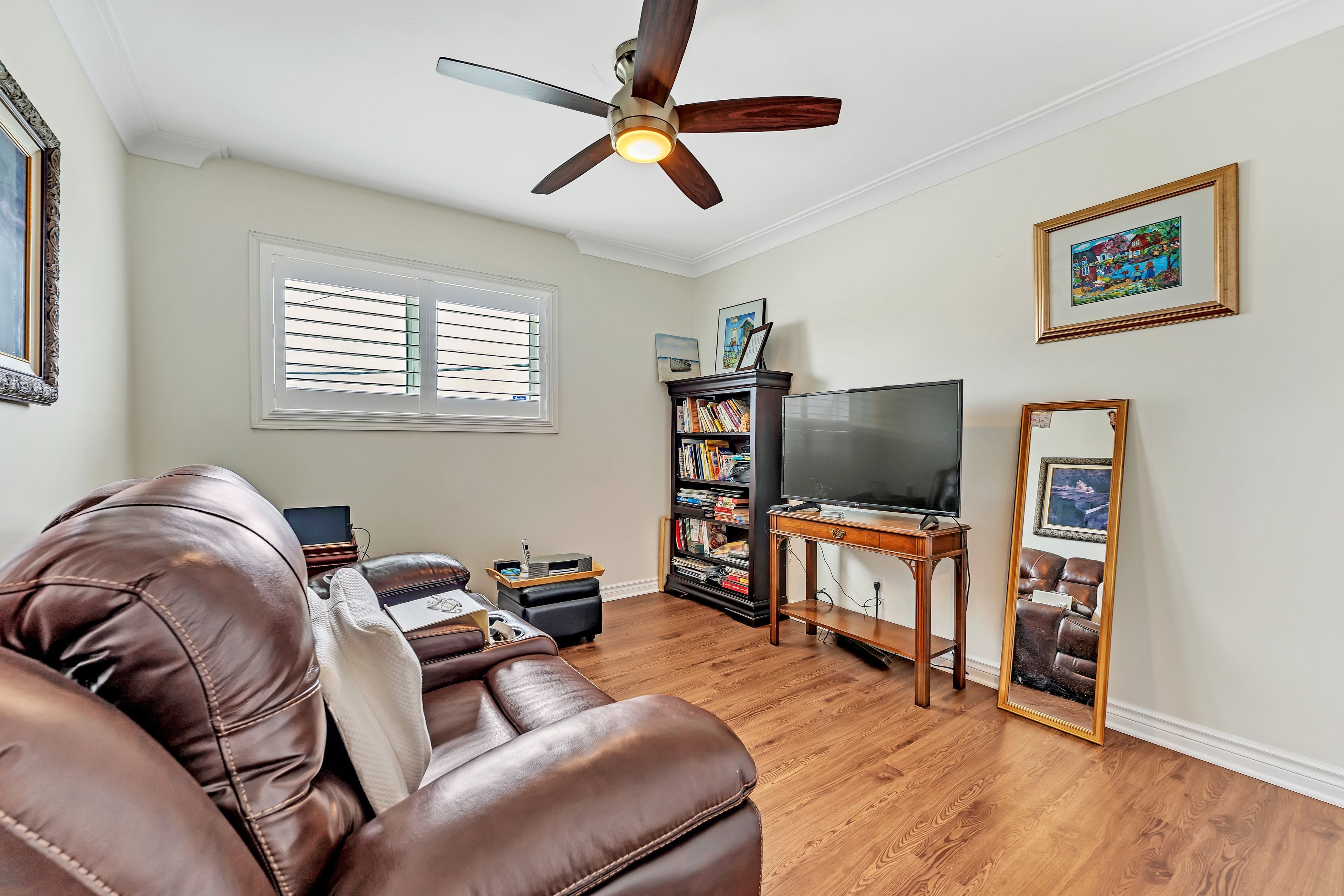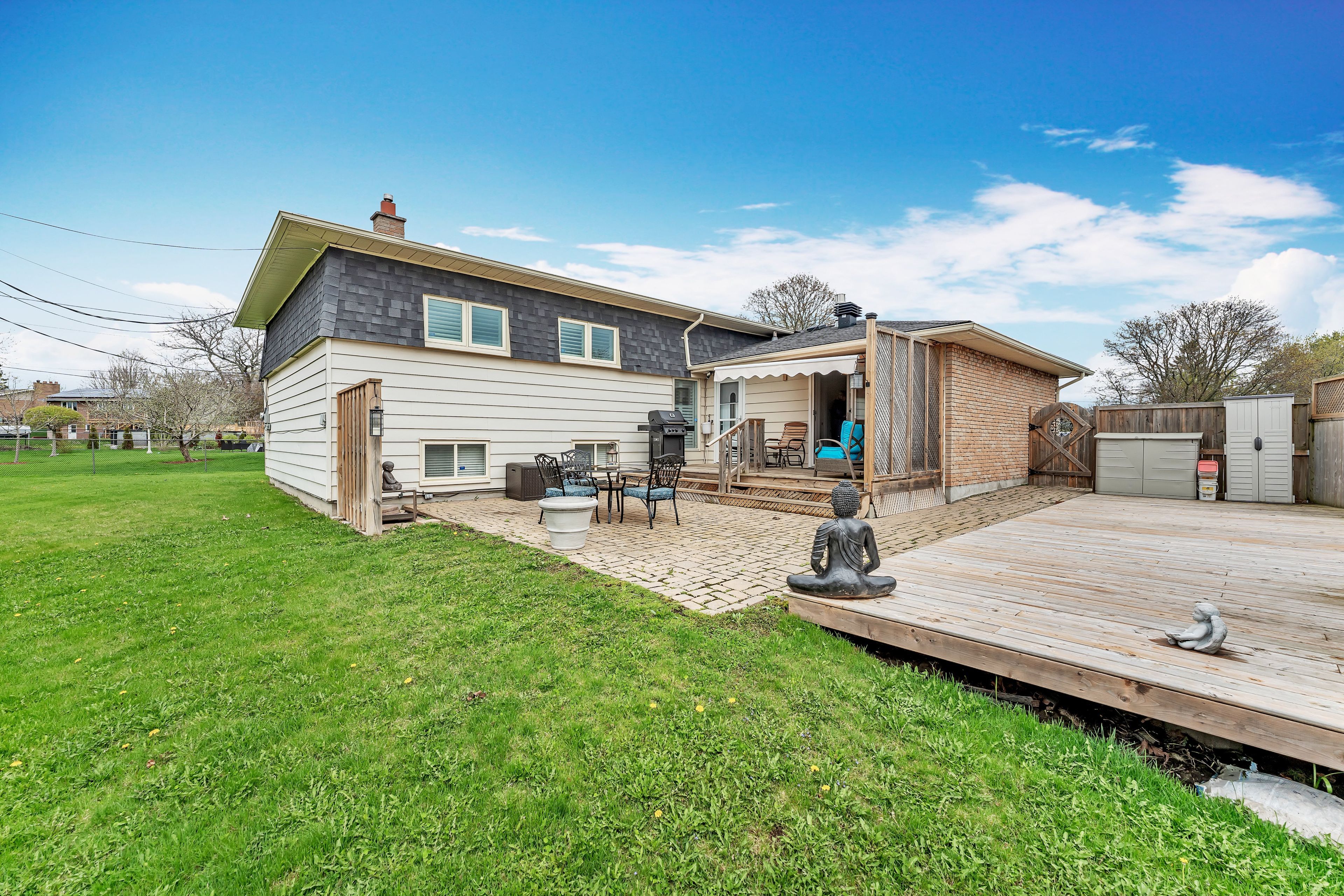 Reduced price! Welcome to 935 brodie avenue! This meticulously maintained and move-in ready 4-bedroom, 2. 5-bathroom home is sure to impress. Step through the front door into a bright, spacious living room seamlessly connected to the dining area - perfect for entertaining or functional everyday living. The kitchen boasts stainless steel appliances, a gas range, and stylish white curved cabinetry. Down the hall, you will find three generously sized bedrooms and a full bathroom. A professionally completed garage conversion adds incredible versatility. Currently being used as the primary bedroom, this space features a large bedroom with an ensuite bathroom and walk-in closet - ideal for guests, a private retreat, or potential secondary suite with its own separate entrance and washer/dryer hookups. The fully finished basement contains a cozy living space and a large laundry area. Enjoy features such as newer california shutters and three gas fireplaces that centrepiece each living space. This home is beautifully landscaped front and back. Complete with an underground sprinkler system, back patio, deck and awning, gas bbq hookups, this home is at the ready for all your relaxation or entertaining dreams! Tucked away on a quiet cul-de-sac, with a view of the landings golf course, this home is conveniently located near access to lake ontario, lakeshore pool, public transit and multiple parks and schools, with easy access to shopping and downtown. Additional features include 200 amp electrical service and a water filtration system. Don't miss out - book your showing today!