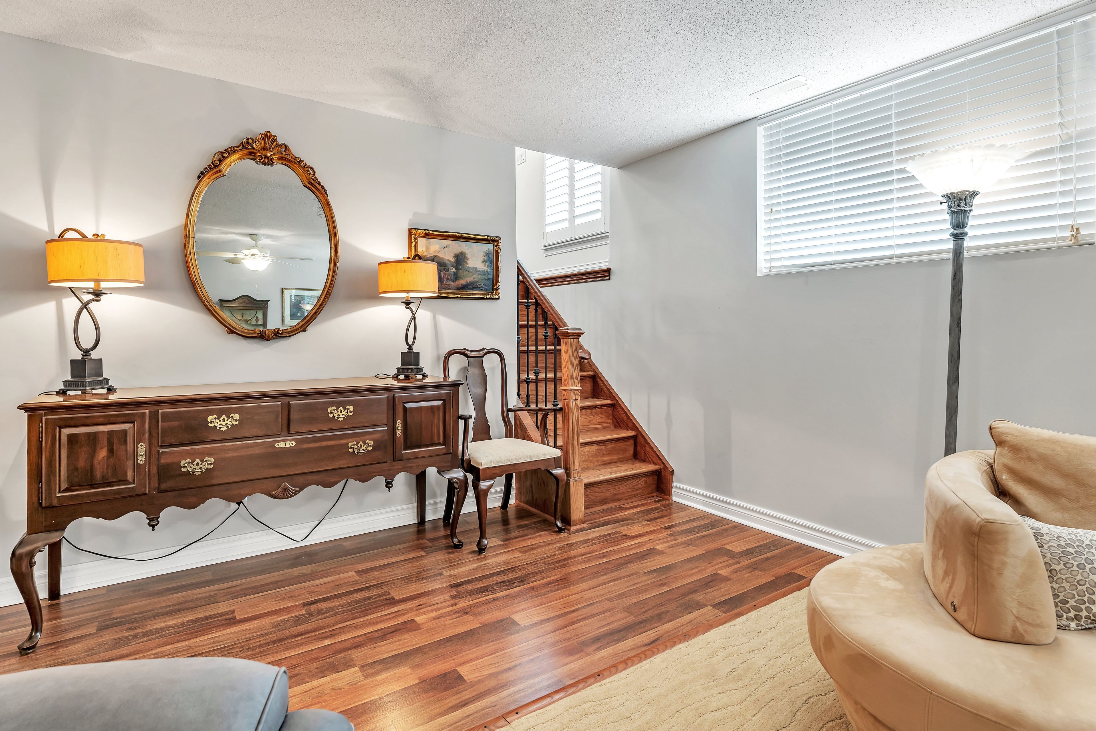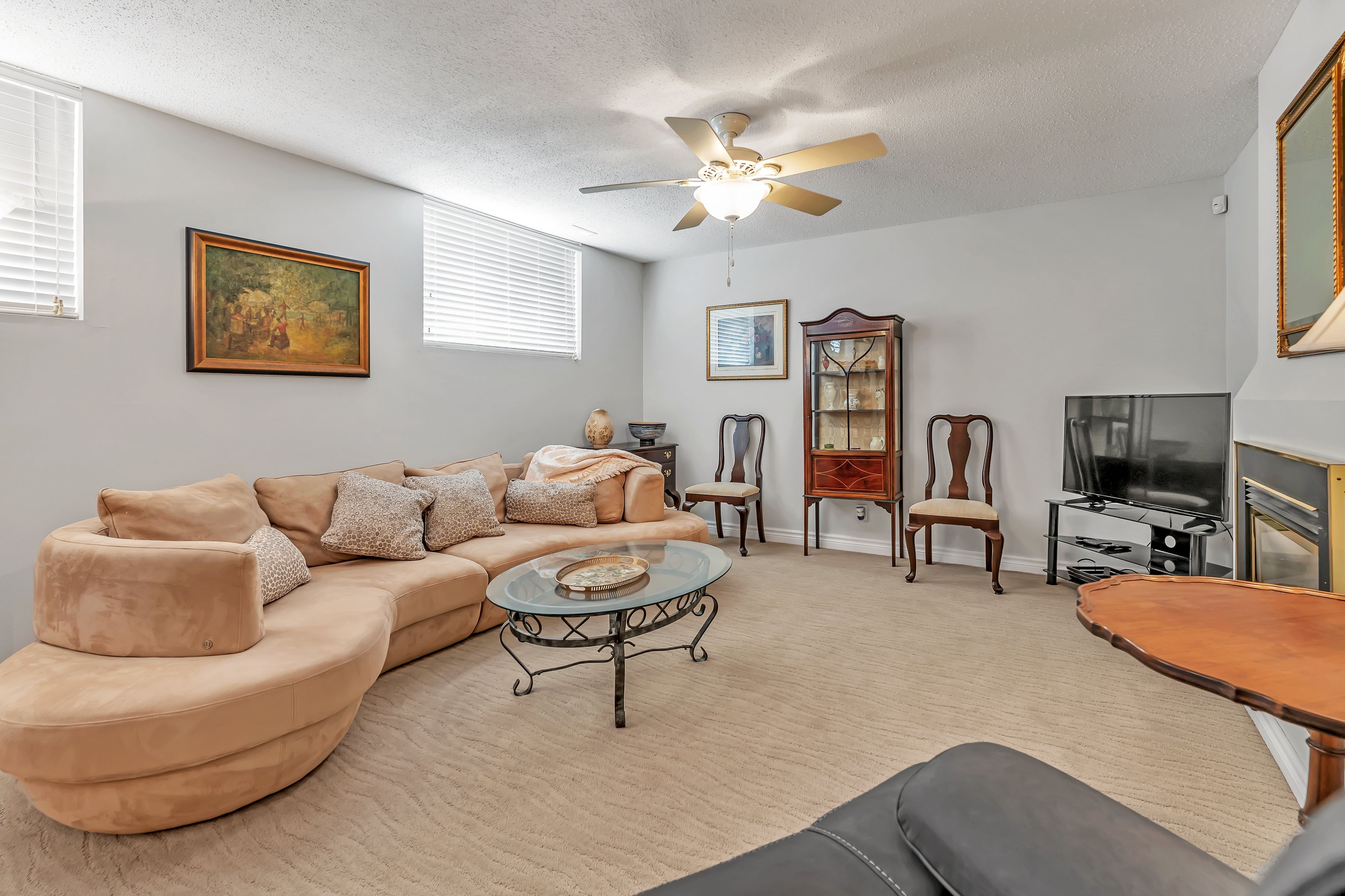 • Finished basement provides cozy living space and ample laundry area.