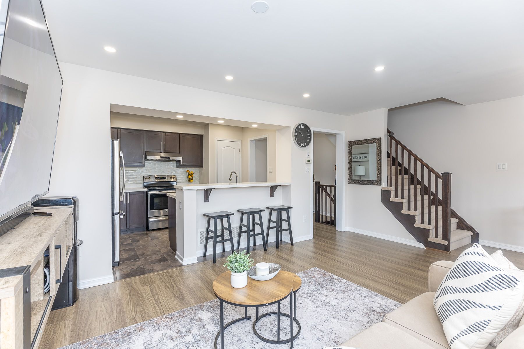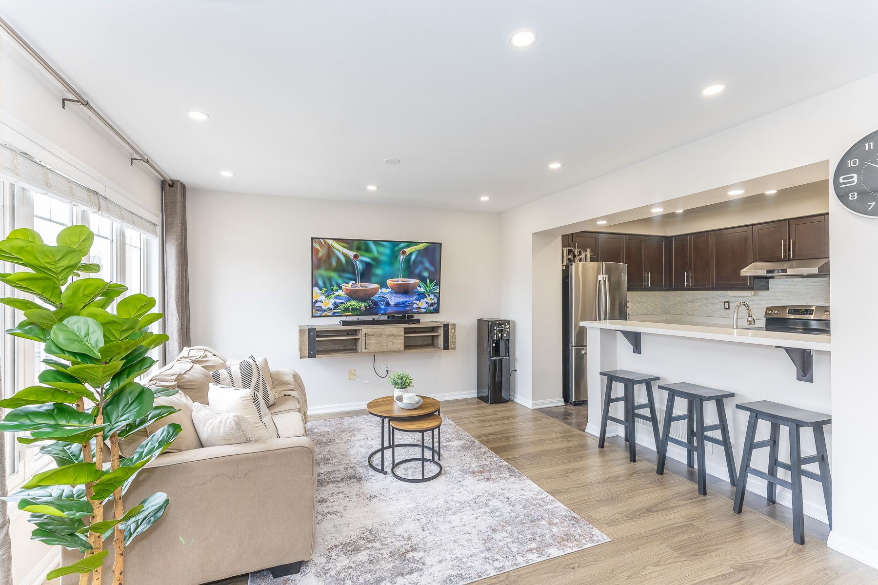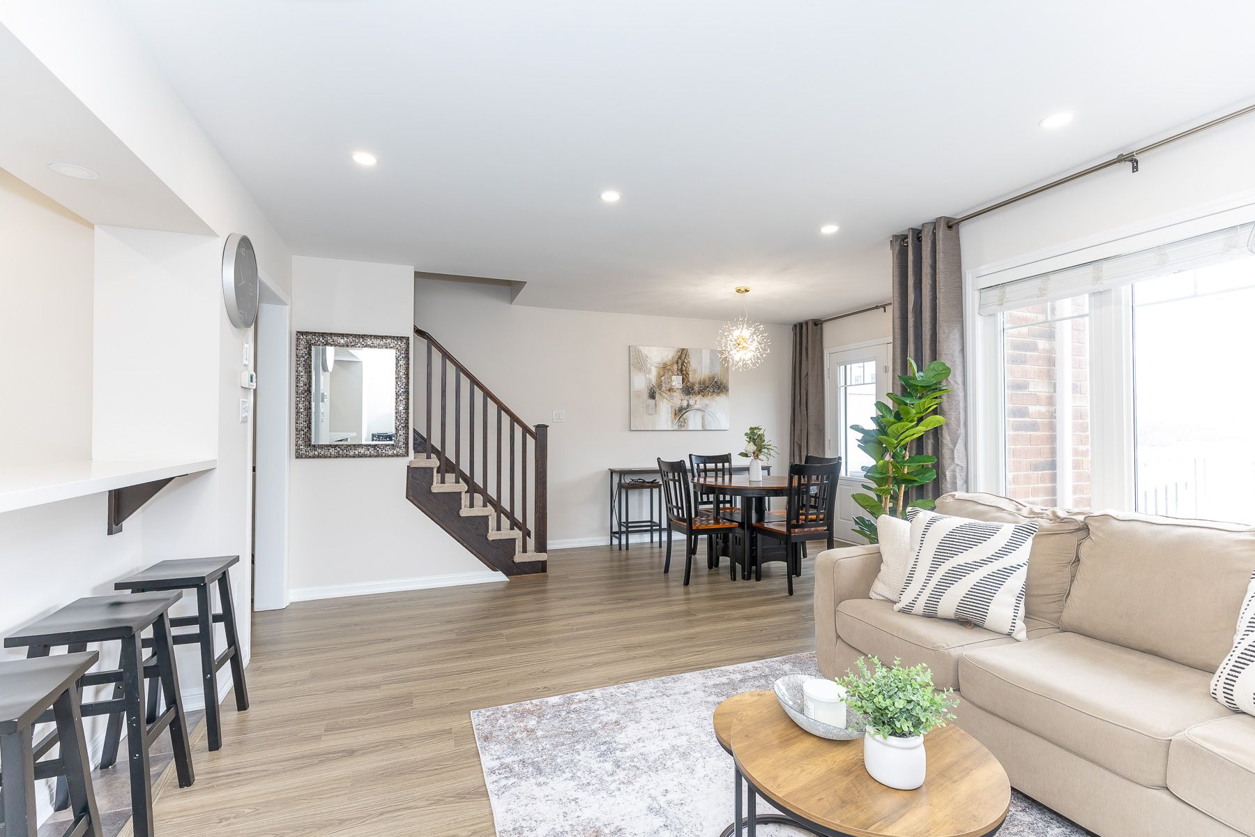 • Bright, open-concept layout with pot lights for a modern feel.