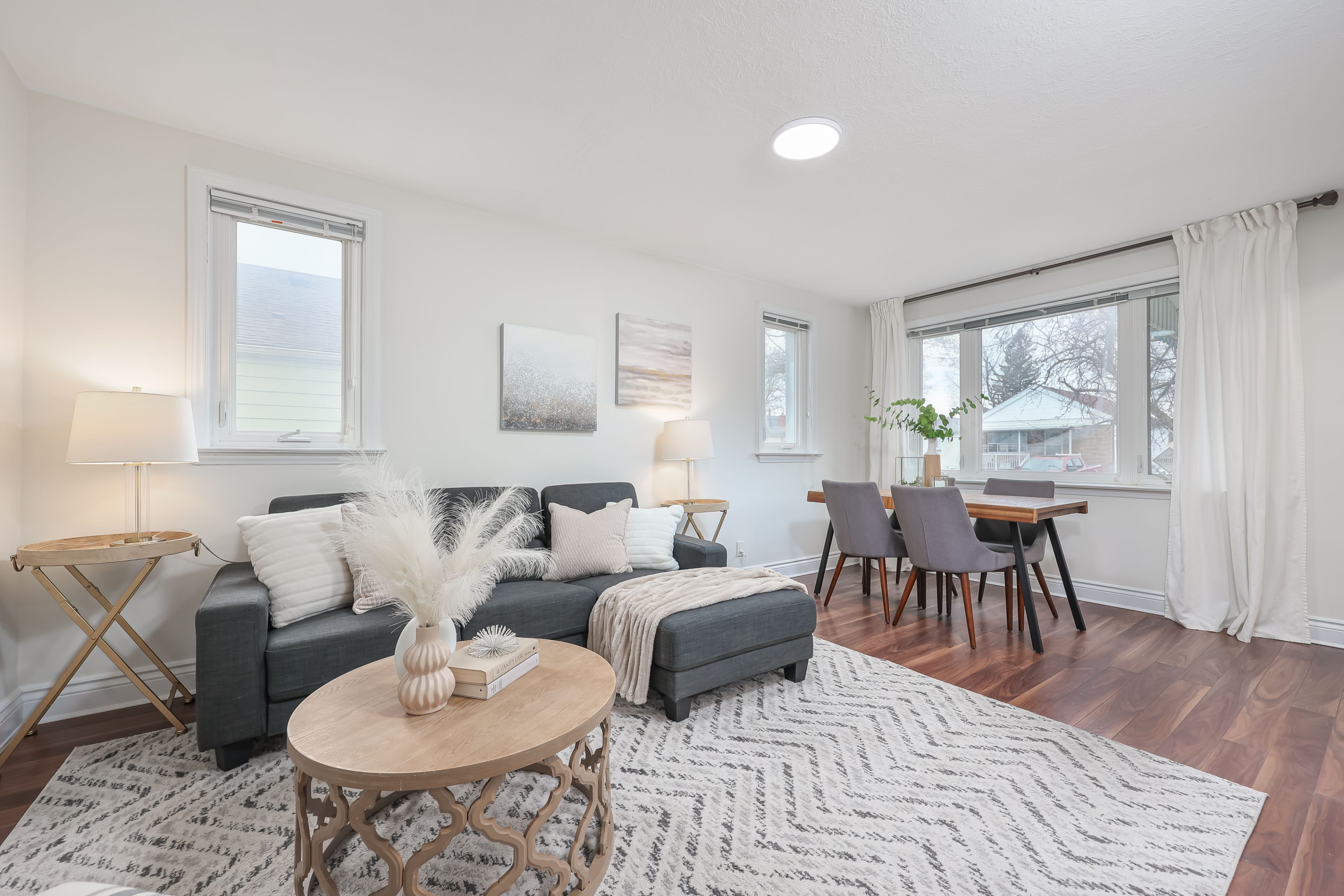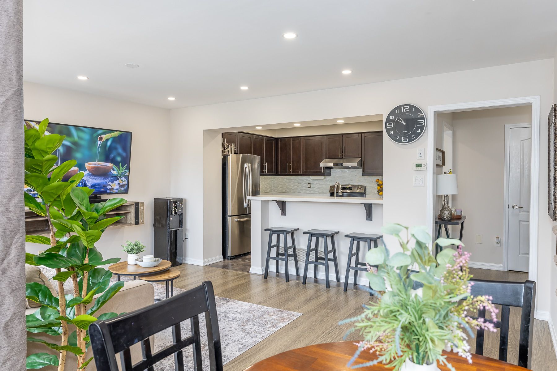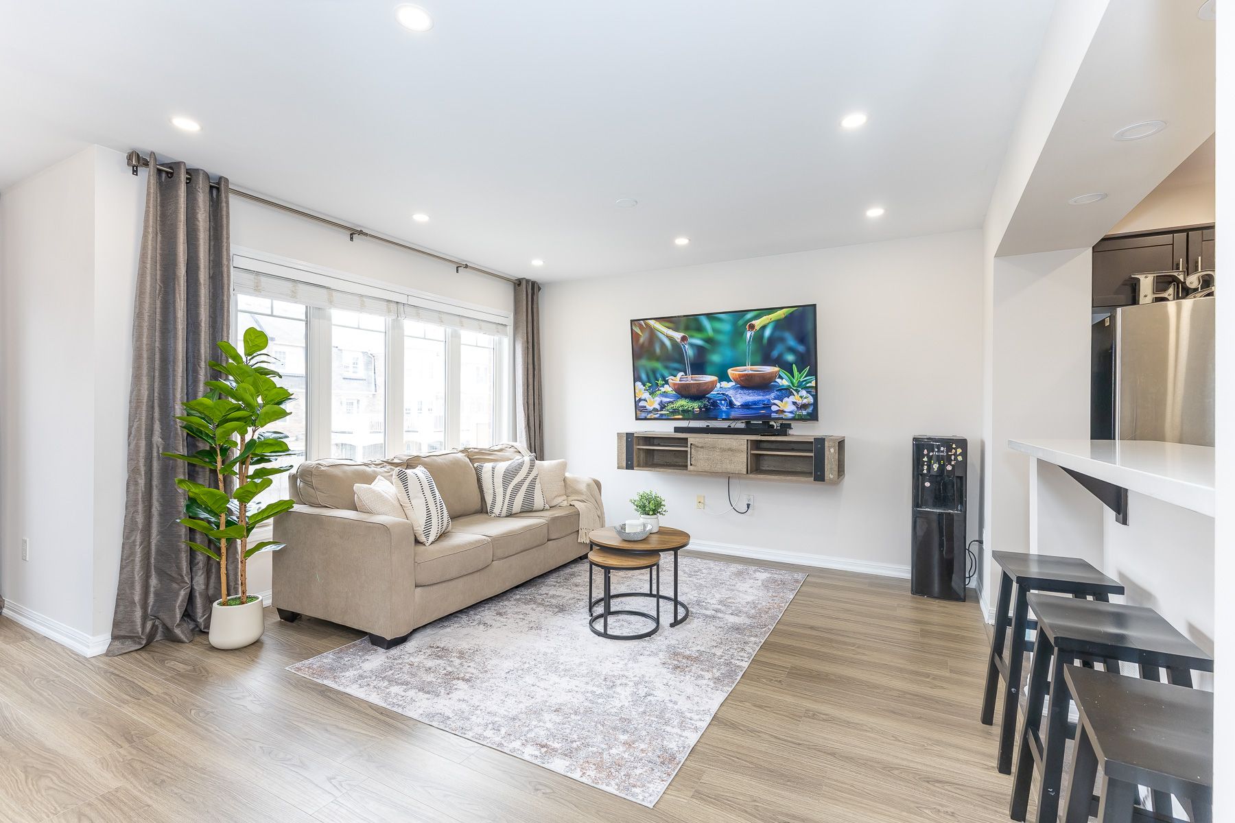 • Bright, open-concept layout with pot lights for a modern feel.