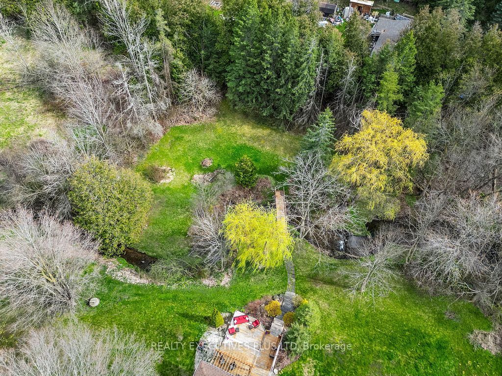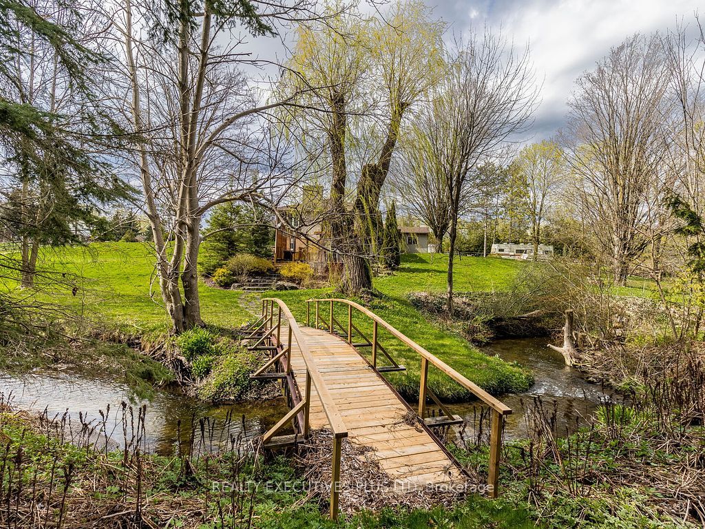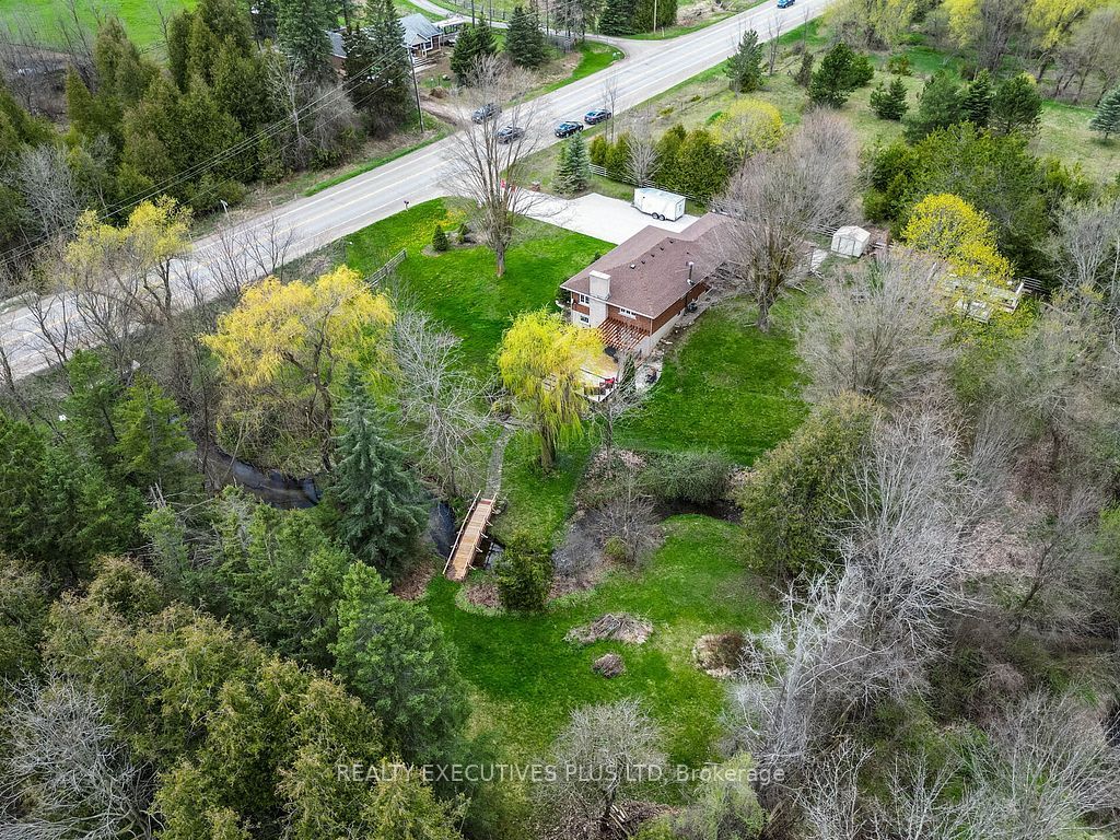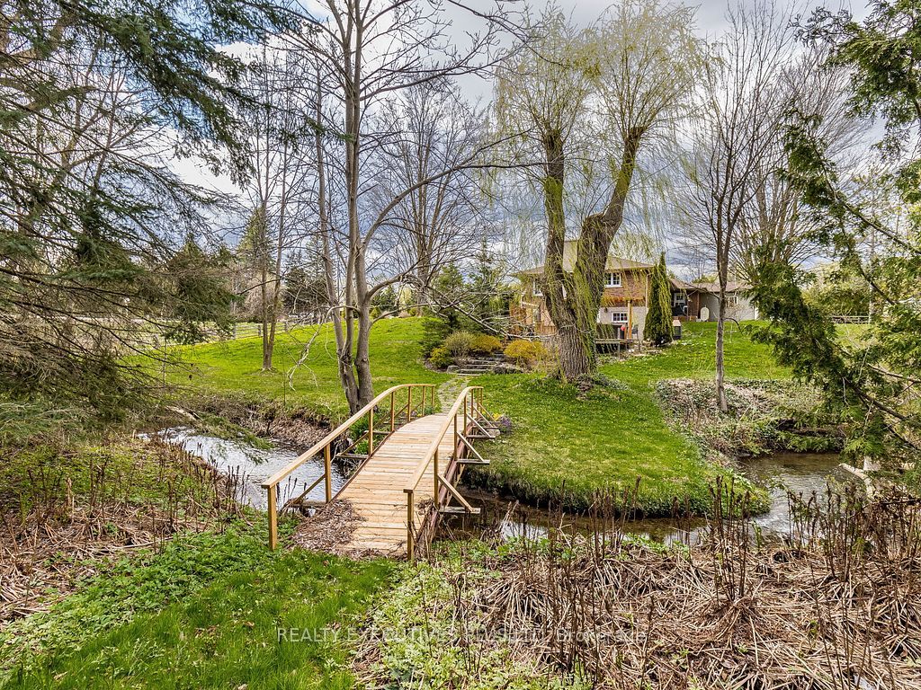 Location! Location! 1. 20 acres. Park like setting with stream running through south end. 2 mins north of 89. Idyllic lot with mature trees and perennial gardens. Country yet located minutes to shelburne or alliston. Ski hills north. Lower level offers approx 800 square feet of living area with walkout to cedar deck and pergola. Walk down the stairs and cross over the bridge to a separate private area that has lots of possibilitites. 2 staircases lead to the front and back area. Laundry room on main could be turned back into 3rd bedroom if needed. Single car garage (or workshop) located behind the attached garage. New bathroom in basement (2024) with heated floors. Updated windows, roofing approx 4 years. Heating for 2025-2026, $3,002. 07 includes services. This home has lots to offer and has been lovingly maintained. Make your appointment today!