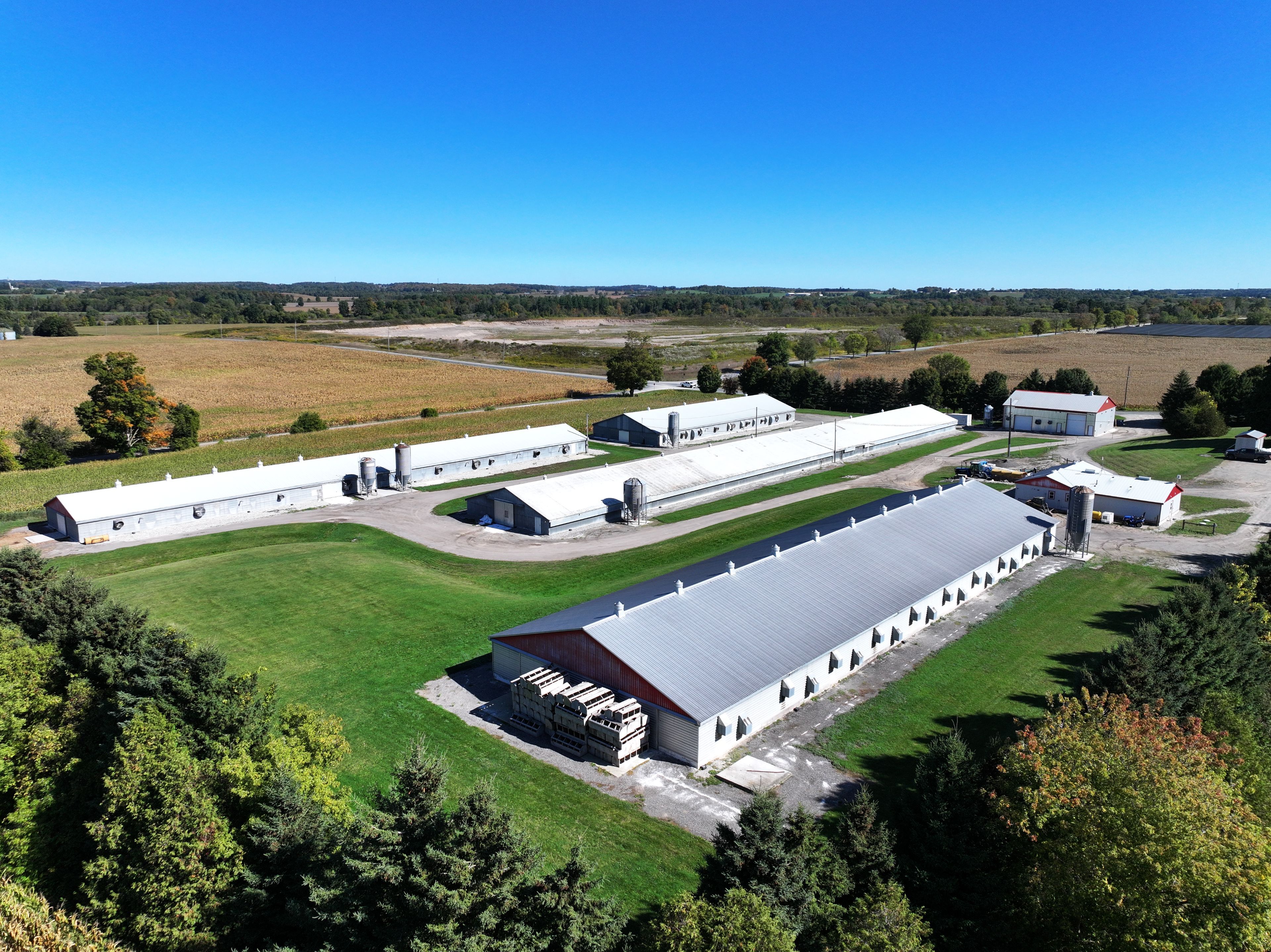 Situated in the heart of oxford county, endeavour farms is a versatile 25-acre agricultural property featuring 14 acres of workable land and over 55,000 sq. Ft. Of barn space, currently in active use for turkey production. The farm infrastructure is complemented by a 50 x 60 insulated and heated shop divided into two bays, providing flexible space for storage, equipment, or business operations. A duplexed farmhouse anchors the property, offering comfortable and adaptable living arrangements ideal for staff housing or an owners retreat. Surrounded by mature trees that enhance privacy and natural beauty, and located just 10 minutes from kitchener between drumbo and new dundee, this farm offers an excellent opportunity for agricultural production, expansion, or creative business ventures in a highly accessible location.