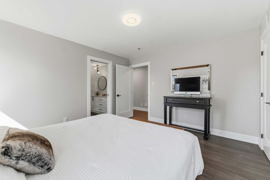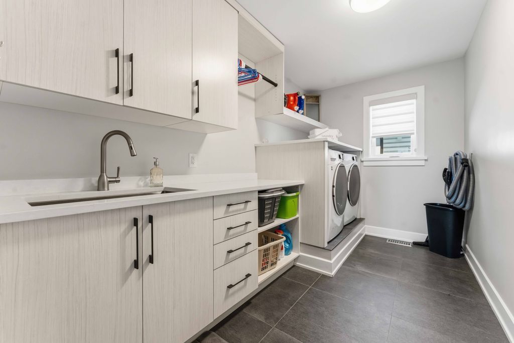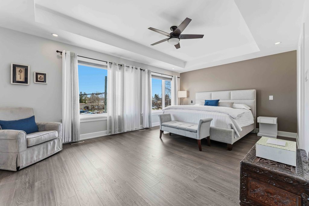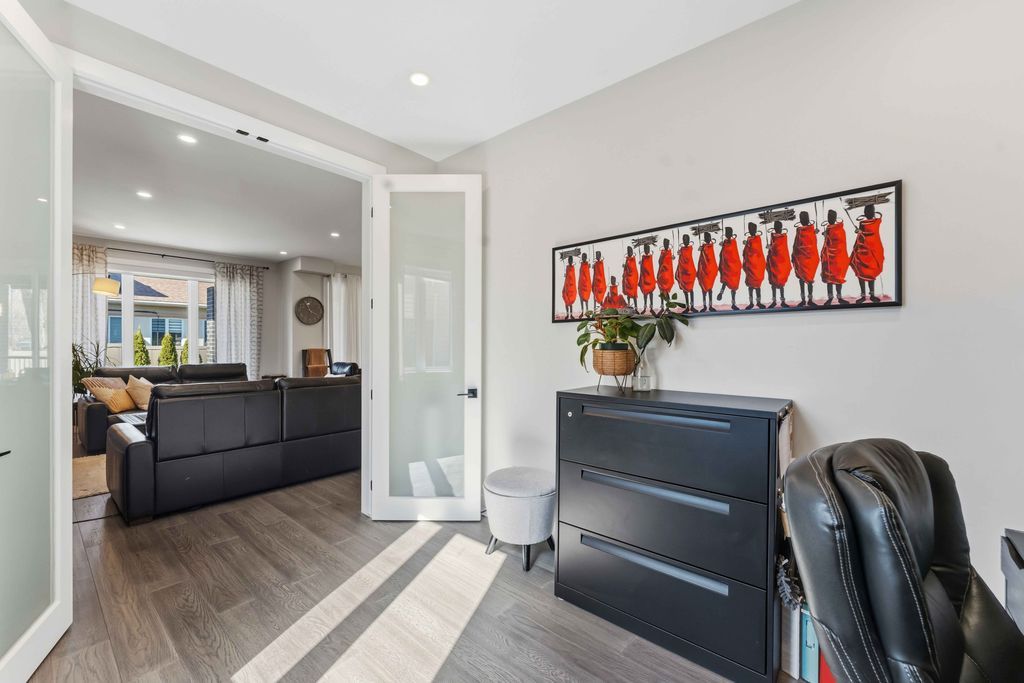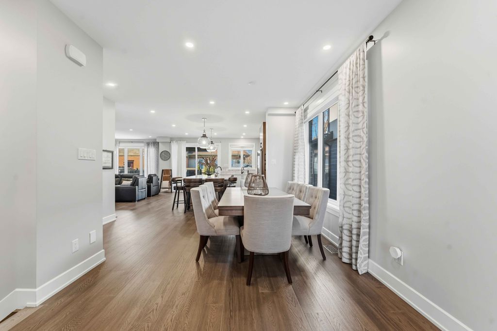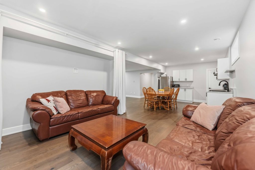 Welcome to an exceptional four-bedroom residence where refined design meets everyday comfort in one of ottawa's well-connected family communities, moments to parks, schools, shopping, transit, and an easy commute to downtown. A grand entryway opens to a striking floating staircase and unobstructed sightlines through the main level. Engineered hardwood spans the first and second floors, complementing the elegant open-concept layout. The dining area flows seamlessly into a designer kitchen and inviting living room, anchored by a gas fireplace and overlooking the private backyard. The chef's kitchen is beautifully appointed with premium stainless steel appliances, quartz countertops, a gas range, oversized island with built-in wine fridge, and abundant workspace for entertaining. French doors off the living area reveal a bright main-floor office with a large window-ideal for working from home. Upstairs, four generous bedrooms offer exceptional comfort. The luxurious primary suite features a truly dream-worthy custom dressing room with built-ins and centre island, along with a spa-inspired five-piece ensuite complete with dual vanities, roman tub, and glass shower. Two secondary bedrooms share a convenient jack-and-jill bath, while the fourth bedroom enjoys its own ensuite and walk-in closet. A beautifully designed laundry room with custom built-ins completes the upper level. The finished lower level offers outstanding flexibility with a private in-law suite featuring its own exterior entrance, full kitchen, living area, bedroom, bathroom, for multigenerational living, guests, or future income potential. Outside, enjoy a landscaped, fully fenced yard with pvc fencing, a spacious deck, built-in sun shades, and storage shed. An oversized single garage adds everyday convenience. Sophisticated, warm, and thoughtfully designed throughout, this is a rare opportunity to own a truly turnkey home in ottawa.