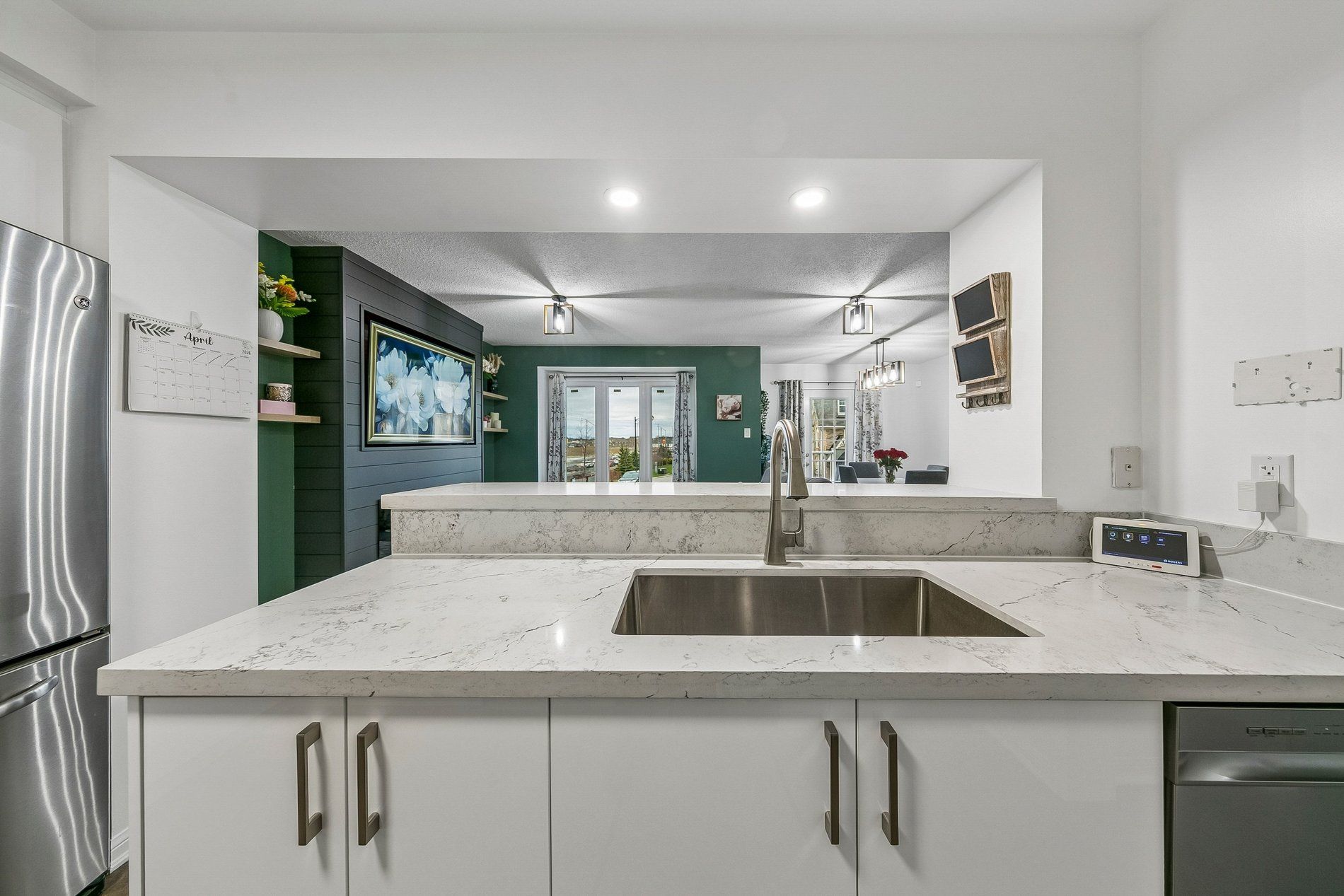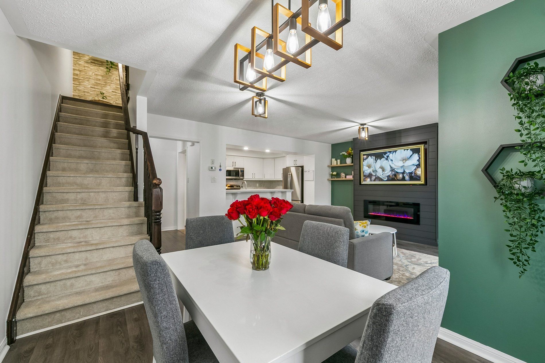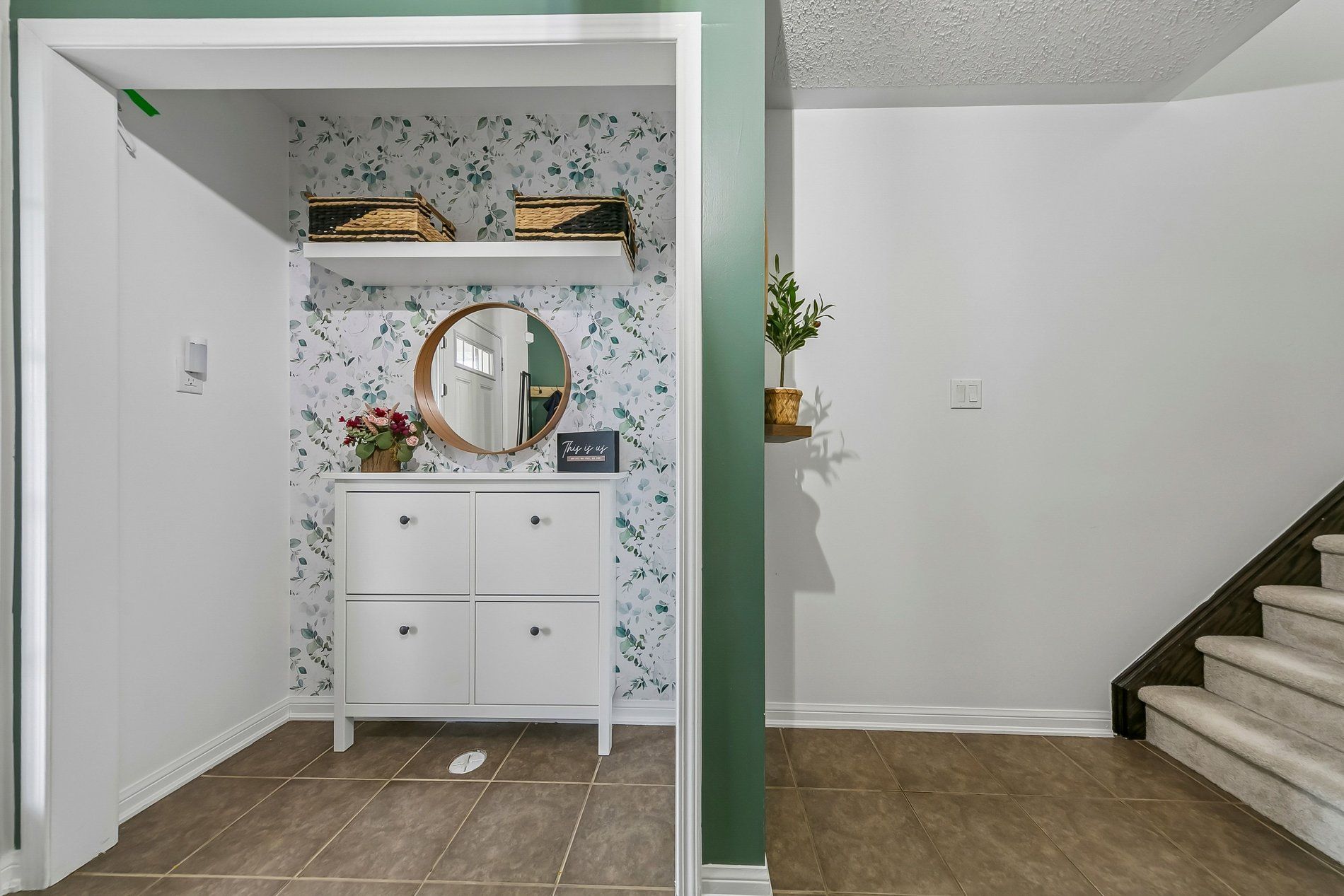 Welcome to your dream home in the heart of milton! This stunning, completely renovated freehold townhome is move-in ready & designed to impress. From the moment you step inside, you're greeted by a spacious foyer featuring stylish new wall décor & a large open closet, setting the tone for the modern finishes found throughout. A generously sized laundry room and direct garage access add everyday convenience. The updated kitchen is a true showstopper, featuring sleek white cabinetry, quartz countertops/backsplash, stainless steel appliances, a large pantry & a breakfast bar. The bright dining area flows seamlessly into the open-concept living room, complete with a custom entertainment wall & recessed fireplace for a warm, inviting feel. Enjoy indoor-outdoor living with your own private balcony. Thoughtfully upgraded throughout, all 2. 5 bathrooms include new vanities, modern mirrors, and updated lighting. Upstairs, the spacious primary bedroom offers a walk-in closet & a 4-piece ensuite. A second large,sun-filled bedroom provides flexibility for family, guests, or a home office. Ideally located near parks, schools, shopping, & essential amenities, this home perfectly blends comfort, style, and convenience.
