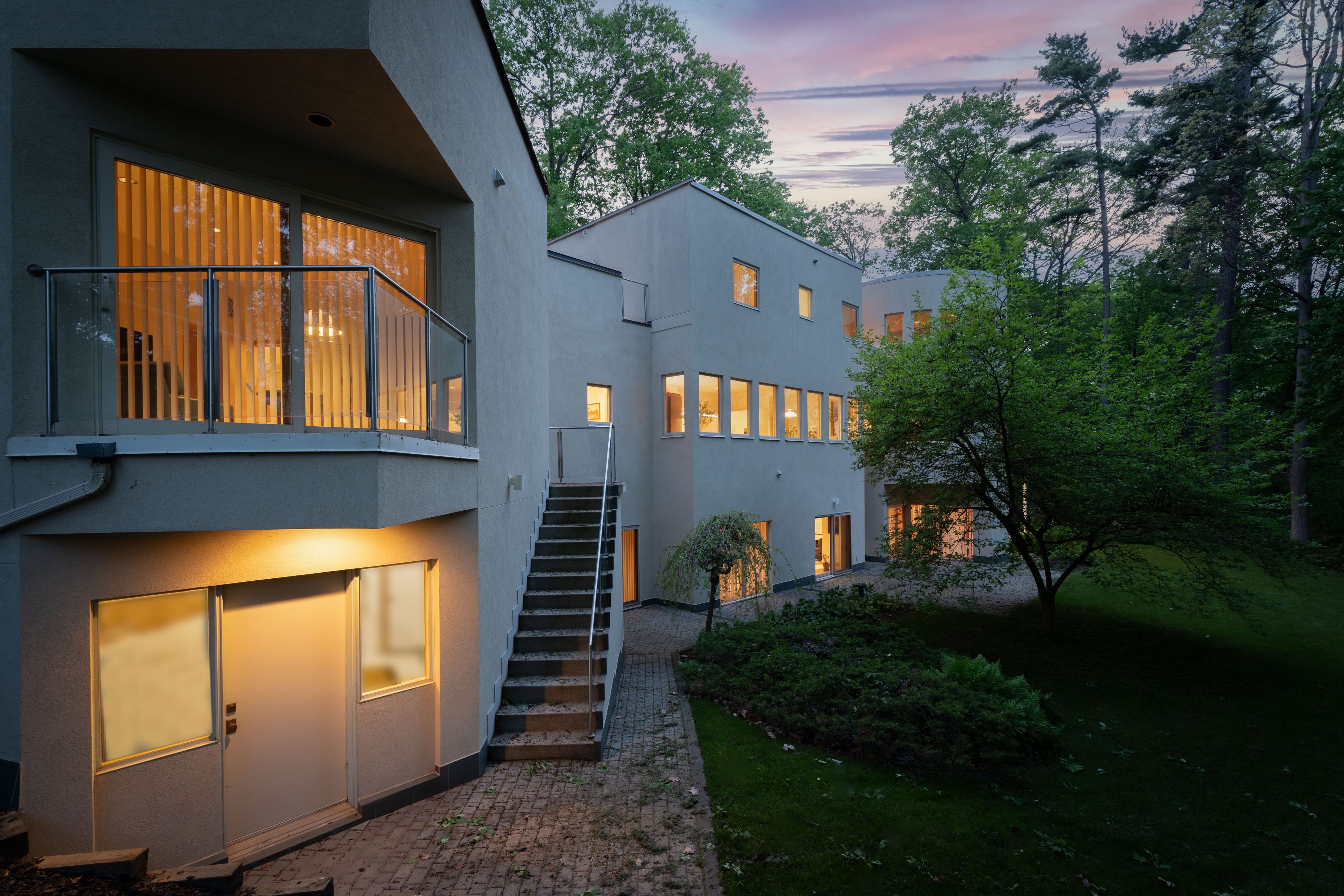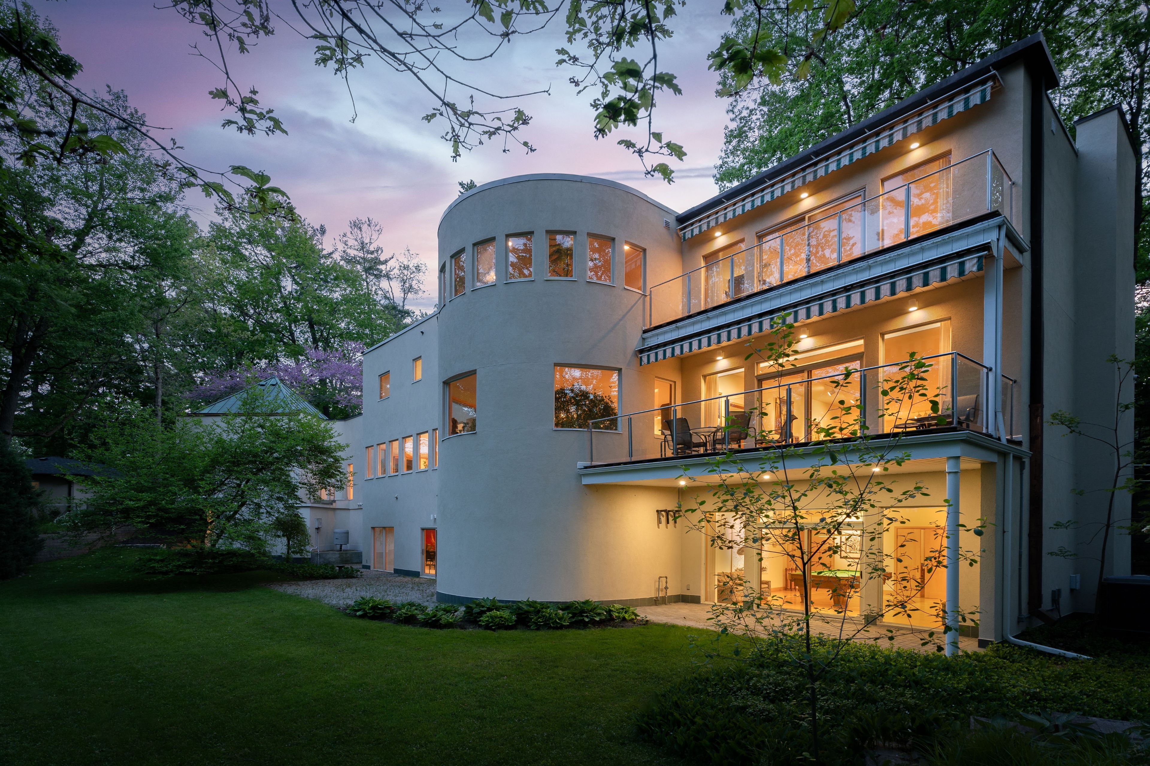 Bauhaus masterpiece in lorne park estates. This architectural gem, designed by joseph a. Medwecki, sits on a private ravine lot with stunning lake views and nearly 12,000sqft of living space. Offering unparalleled privacy and natural light, this 7-bedroom home spans three levels, ideal for multi-generational living or staff accommodation. Features include 10-ft ceilings, maple hardwood floors, pot lights, and multiple marble-surrounded fireplaces, blending sophistication and comfort throughout. The main floor is designed for entertaining, offering a library, a grand formal living room that flows seamlessly through double doors to the expansive formal dining room- an elegant setting for hosting guests. The chef-inspired kitchen boasts high-end appliances& blue quartz countertops. For added convenience, a main floor bdrm w an ensuite creates an ideal space for a nanny or guests. The upper level reveals a luxurious primary retreat complete w a spa-like 5pc ensuite and a private balcony offering mesmerizing lake views. A 1,529-square-foot rooftop terrace your personal oasis with panoramic views of the lake, an idyllic place to relax and unwind. The lower level is a haven of relaxation and entertainment, ft five walk-outs to the rear gardens, flooding the space with natural light. It includes a private spa room with a hot tub and sauna, a secondary primary suite with a 4-piece ensuite, a gym, games room, and a 1,200-bottle wine cellar. A 3-bay garage accommodates 5 cars, with space for 10 more in the driveway and additional parking near the street. This home is not just a residence it's a statement, a one-of-a-kind masterpiece that beckons those with the most refined tastes. Experience the extraordinary and make it yours today!