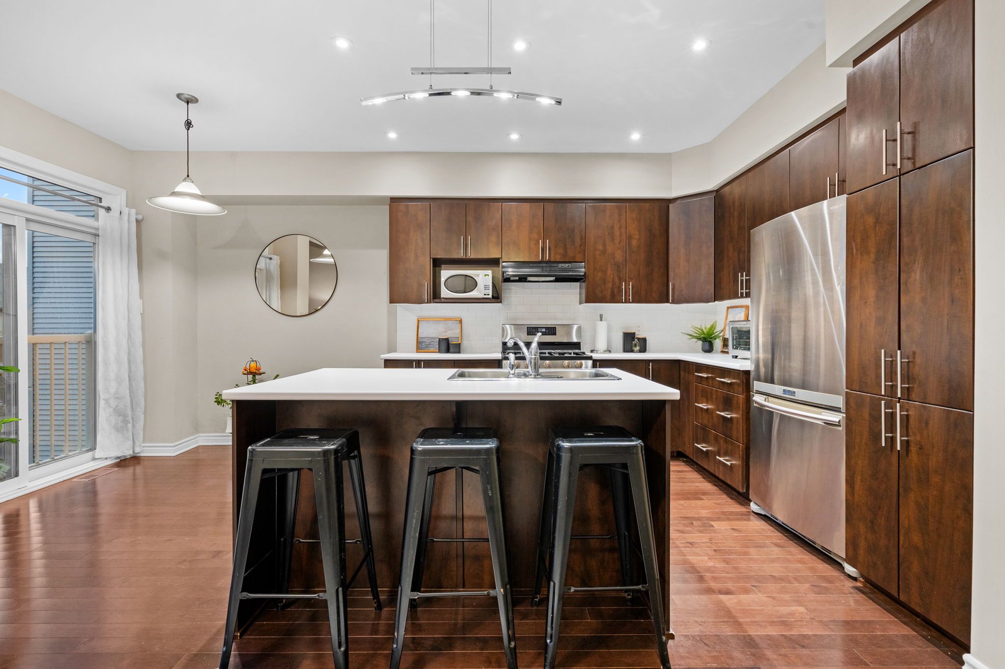 Welcome to 938 fletcher - where comfort meets style in this beautifully maintained richcraft addison end unit with a rare walkout basement! From the moment you step inside, you're greeted with soaring 20-foot ceilings, rich hardwood floors, and an open, airy layout that truly stands out. The kitchen is designed to impress with upgraded cabinetry, stainless steel appliances, and plenty of workspace. The walkout lower level offers incredible flexibility - perfect as a family room, home office, gym, or entertainment zone. Upstairs, the bright and spacious primary bedroom features a walk-in closet and private en-suite, complemented by two additional well-sized bedrooms and a stylish 3-piece family bath. Located in the coveted community of kanata lakes, you'll enjoy top-rated schools, lush green spaces, golf, and every amenity just minutes away. This is the perfect blend of convenience, lifestyle, and value - all wrapped into one stunning home.