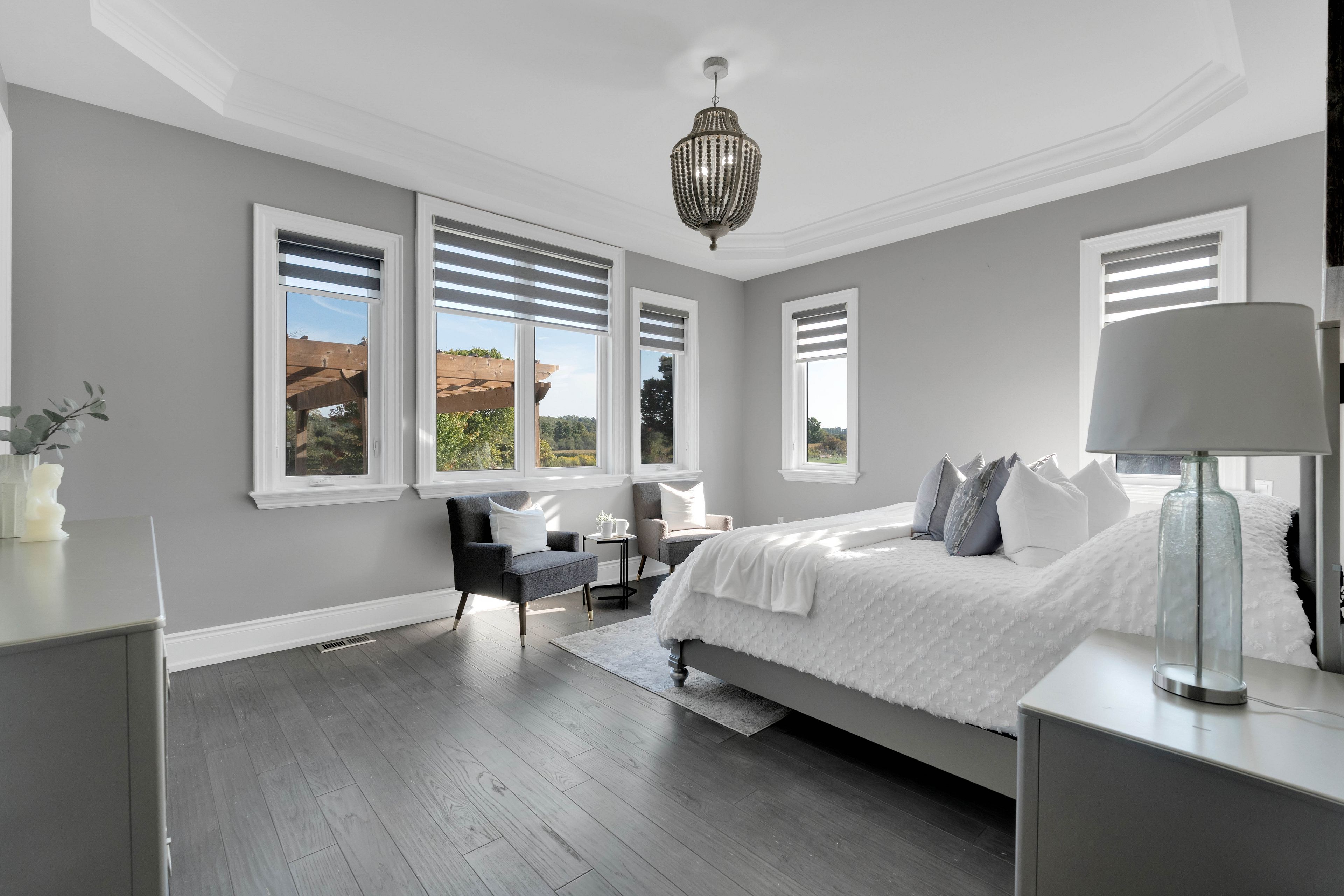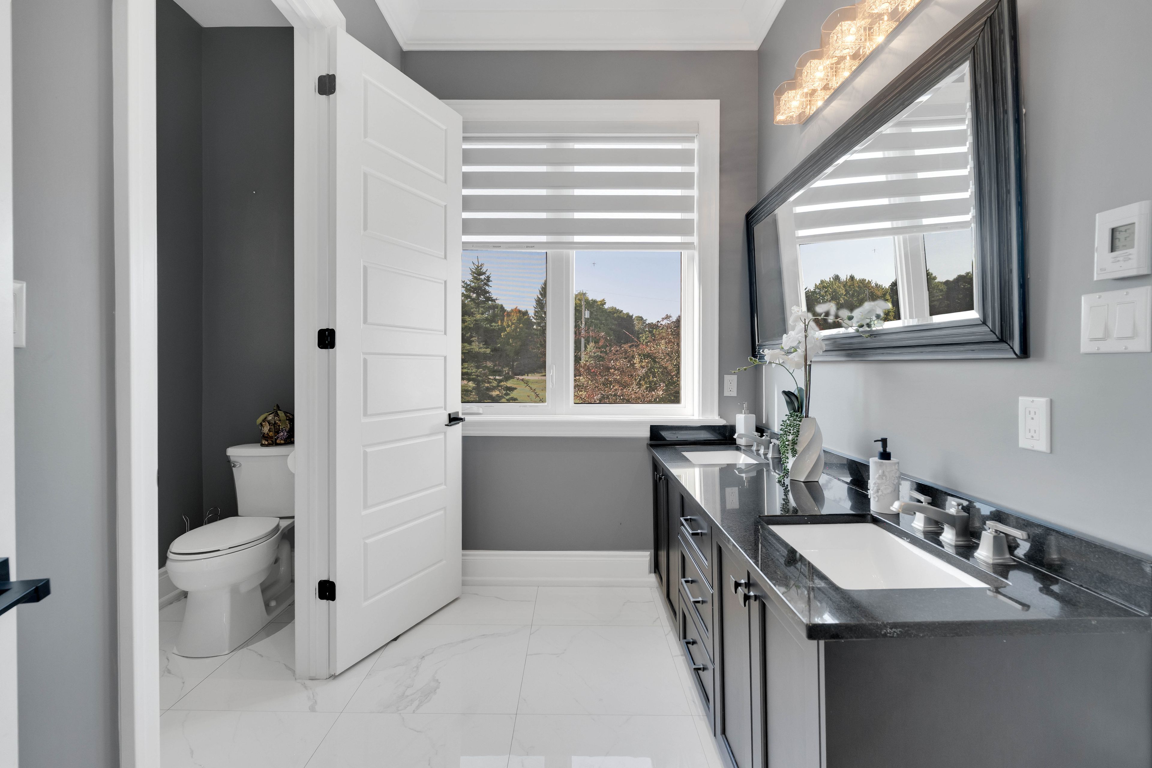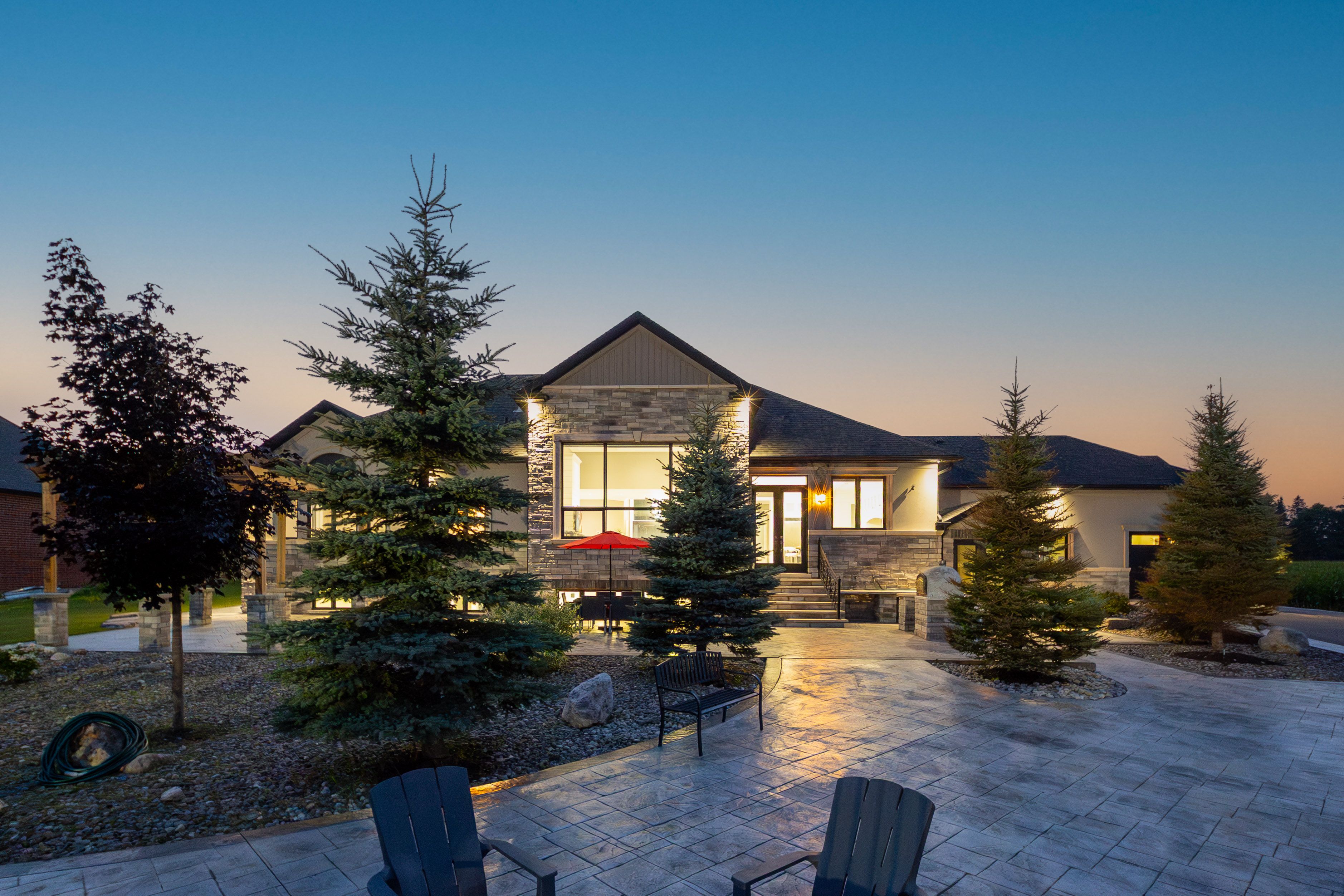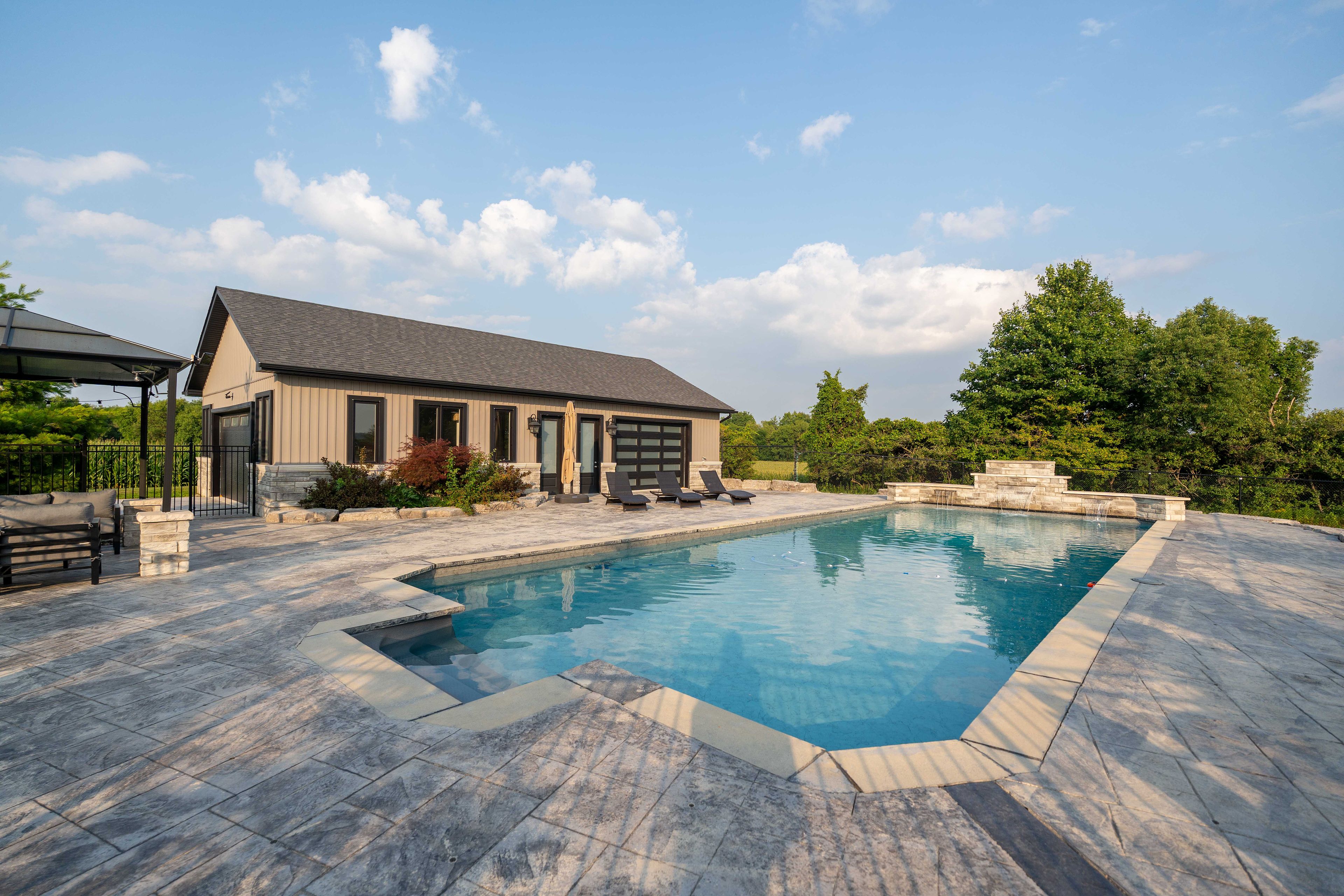 Welcome to 9383 wellington 124 road in erin, an absolutely stunning custom-built bungalow offering over 5,700 square feet of finished living space. Set on 1. 31 acres of beautifully landscaped grounds, this home is designed with exceptional craftsmanship and thoughtful details throughout. The main level spans 2,846 square feet and features an open-concept layout with soaring 10- to 15-foot ceilings. A striking 9-by-15-foot picture window floods the family room with natural light, while the gas fireplace adds warmth and elegance. The gourmet kitchen is a showpiece, complete with a centre island, leathered granite counters, stainless steel appliances, and upper and lower accent lighting. The primary suite is a true retreat with a lavish spa-like ensuite, while the additional bedrooms offer spacious layouts, walk-in closets, and a jack-and-jill bath. The fully finished lower level adds another 2,876 square feet of living space, featuring a massive recreation room, guest suite, and full bath. This versatile space is perfect for entertaining, relaxing, or hosting extended family and friends. Outdoors, the property continues to impress with a heated saltwater pool, cascading waterfalls, a sports pad, and a cabana that can also serve as a separate garage with space for up to four additional vehicles. Along with the oversized three-car garage with a drive-thru bay and the long private driveway, this home offers exceptional parking and functionality. This is more than a home its a lifestyle. Combining luxury, recreation, and comfort, 9383 wellington 124 road delivers the best of both home and cottage living in one remarkable property.