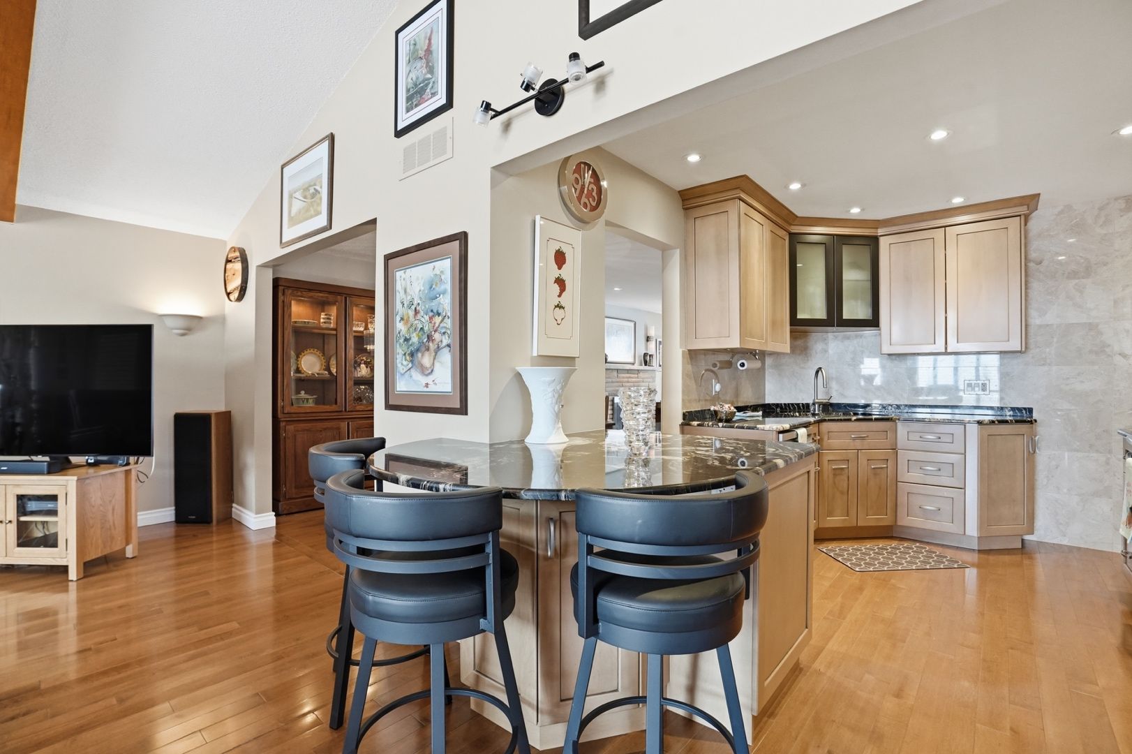 • Spacious family room with vaulted ceilings and beautiful property views.