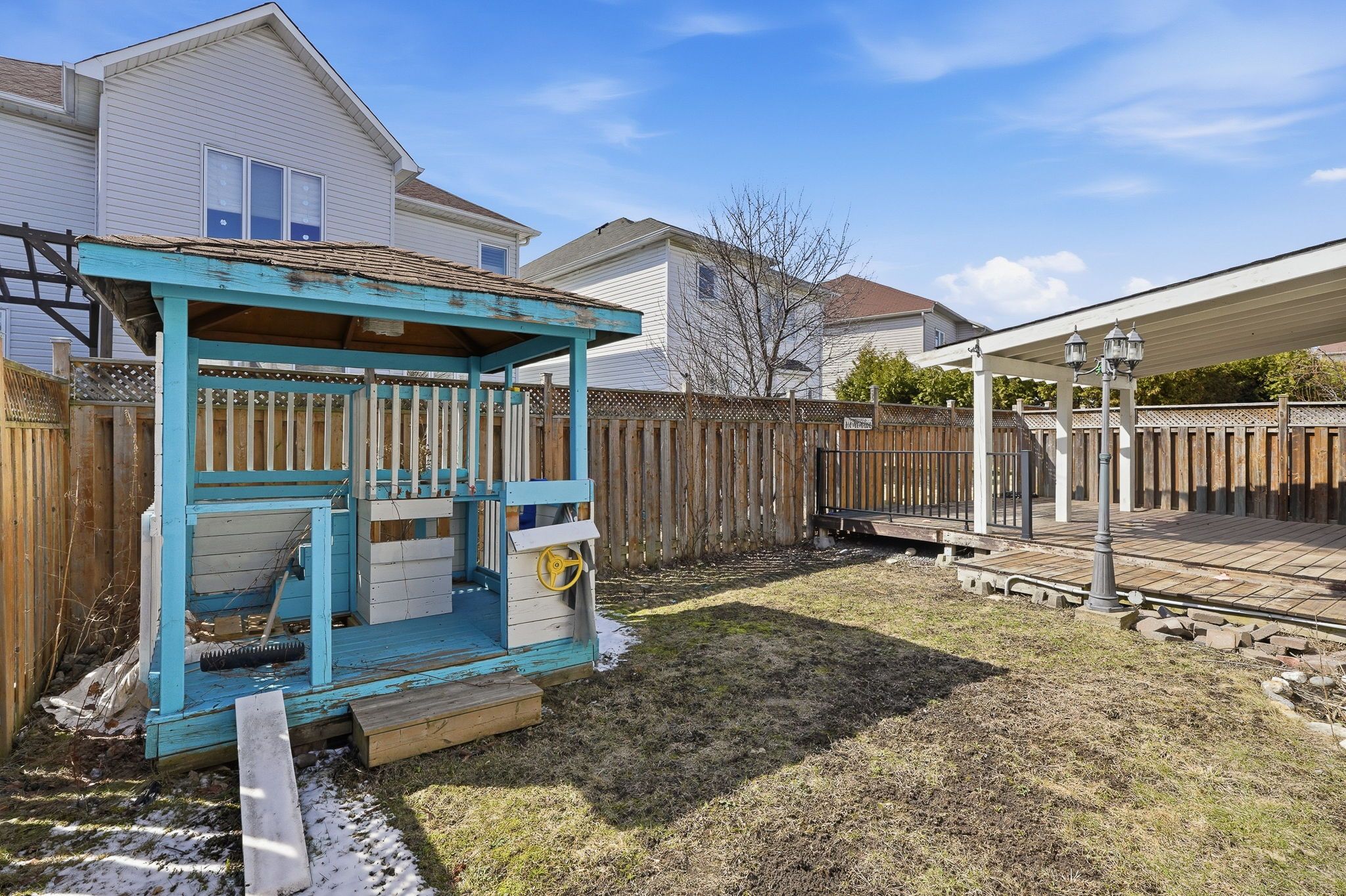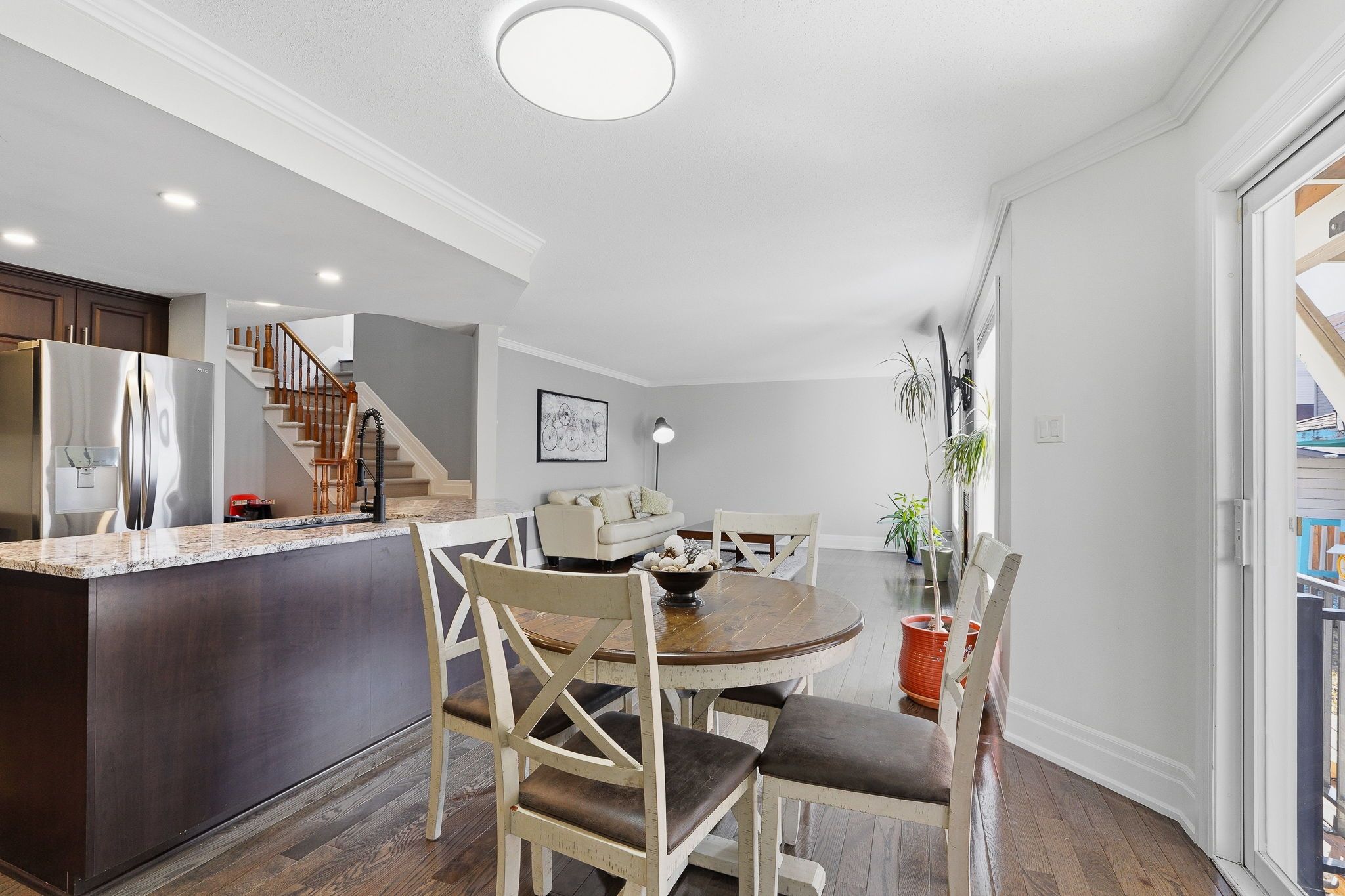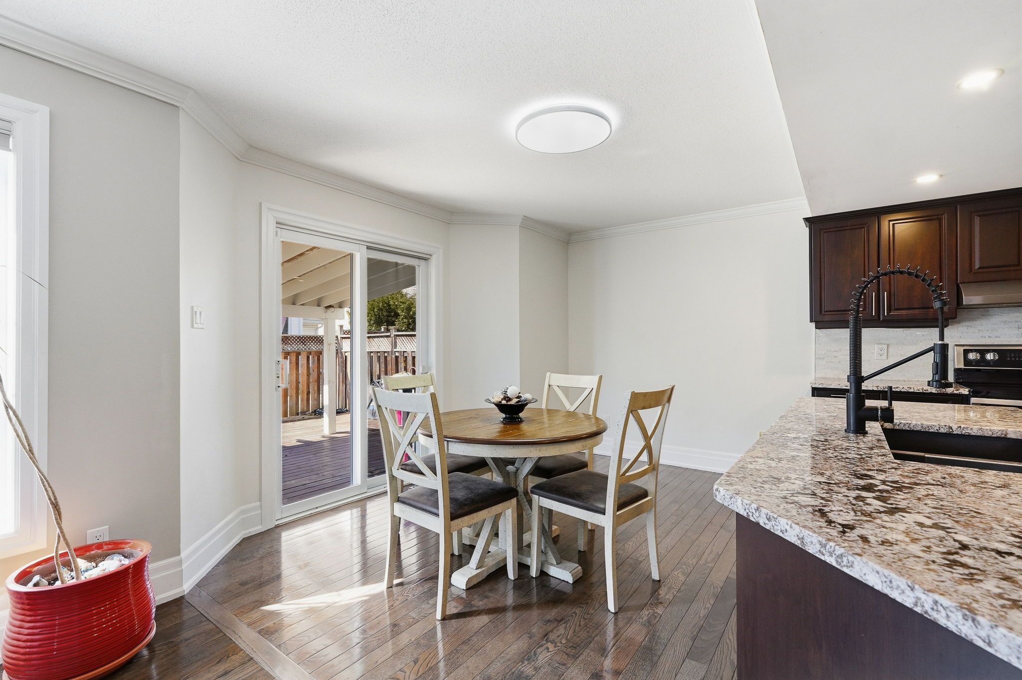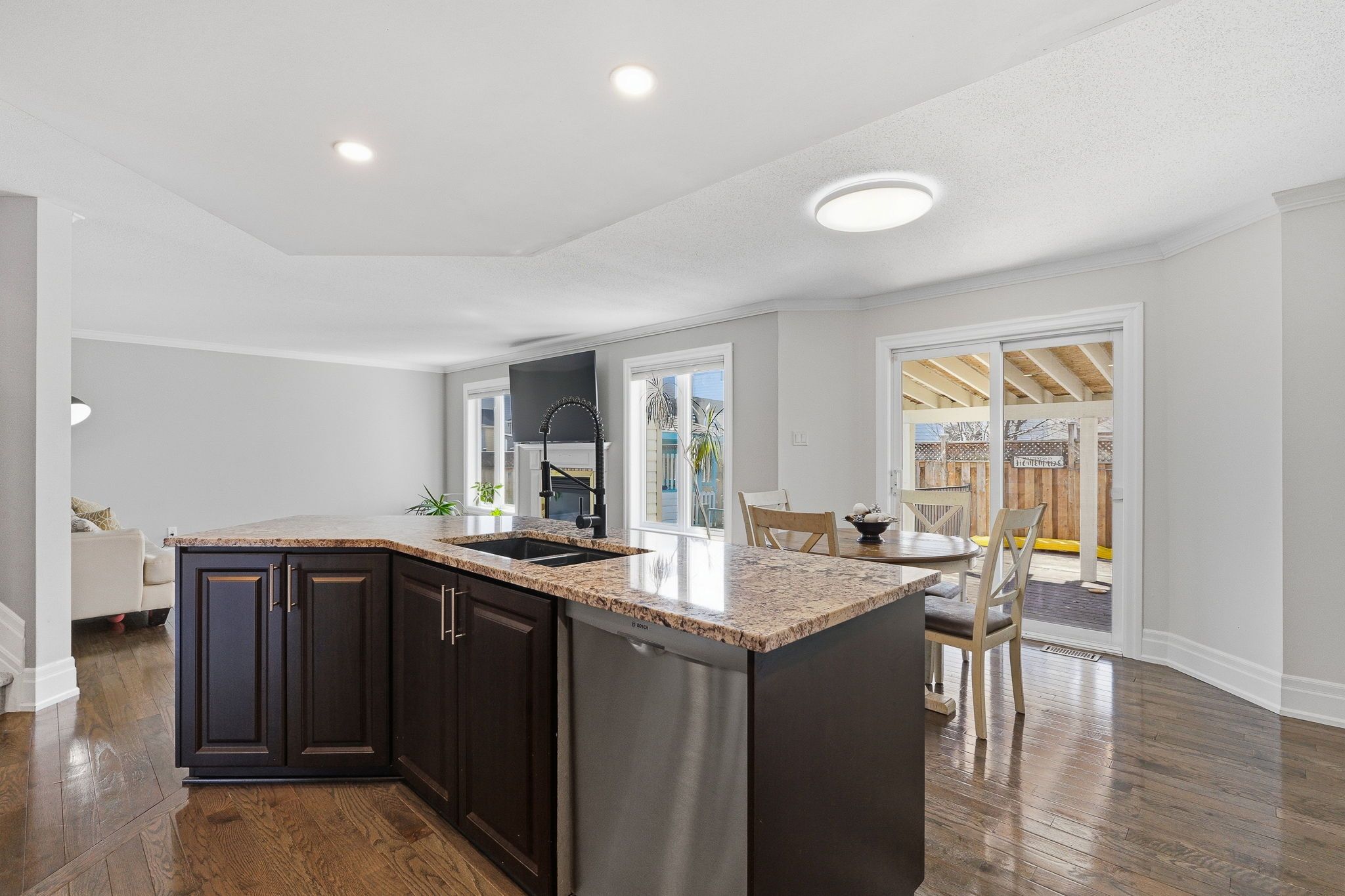 • Inviting family room with gas fireplace and access to fenced backyard.
