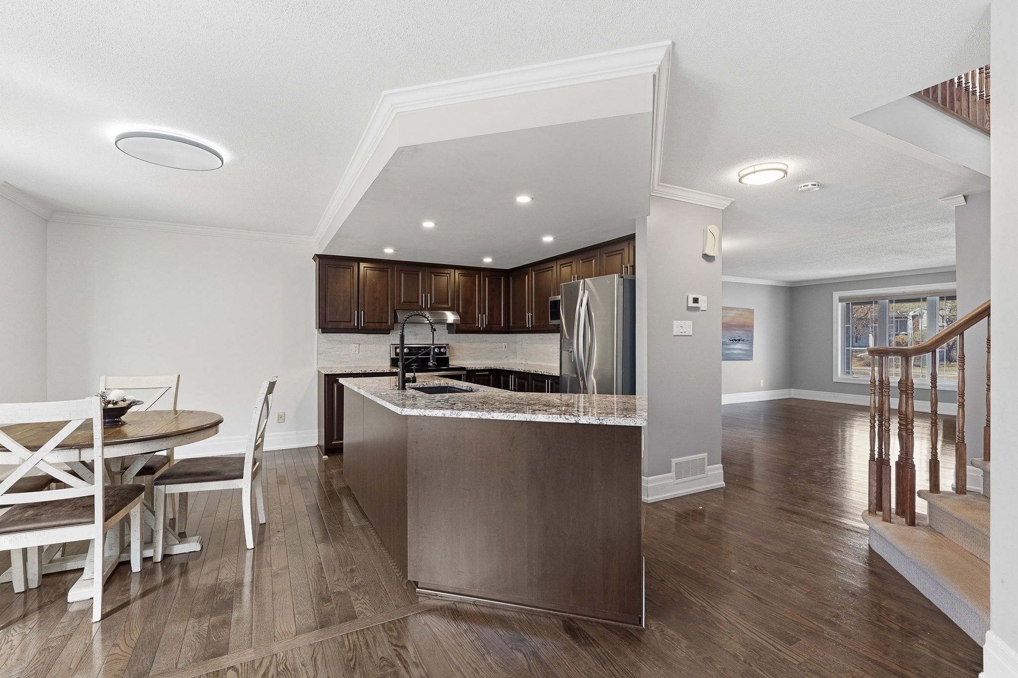 Welcome to this beautifully maintained and spacious home, perfectly designed for modern family living and entertaining. The main level showcases elegant hardwood flooring throughout, featuring a bright formal living and dining room-ideal for hosting gatherings. The chef-inspired eat-in kitchen is a true highlight, complete with granite countertops, a stylish backsplash, and stainless steel appliances. Just off the kitchen, the inviting family room with a cozy gas fireplace offers the perfect space to relax, with direct access to the fully fenced backyard-ready for summer entertaining and outdoor enjoyment. Upstairs, you'll find hardwood flooring throughout along with a versatile bonus family room-perfect as a media space, home office, or playroom. The spacious primary suite features a walk-in closet and a private 4-piece ensuite, while two additional well-sized bedrooms and a full 4-piece bathroom complete the upper level. The fully finished basement adds even more living space with a large recreation room, a convenient 2-piece bathroom, and ample storage-ideal for growing families or hosting guests. With a double car garage and a fully fenced yard, this home offers both comfort and functionality in a desirable location close to all amenities.