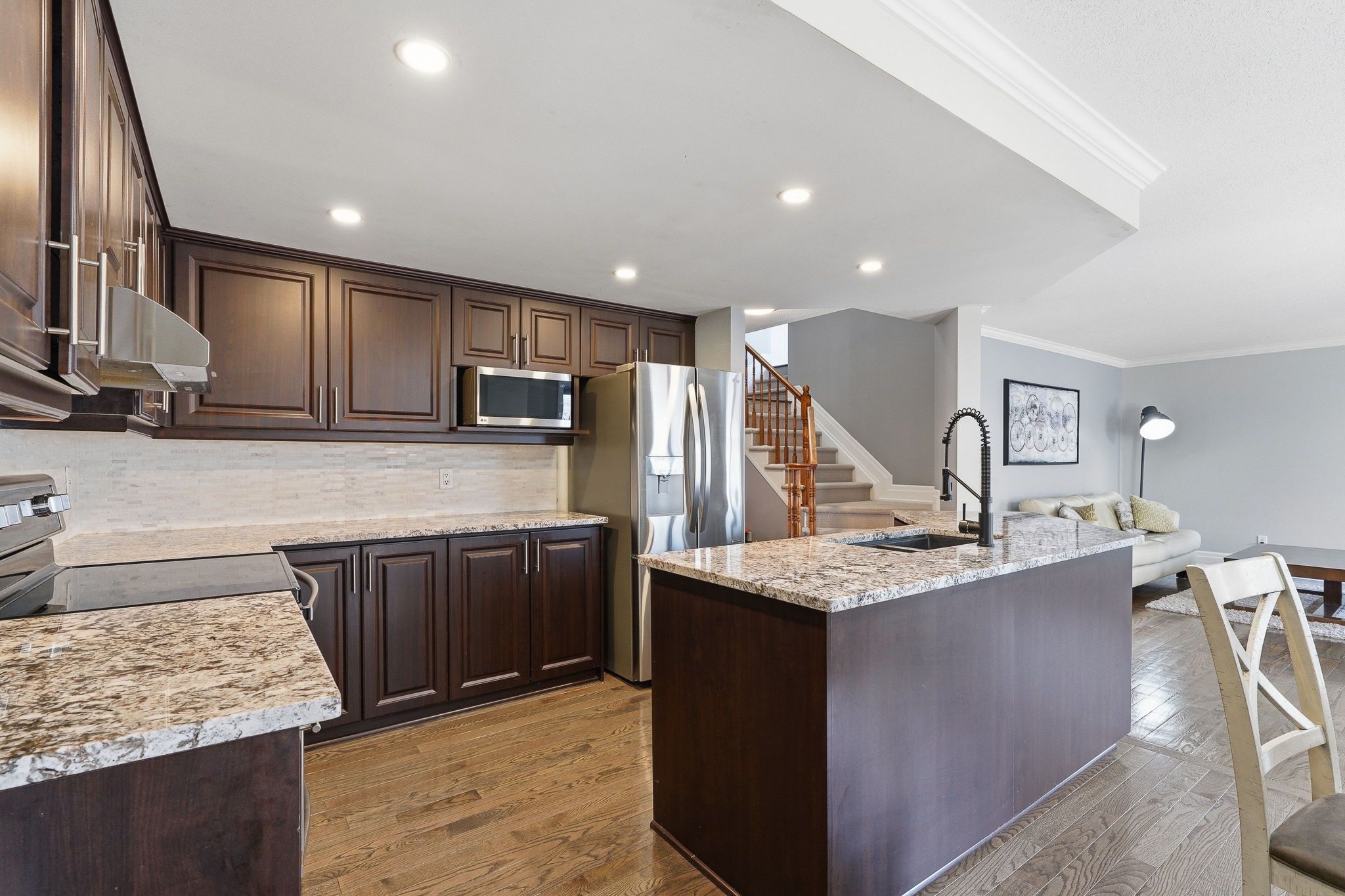 • Chef-inspired kitchen with granite countertops and stainless steel appliances.