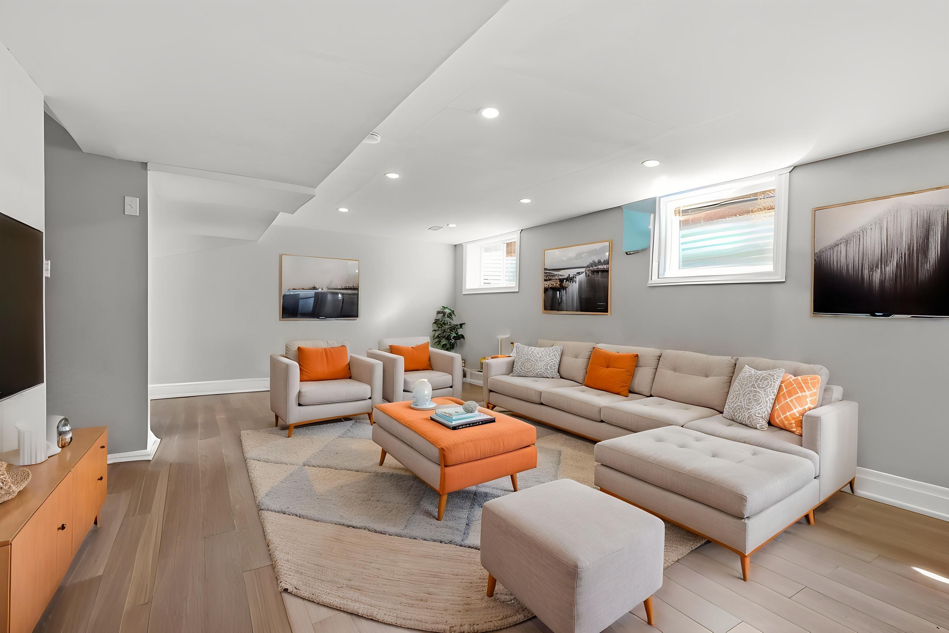 • Finished basement with recreation room and double car garage for convenience.