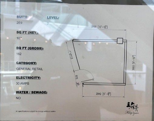 Prime location! Renovated unit in shopping mall "king square". Located at the second floor, next tothe escalator. A lot of residential & office around, close to hwy 404 & 407. Future developmentincludes multiple condo apartments being built right beside the mall. Major potential for growth. Movein your fixtures & merchandize and start open for business. Could combined lease with 2e8.