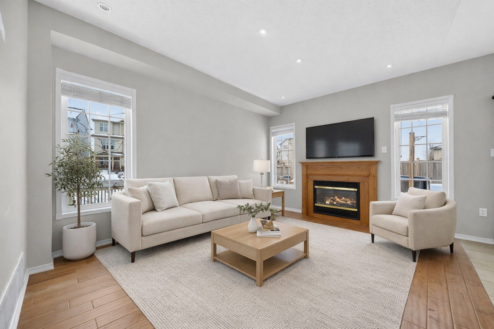 • Open-concept main floor with inviting family room and gas fireplace.