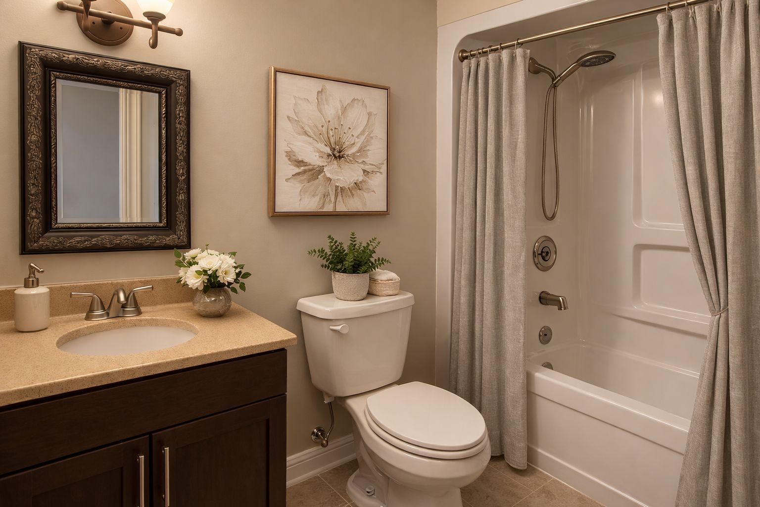 • Updated kitchen featuring quartz countertops and ample cabinetry for entertaining.