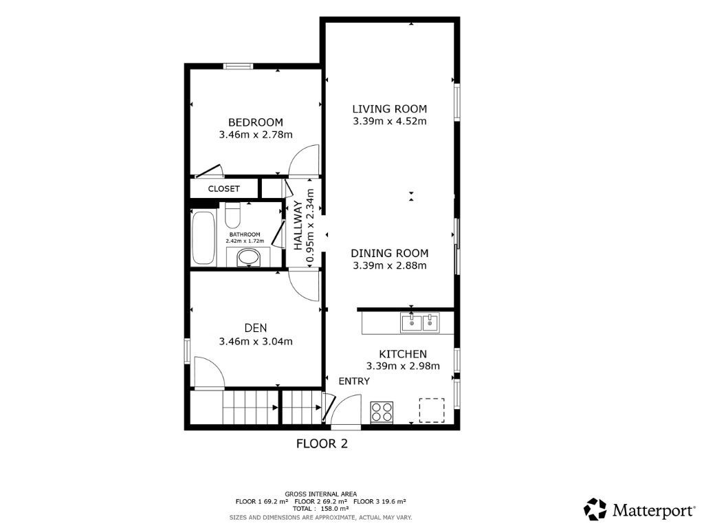 • Bright and open main floor with two comfortable bedrooms and a dining area.