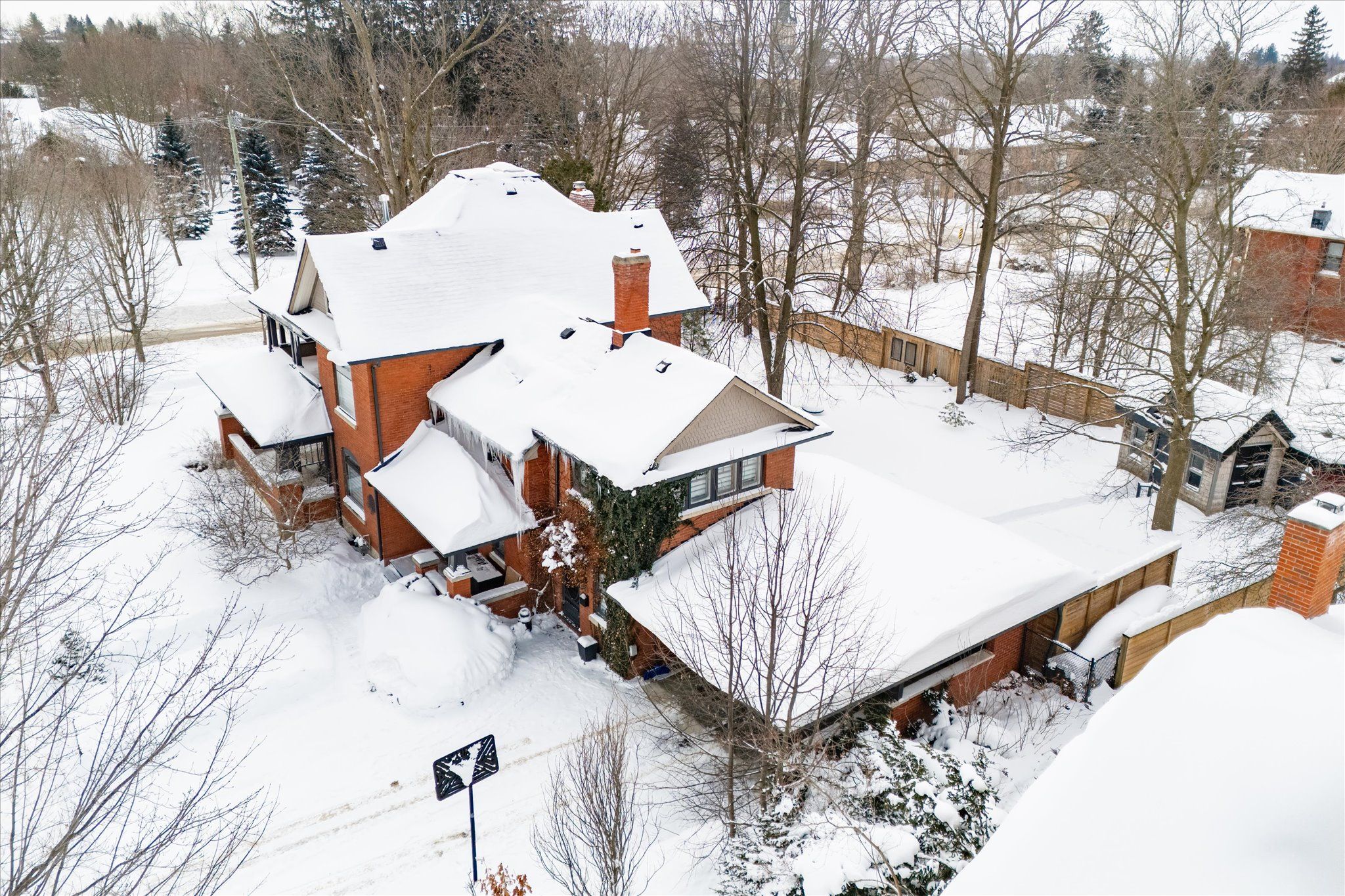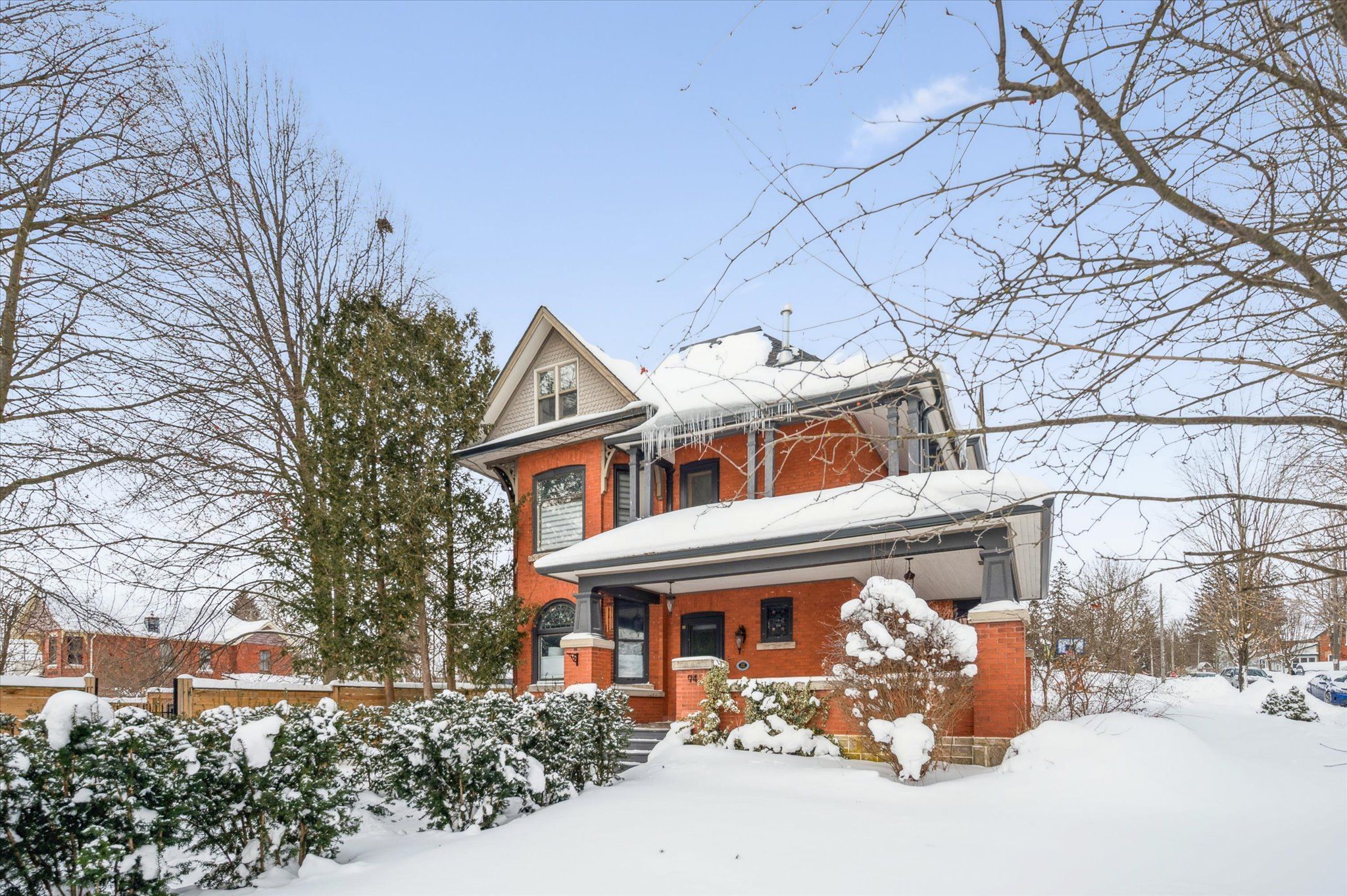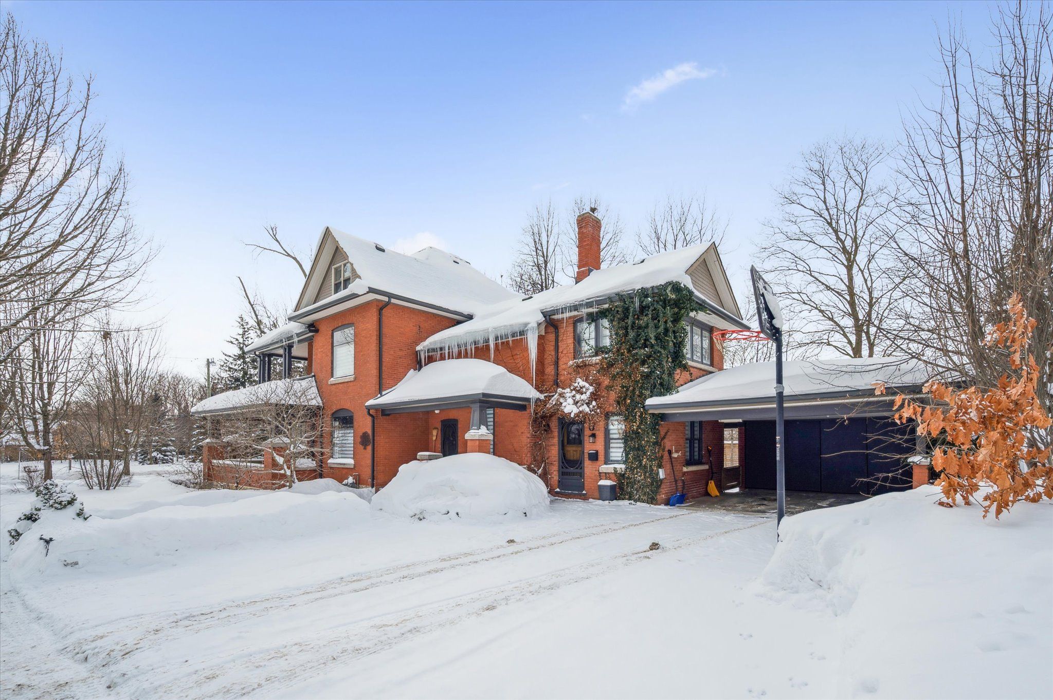 Escape to elora and discover one of the village's most iconic homes. Built by the town's original mill owner around 1900, this nearly 3,500 sq ft heritage home blends timeless character with modern comfort - just steps from downtown. With soaring ceilings, oversized principal rooms, and large windows, this home is flooded with natural light and an incredible sense of space. Solid hardwood floors, stained glass accents, and beautiful pocket doors highlight the craftsmanship of a bygone era, thoughtfully preserved throughout. The renovated kitchen features stone counters, premium finishes, and a generous island that flows effortlessly into both the formal and informal living areas. Upstairs, the timeless and luxurious primary suite offers a true retreat, complete with a stunning ensuite bathroom and a massive walk-in closet/dressing room. Two additional generous bedrooms offer comfort and privacy and as an added bonus - a third story loft adds even more space for guests, work, or play. Outside, imagine yourself enjoying a cup of tea on the wraparound front porch, perfect for peaceful mornings and neighbourly chats. The pool-sized backyard is beautifully landscaped with mature trees (one with a swing!), hardscaping, firepit, two decks, and a hot tub for year-round enjoyment. Deep historical roots, unbeatable curb appeal, and a walkable location just beyond the tourist path, this is a rare opportunity to own a piece of elora's living history.