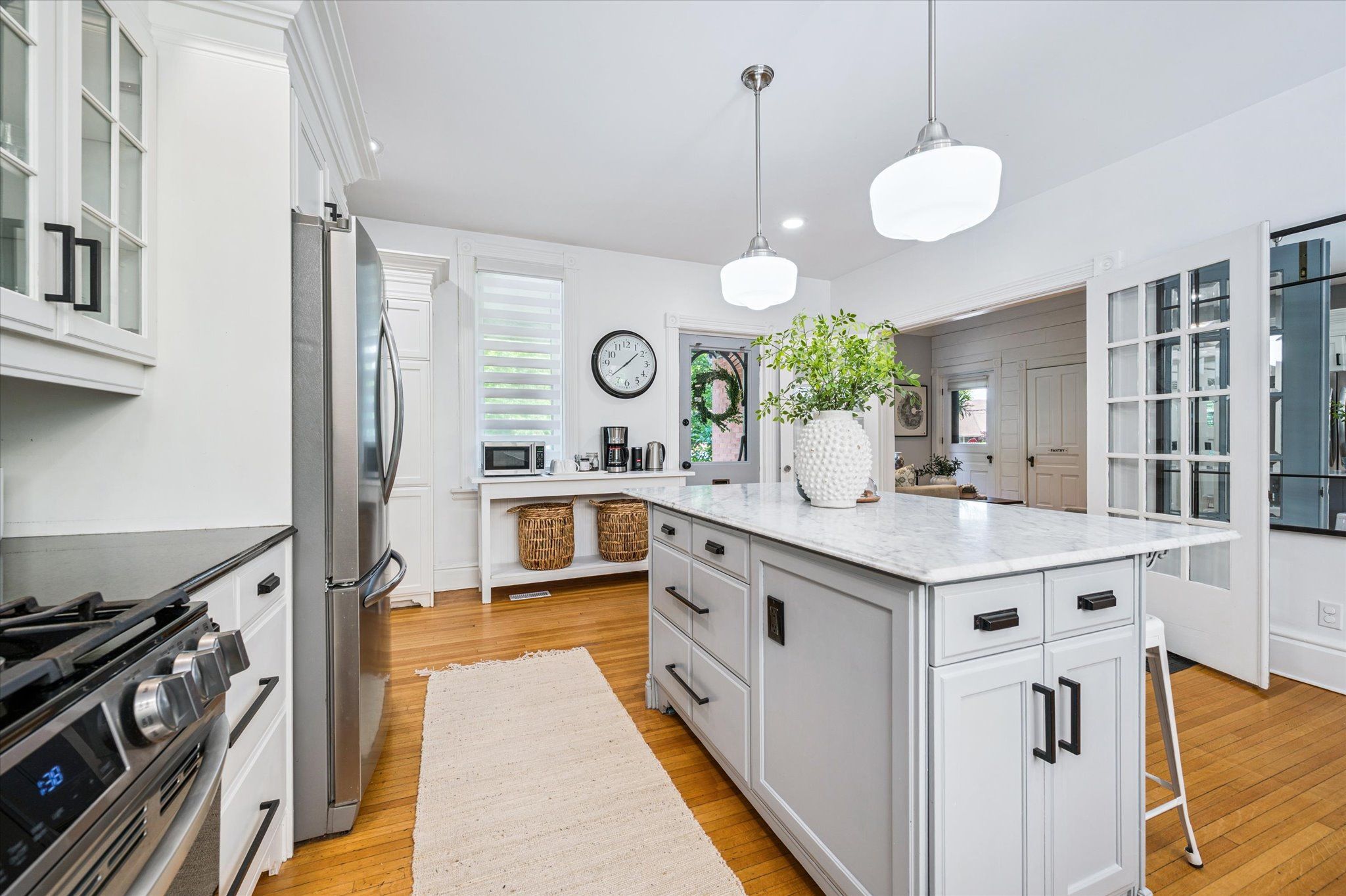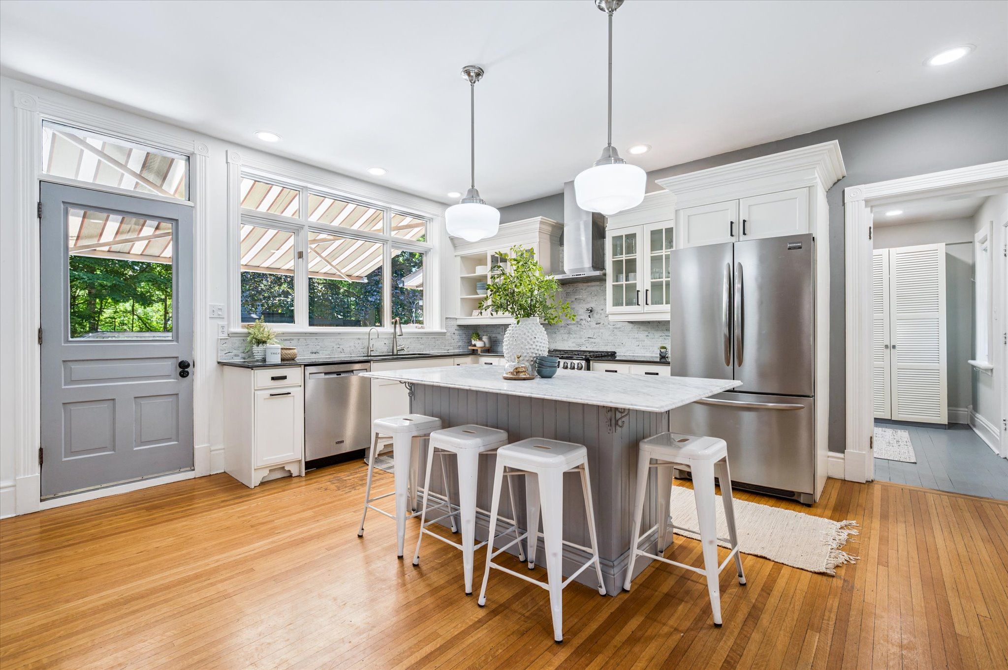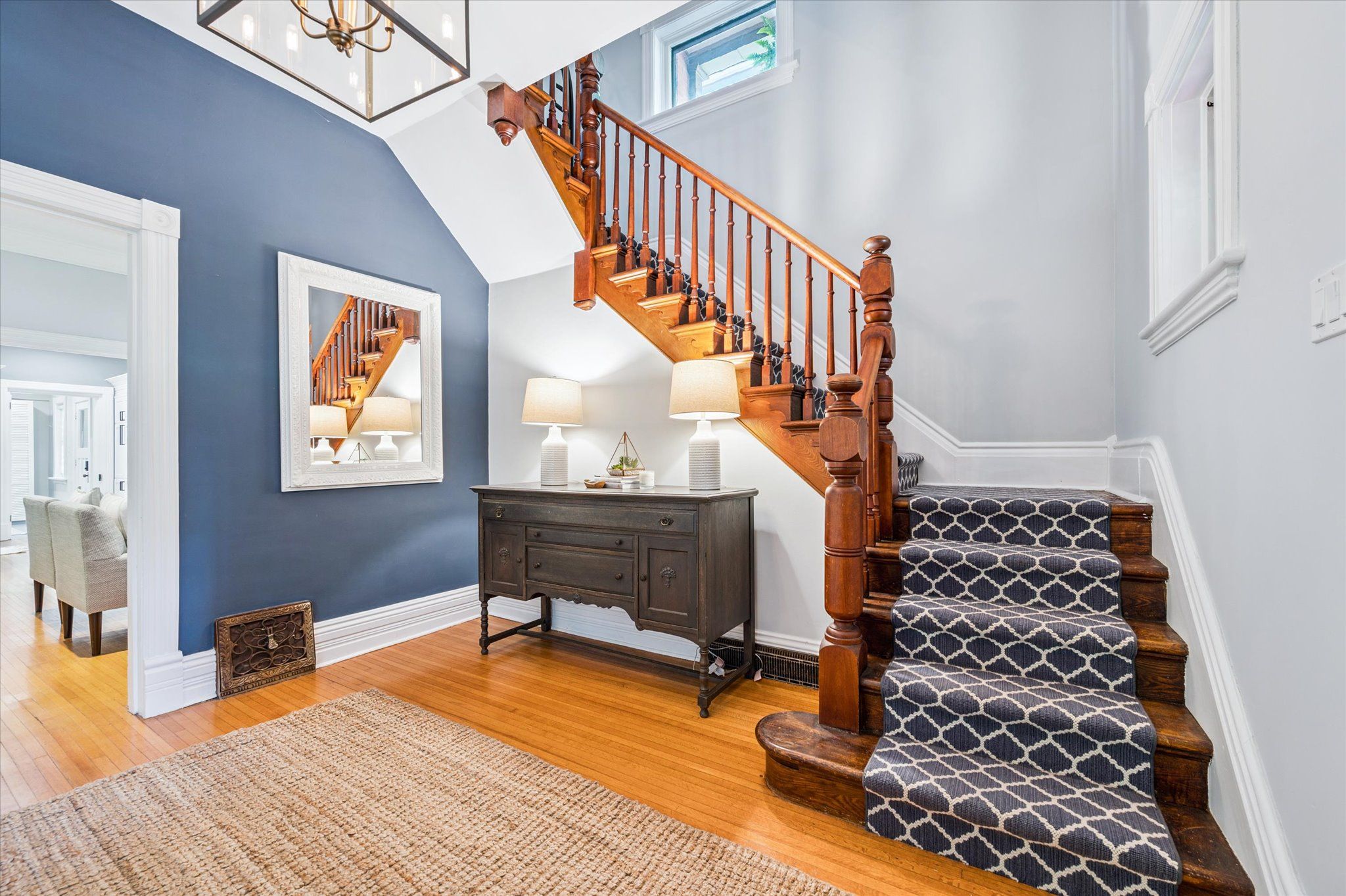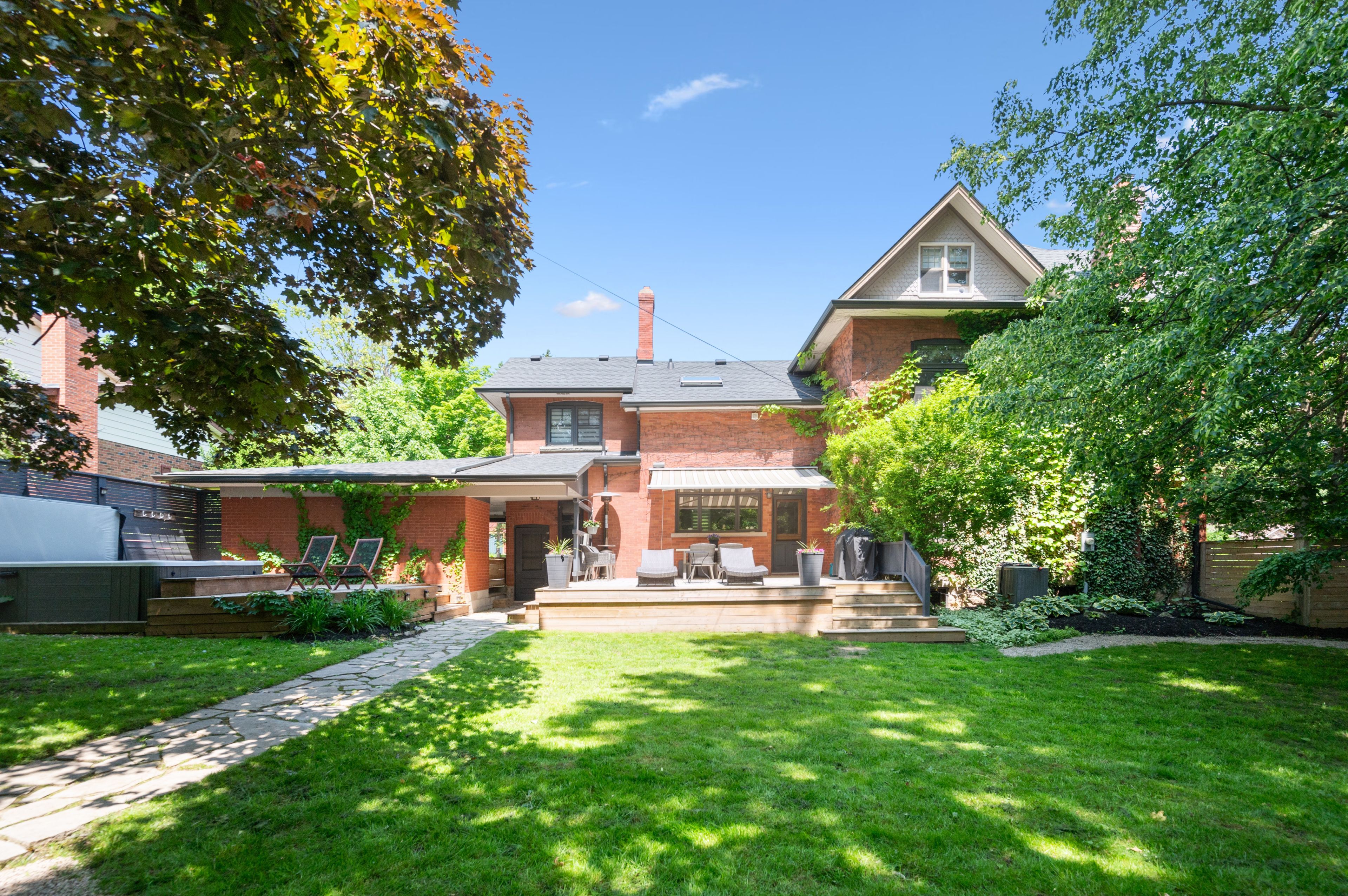 Escape to elora and discover one of the village's most iconic homes. Built by the town's original mill owner around 1900, this nearly 3,500 sq ft heritage home blends timeless character with modern comfort - just steps from downtown. With soaring ceilings, oversized principal rooms, and large windows, this home is flooded with natural light and an incredible sense of space. Solid hardwood floors, stained glass accents, and beautiful pocket doors highlight the craftsmanship of a bygone era, thoughtfully preserved throughout. The renovated kitchen features stone counters, premium finishes, and a generous island that flows effortlessly into both the formal and informal living areas. Upstairs, the timeless and luxurious primary suite offers a true retreat, complete with a stunning ensuite bathroom and a massive walk-in closet/dressing room. Two additional generous bedrooms offer comfort and privacy and as an added bonus - a third story loft adds even more space for guests, work, or play. Outside, imagine yourself enjoying a cup of tea on the wraparound front porch, perfect for peaceful mornings and neighbourly chats. The pool-sized backyard is beautifully landscaped with mature trees (one with a swing!), hardscaping, firepit, two decks, and a hot tub for year-round enjoyment. Deep historical roots, unbeatable curb appeal, and a walkable location just beyond the tourist path, this is a rare opportunity to own a piece of elora's living history.