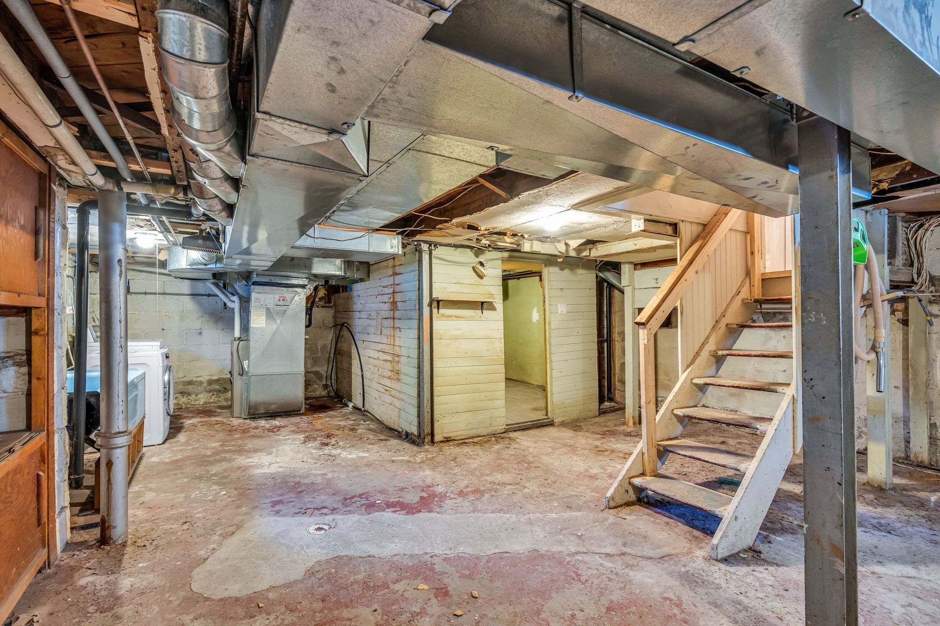 • Separate side entrance leads to spacious unfinished basement with potential.