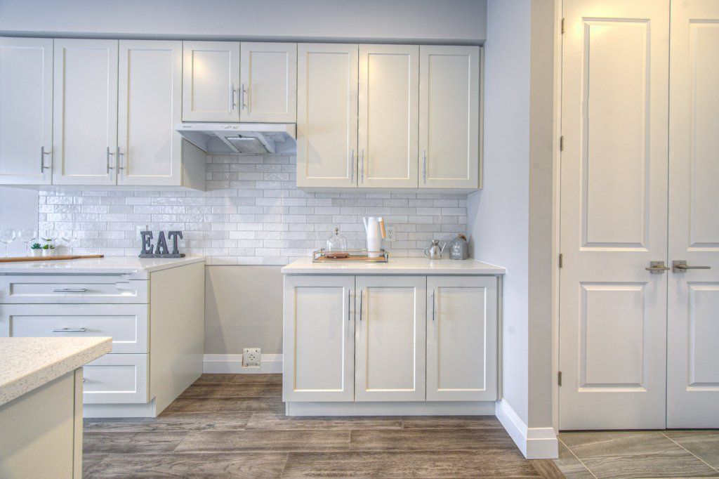 • Stylish kitchen featuring quartz countertops and a large island with breakfast bar.